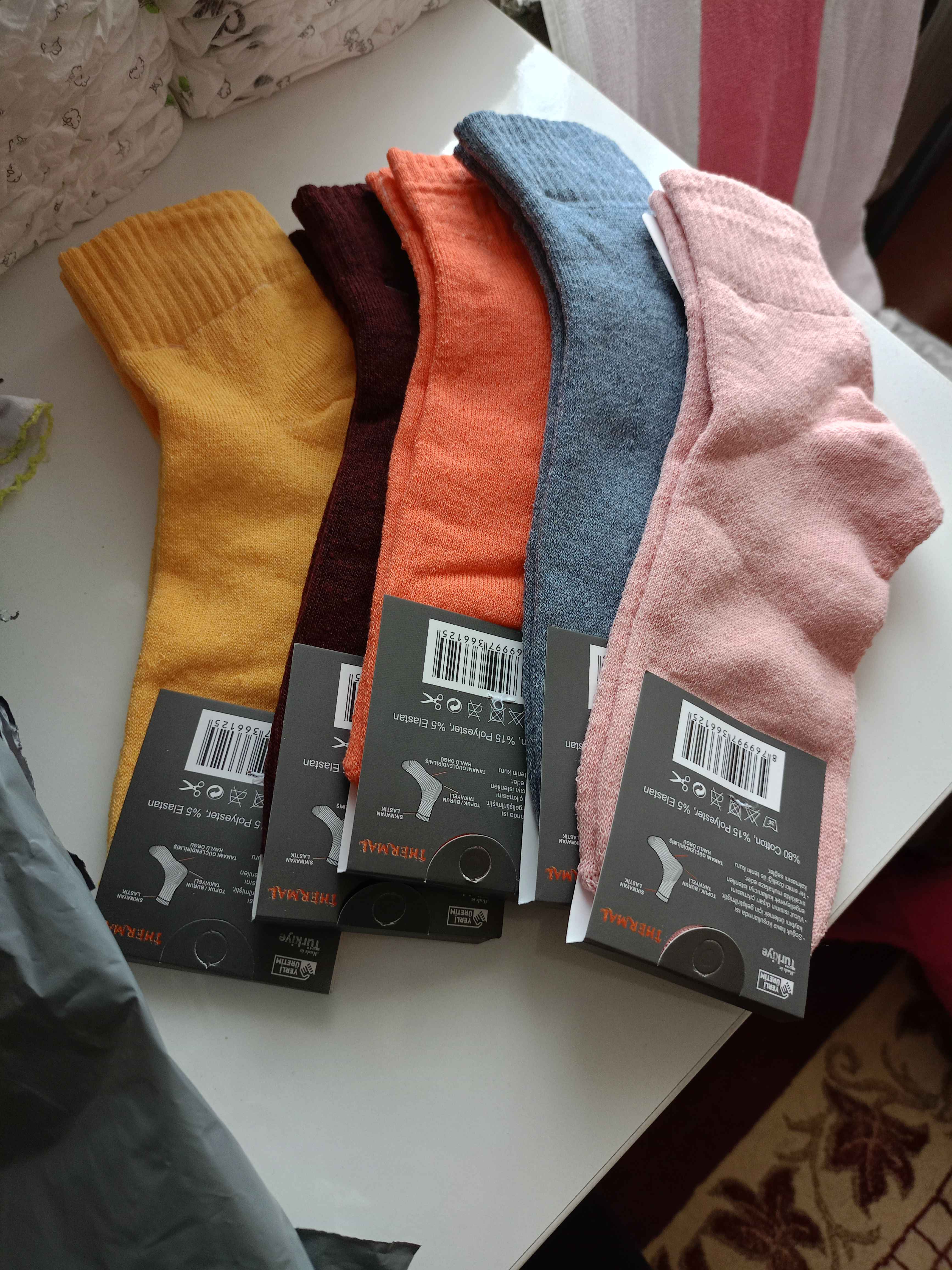 - **** ****Onaylı 😡24 Eki 2025Satıcı: Color SocksTavsiye etmiyorum.Sıcak tutmasına tutuyor ama evde giyerseniz.Kışlık ayakkabılarım 1 no.büyüktür,kalın çoraplar için.Ona rağmen çorabın 3 saatte incelmiş yerleri olmuş.Birkaç saat daha kullanılsa delinir.Topuk kısmı pamuklanmış.