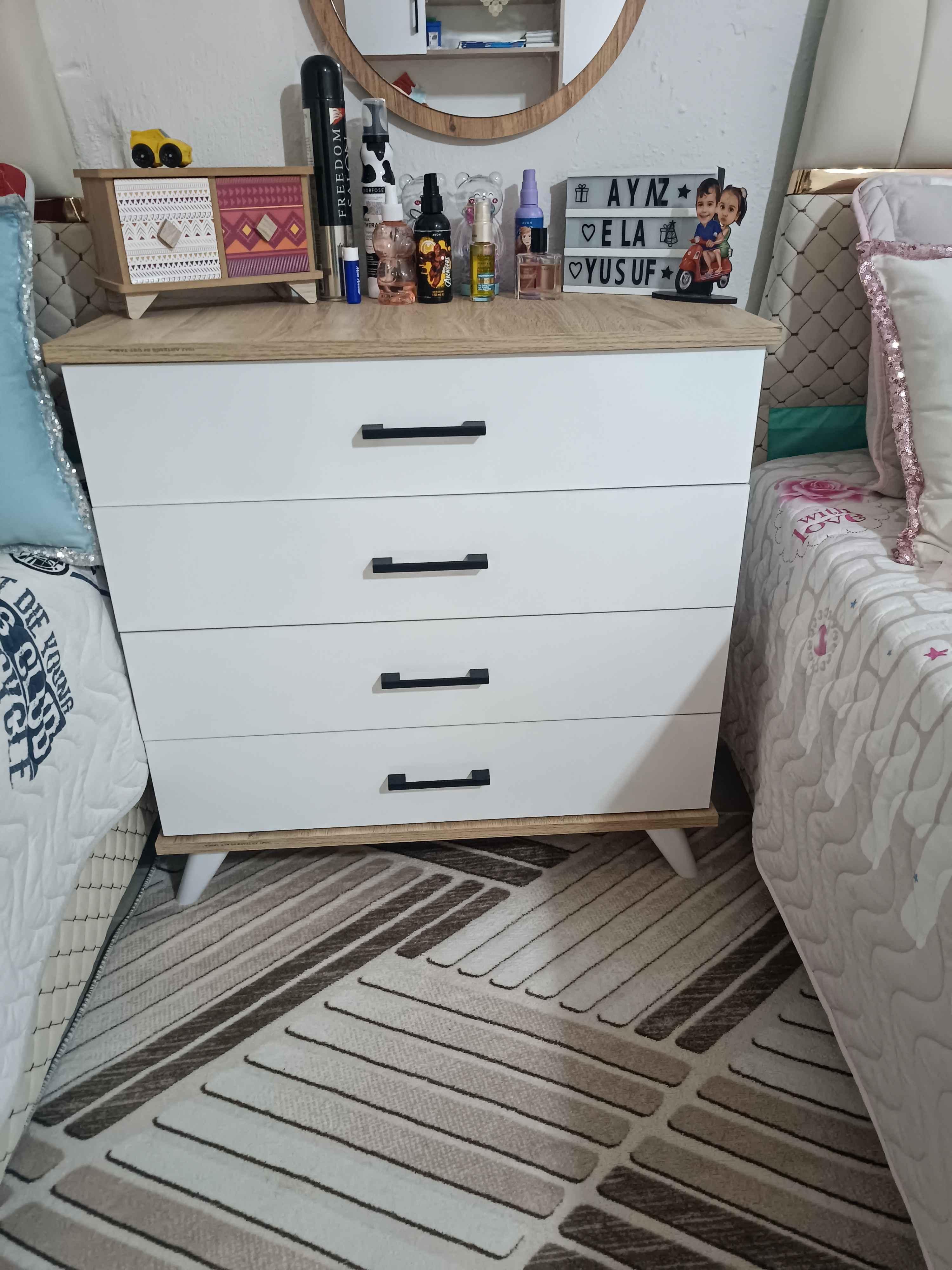 - p** t** s**Onaylı 😍11 Eki 2025Satıcı: AEKA mobilyaKargolaması çok iyiydi beklediğimden erken geldi. Montajı çok açıklayıcı tek tek yazılmış ne nereye takılacak hepsi belli.Satıcıyı çok beğendim.Bebek odam için aldım bu şifonyeri şimdi de bebek dolabını sipariş verdim.
