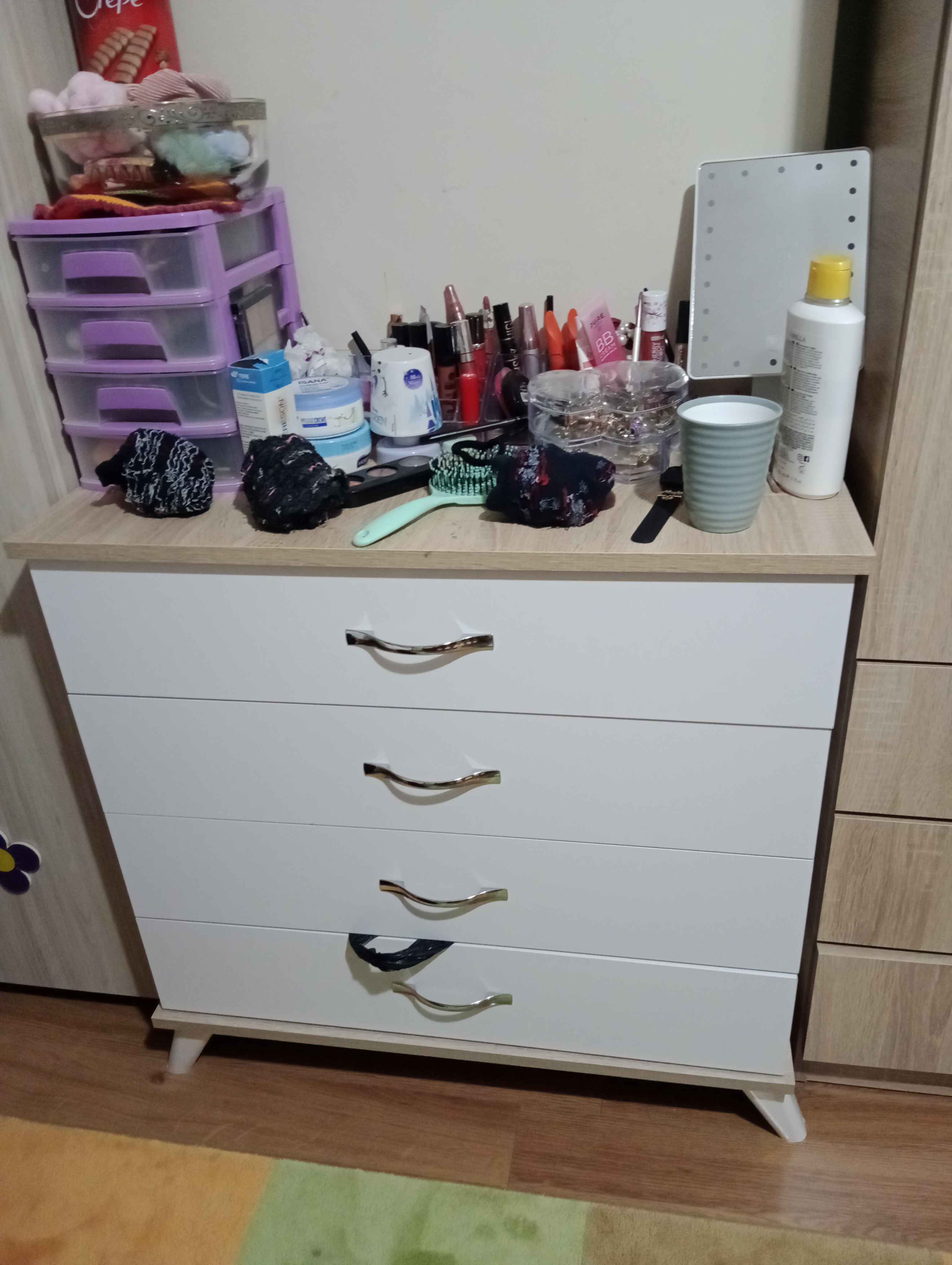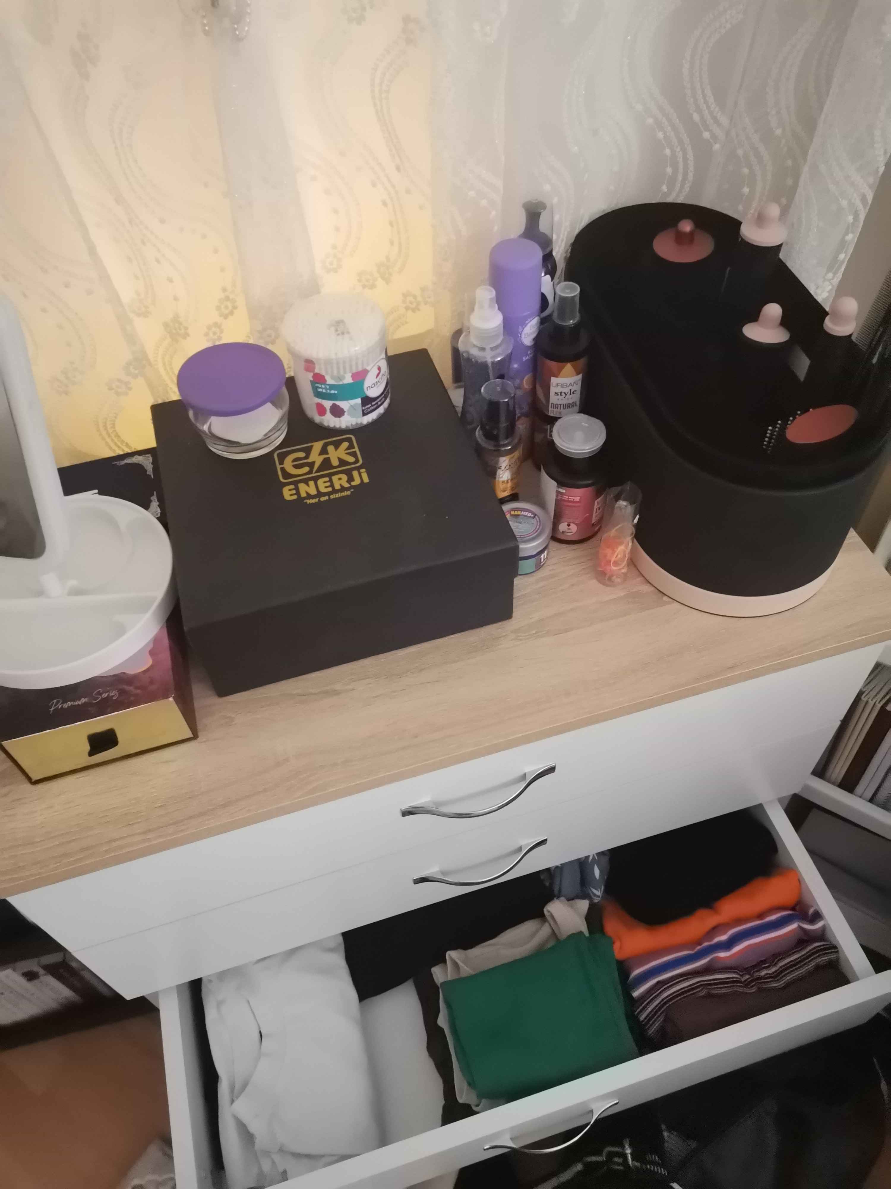 - **** ****Onaylı 😡23 Şub 2026Satıcı: AEKA mobilyaürün çok kötü kısa bir sürede çekmeceleri çekememeye başladım ve çok az açılıyor zaten sunta olduğunu biliyordum yani ondan ve üründe raflar arası çok kısa bir nemlendirici bile düz bir şekilde koyamiyorum yan yan yatırarak içine bırakıyorum kesinlikle almayın