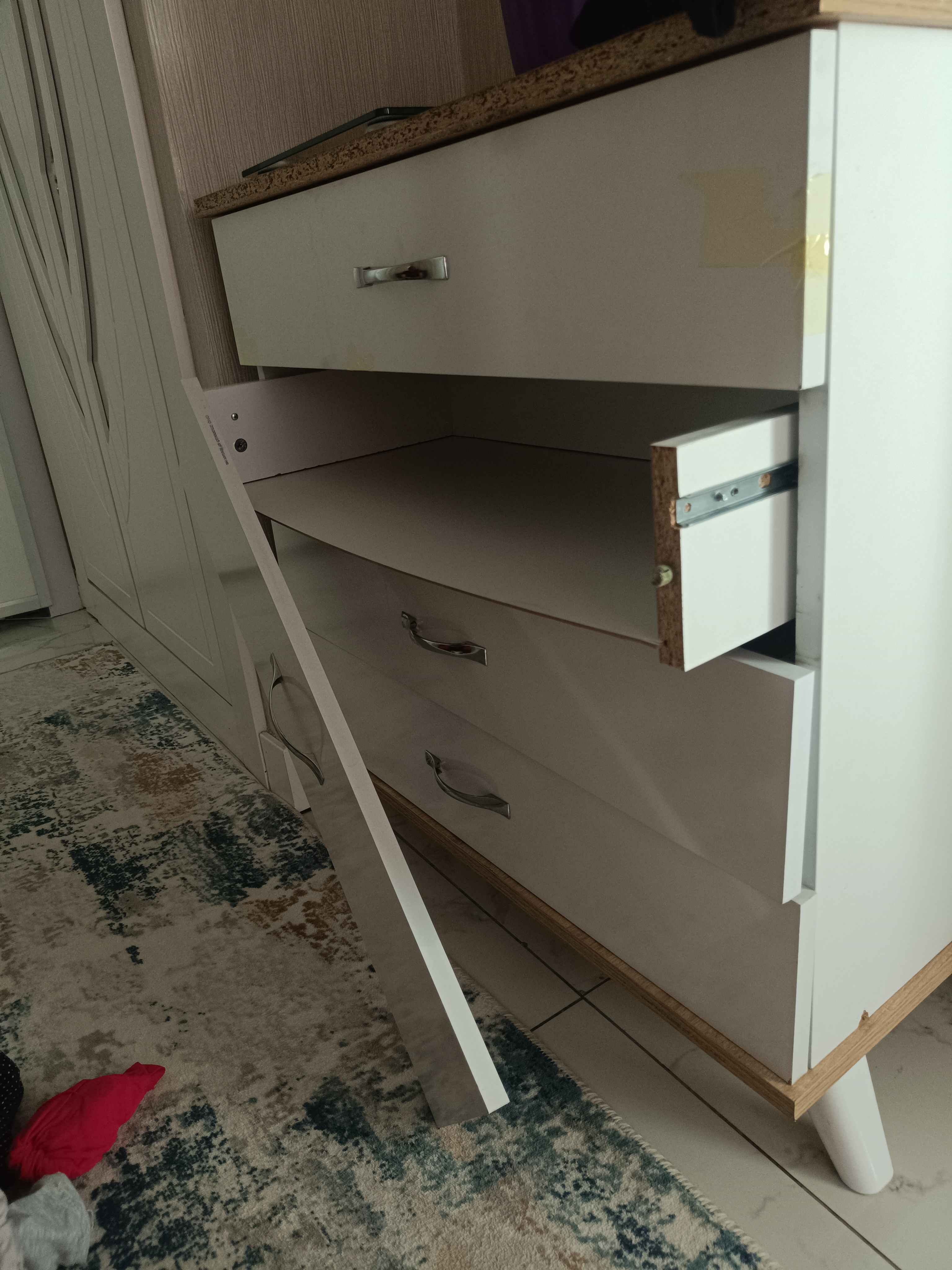 - A** K**Onaylı 😡23 Eyl 2025Satıcı: AEKA mobilyaParçaları çok kalitesiz çekmecenin taban kalınlığı 2 mm falan eşya koysanız taşıyamaz kırılır ayrıca jöle gibi sallanıyor ana gövdesi sabitlemek için her yerine ağaç vidası attım çok kalitesiz kesinlikle önermiyorum 👎🏻👎🏻