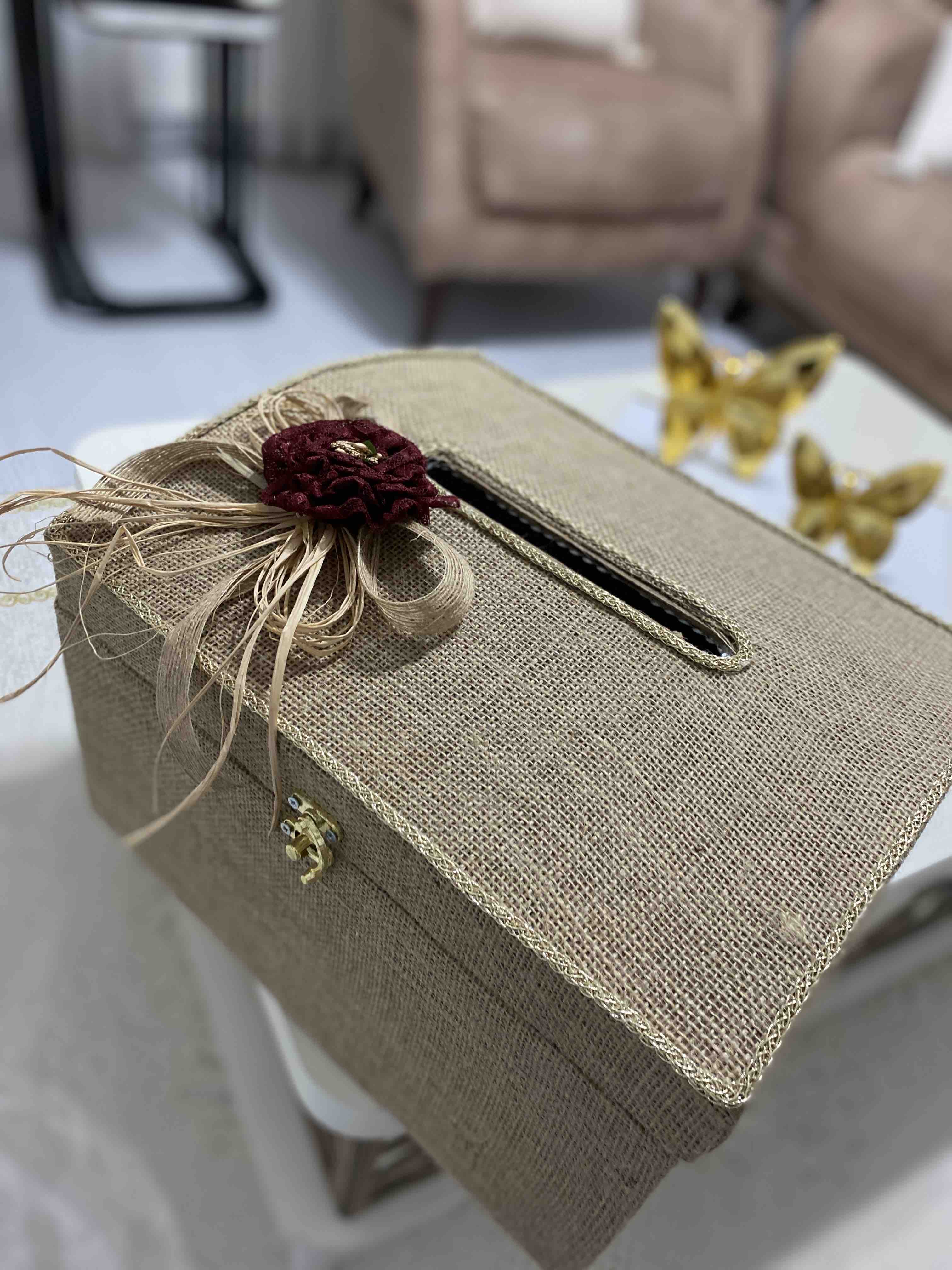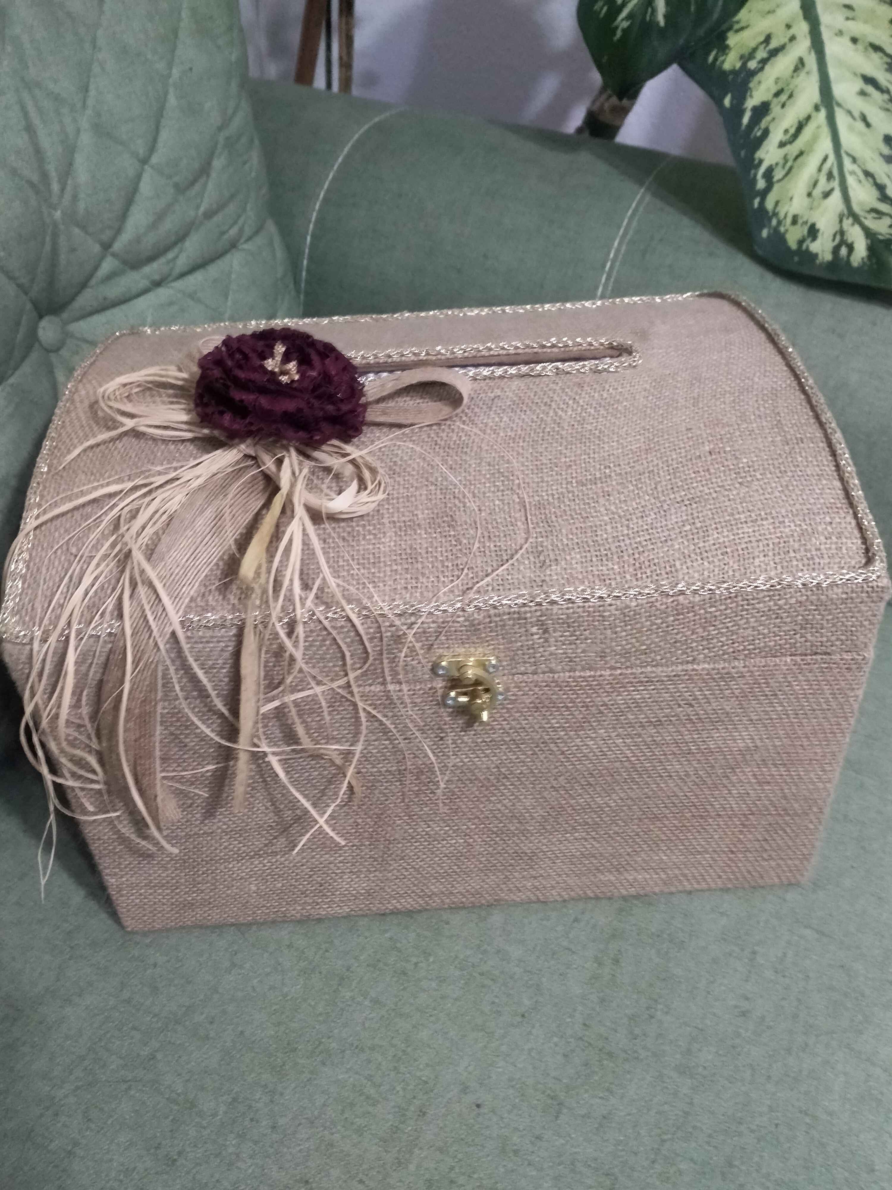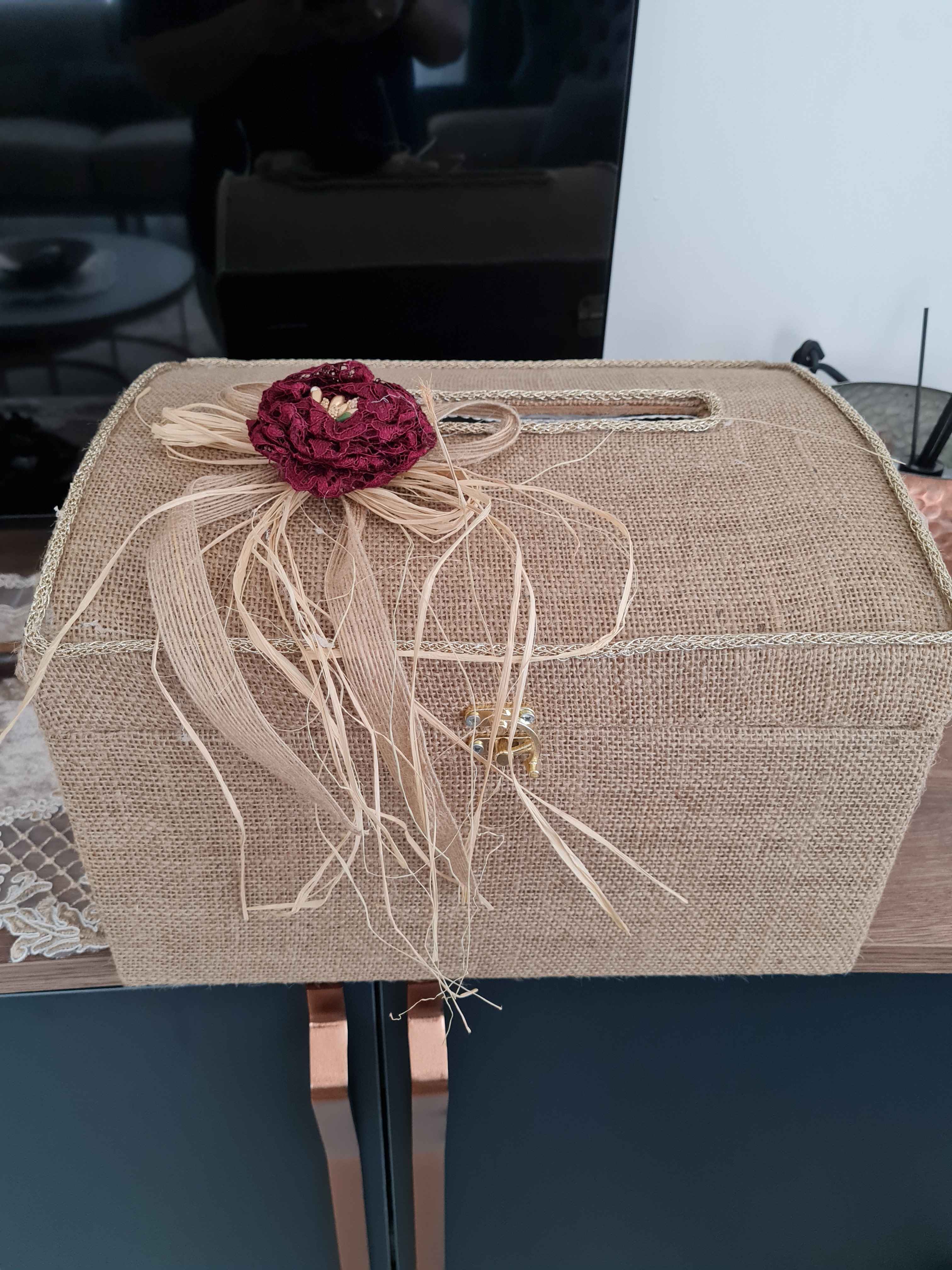 Süslemede soft görünümlü çiçek kullanılmıştır,Ayrıca kancalı kilit ile sandık kapanmaktadır.