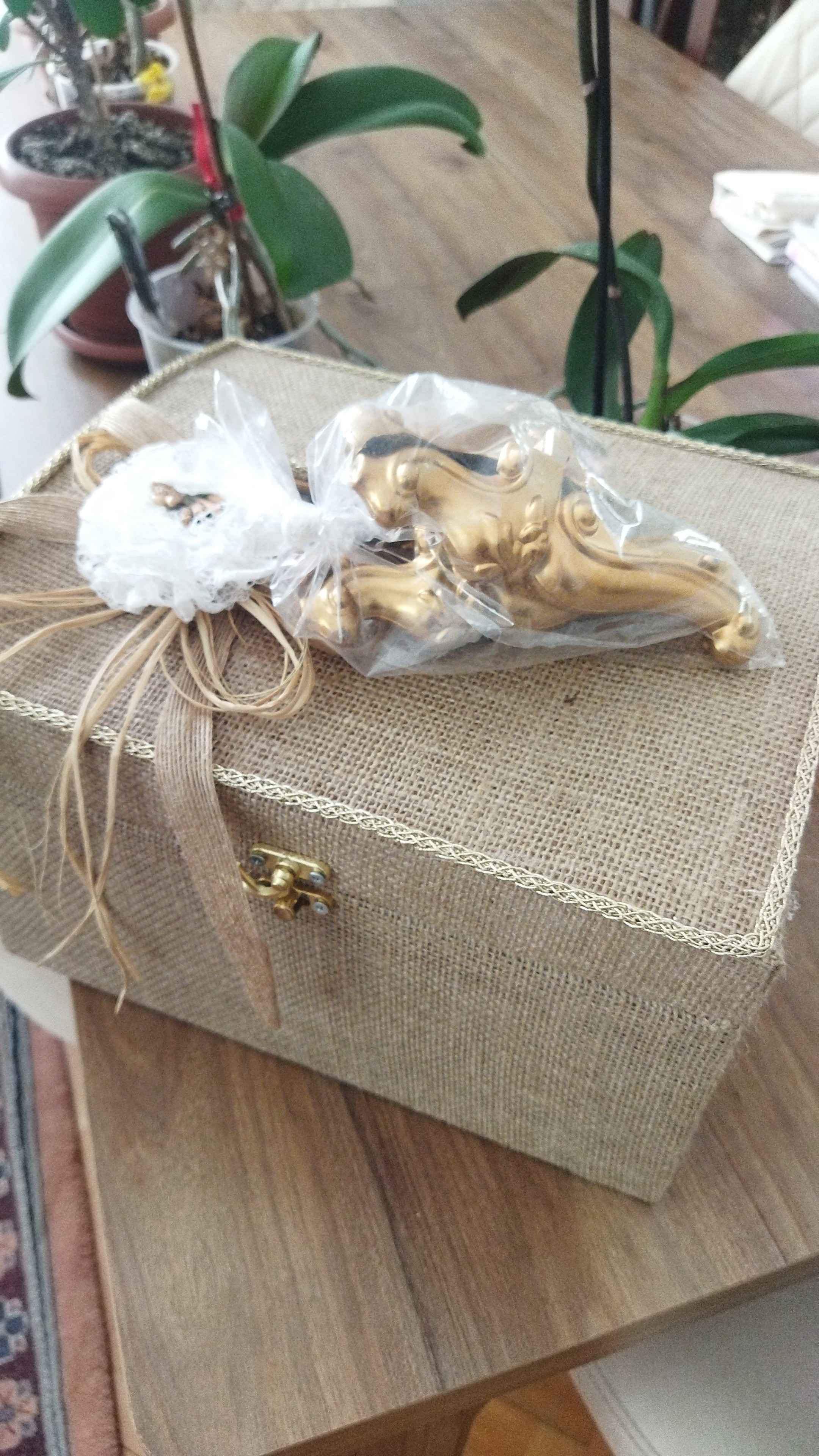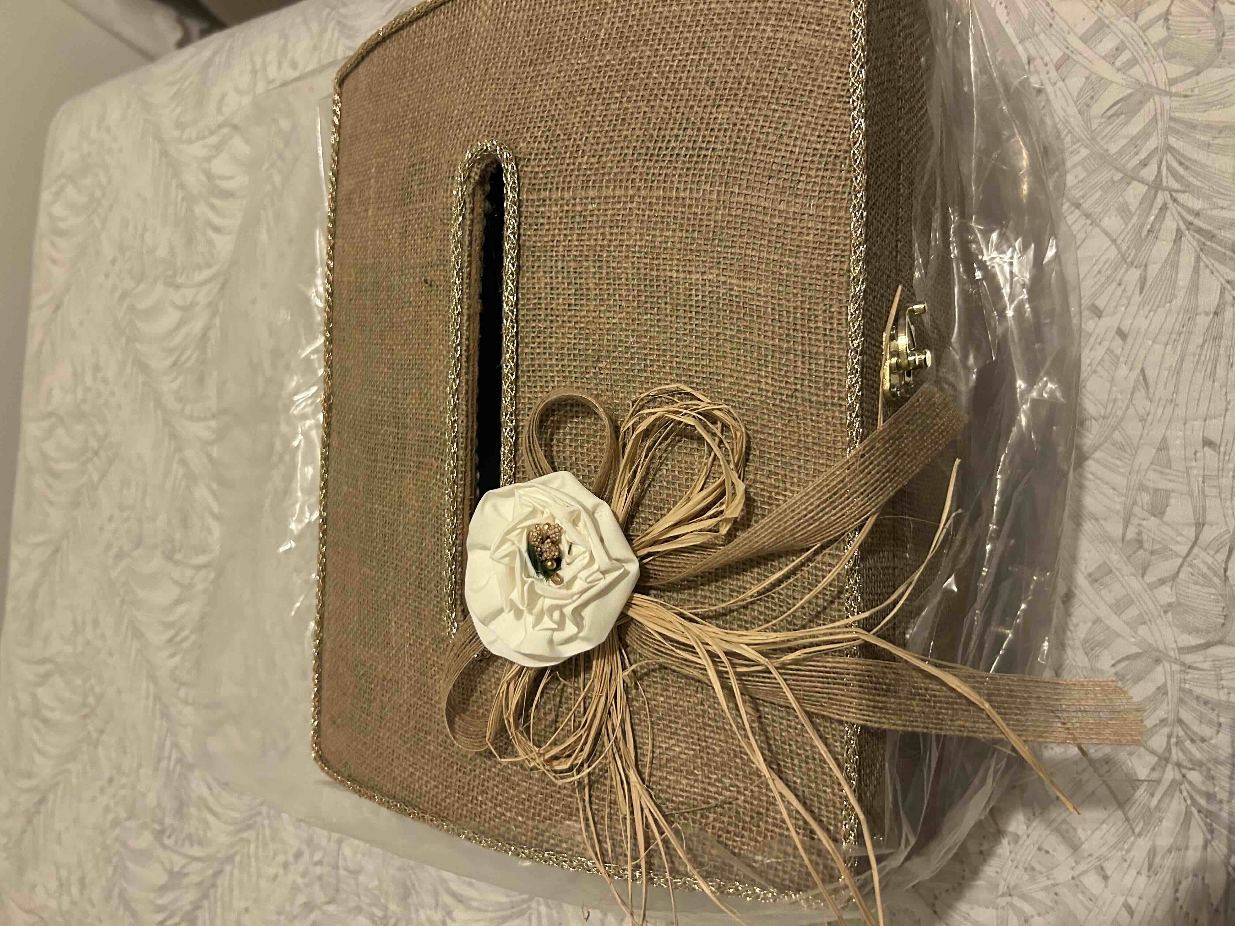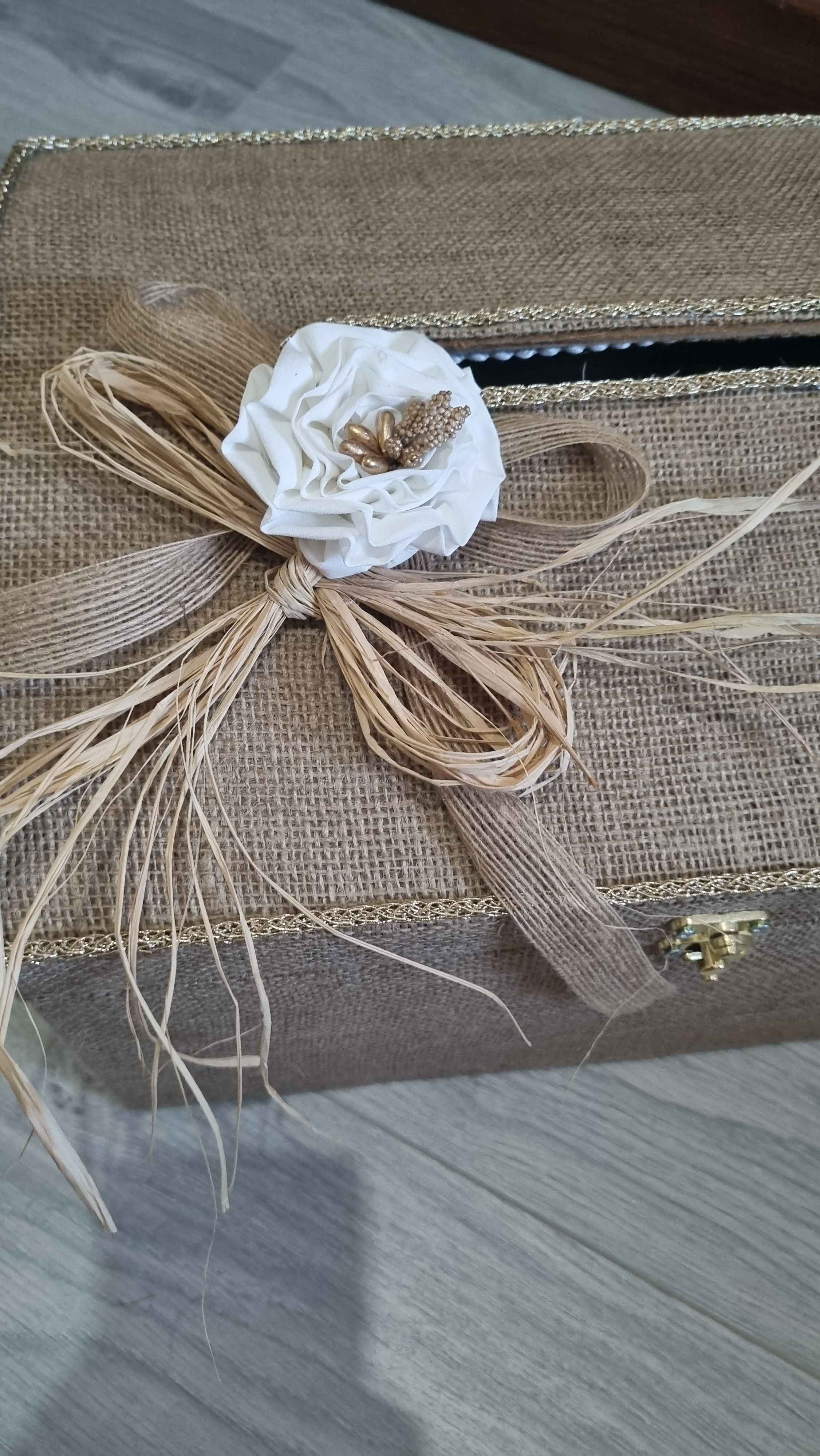 Süslemede soft görünümlü çiçek kullanılmıştır,Ayrıca kancalı kilit ile sandık kapanmaktadır.