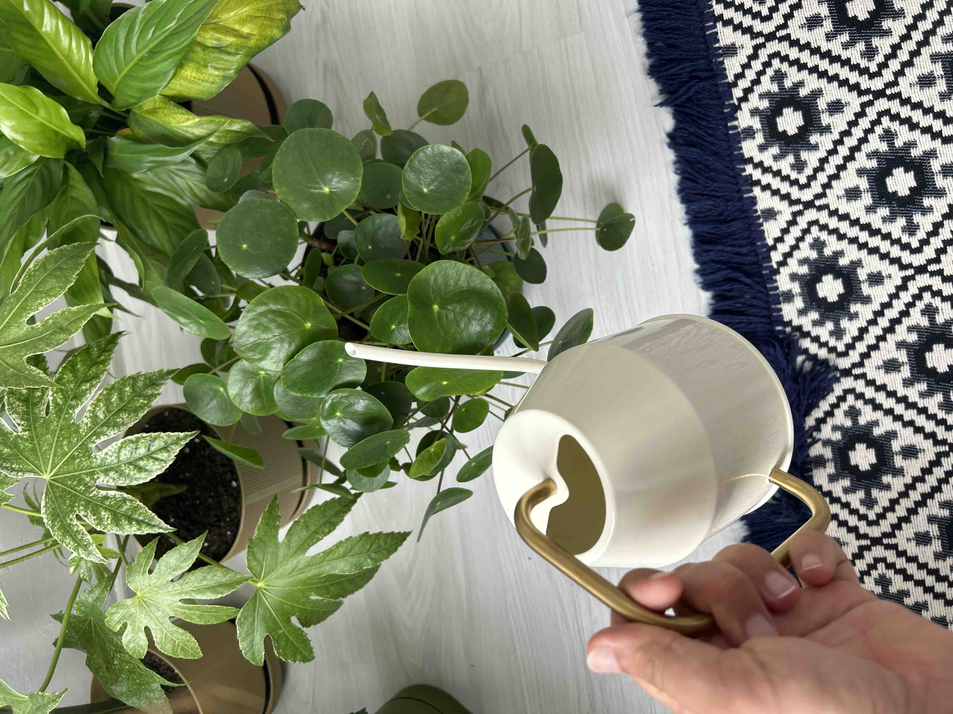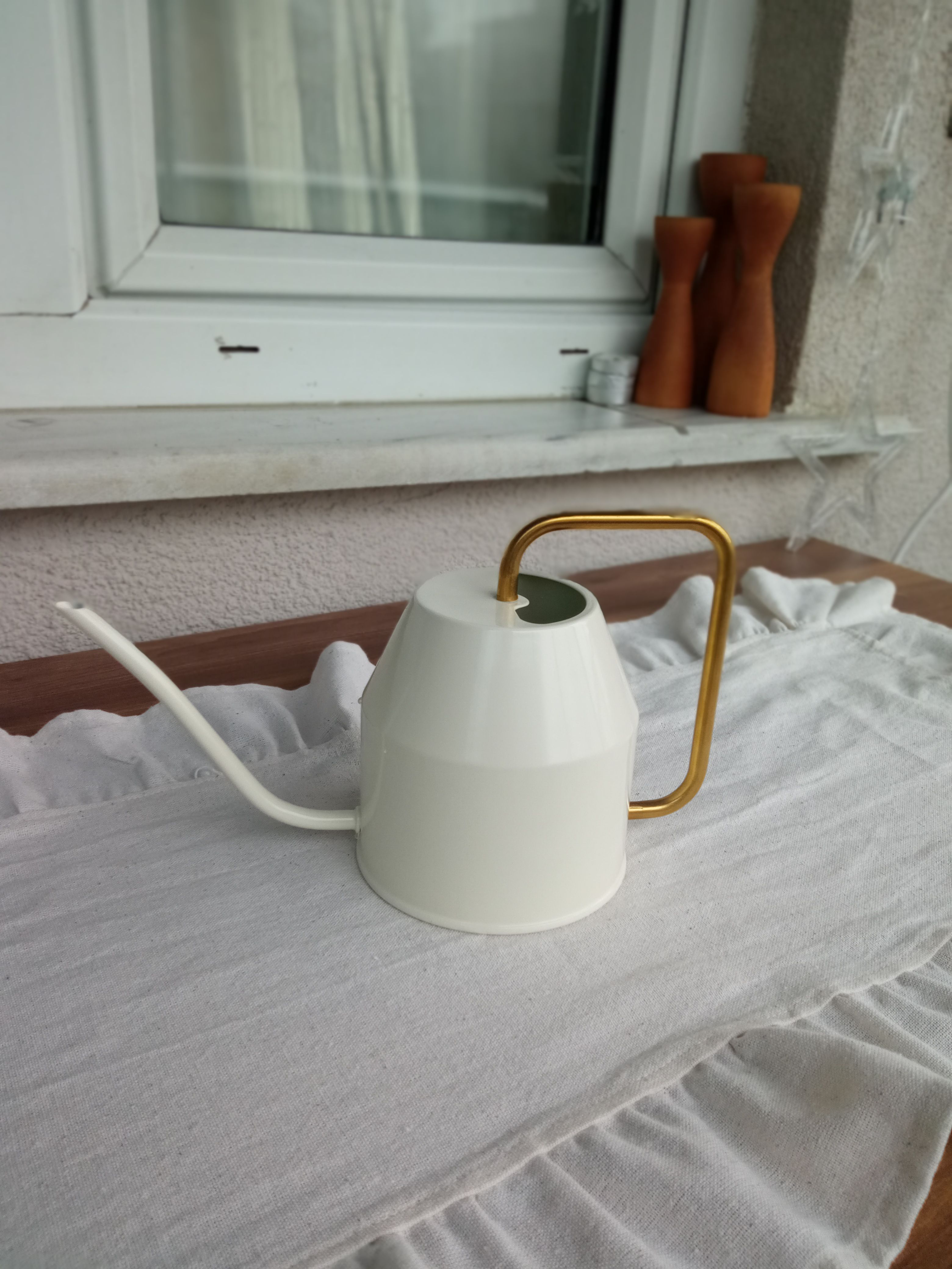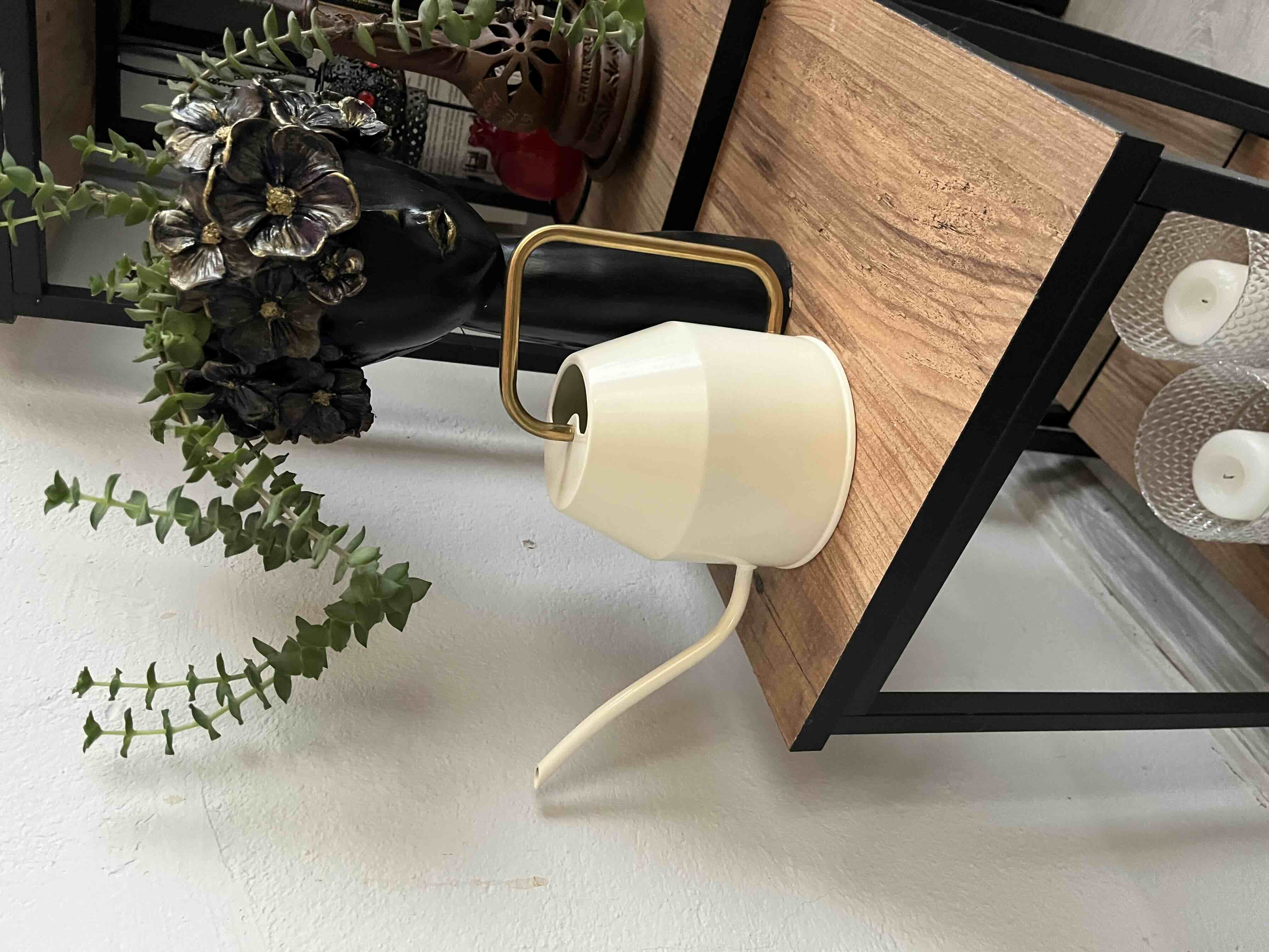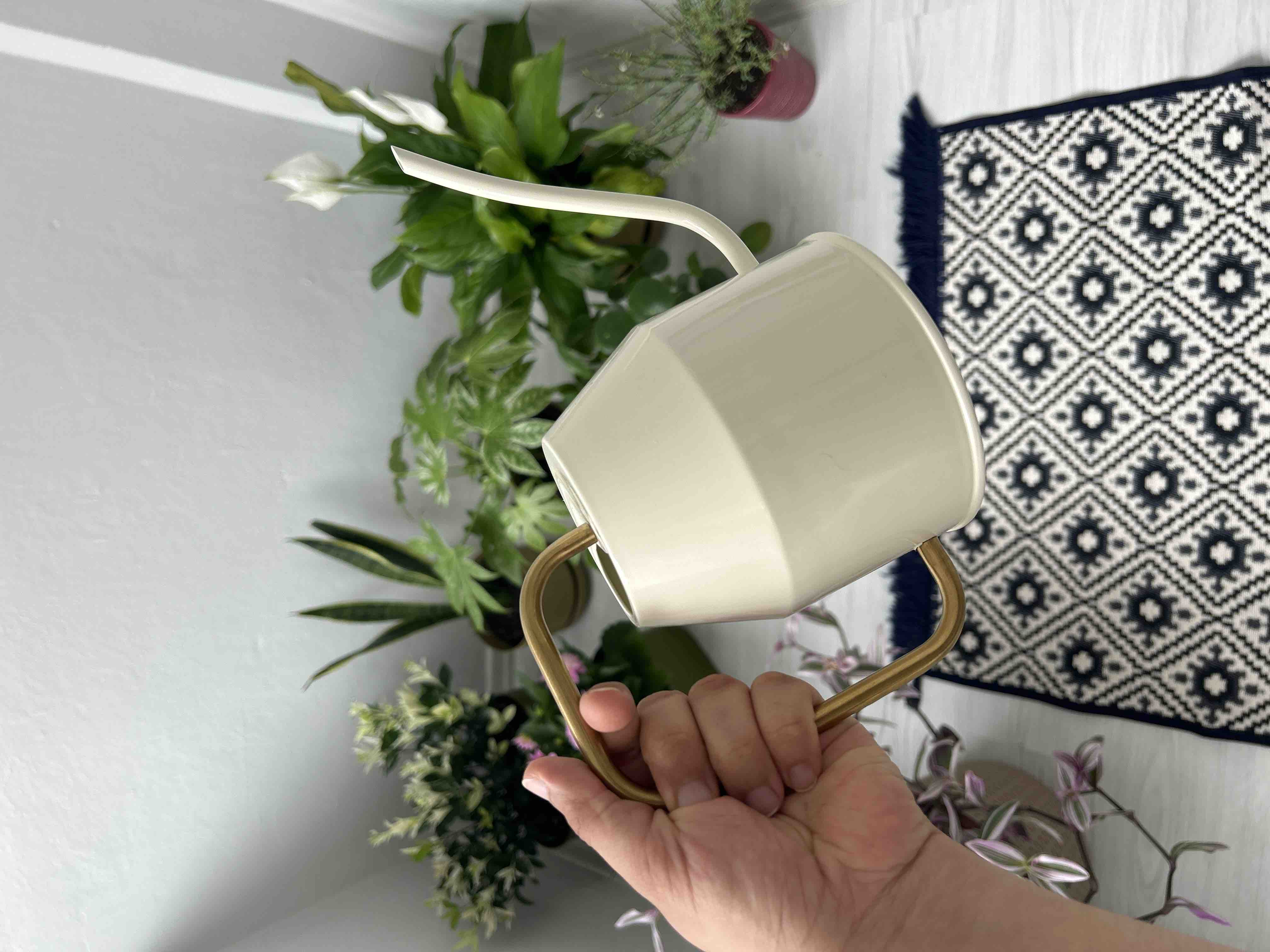 Çiçek Bitki Sulama Kabı, Krem - Altın Rengi, 0,9 Lt