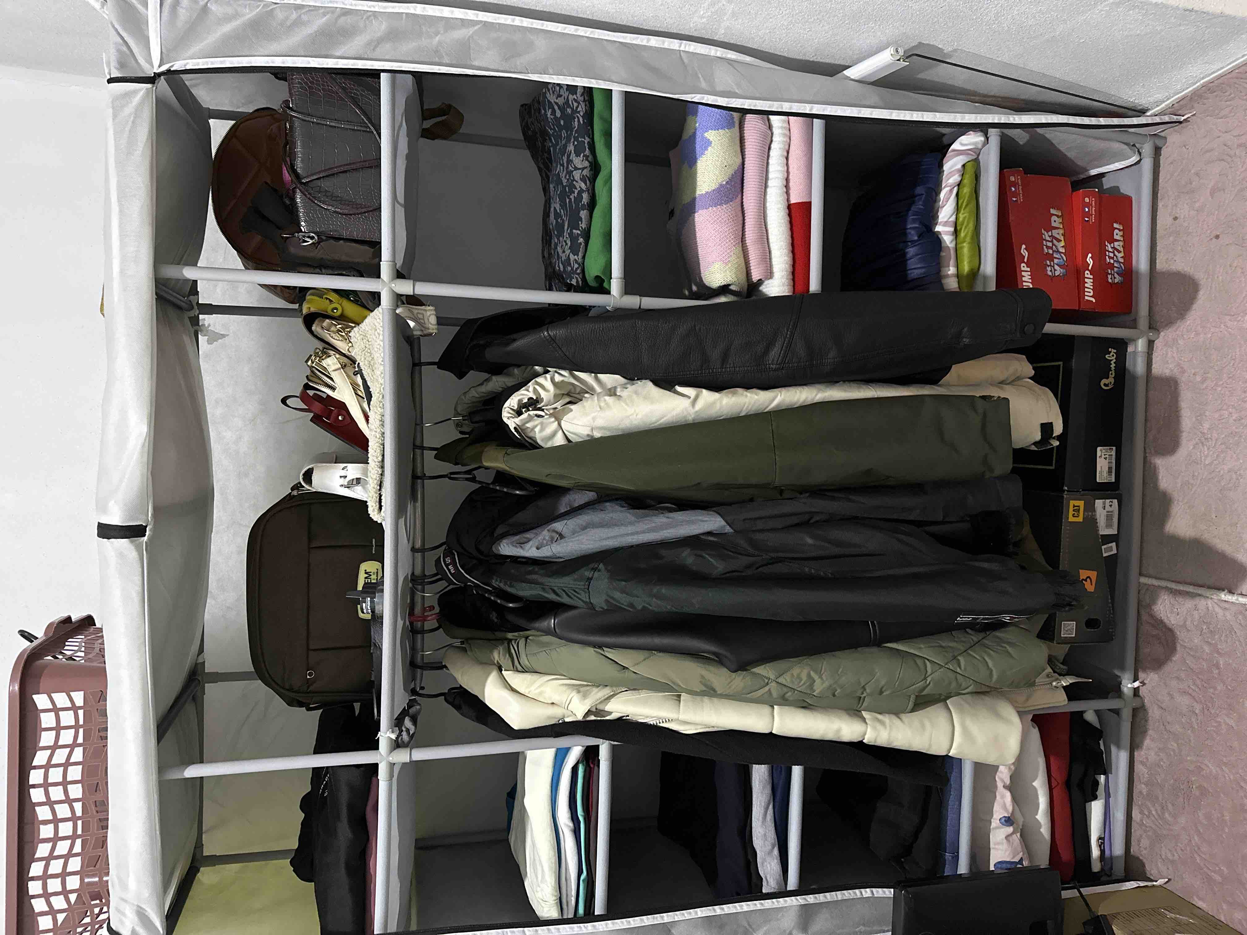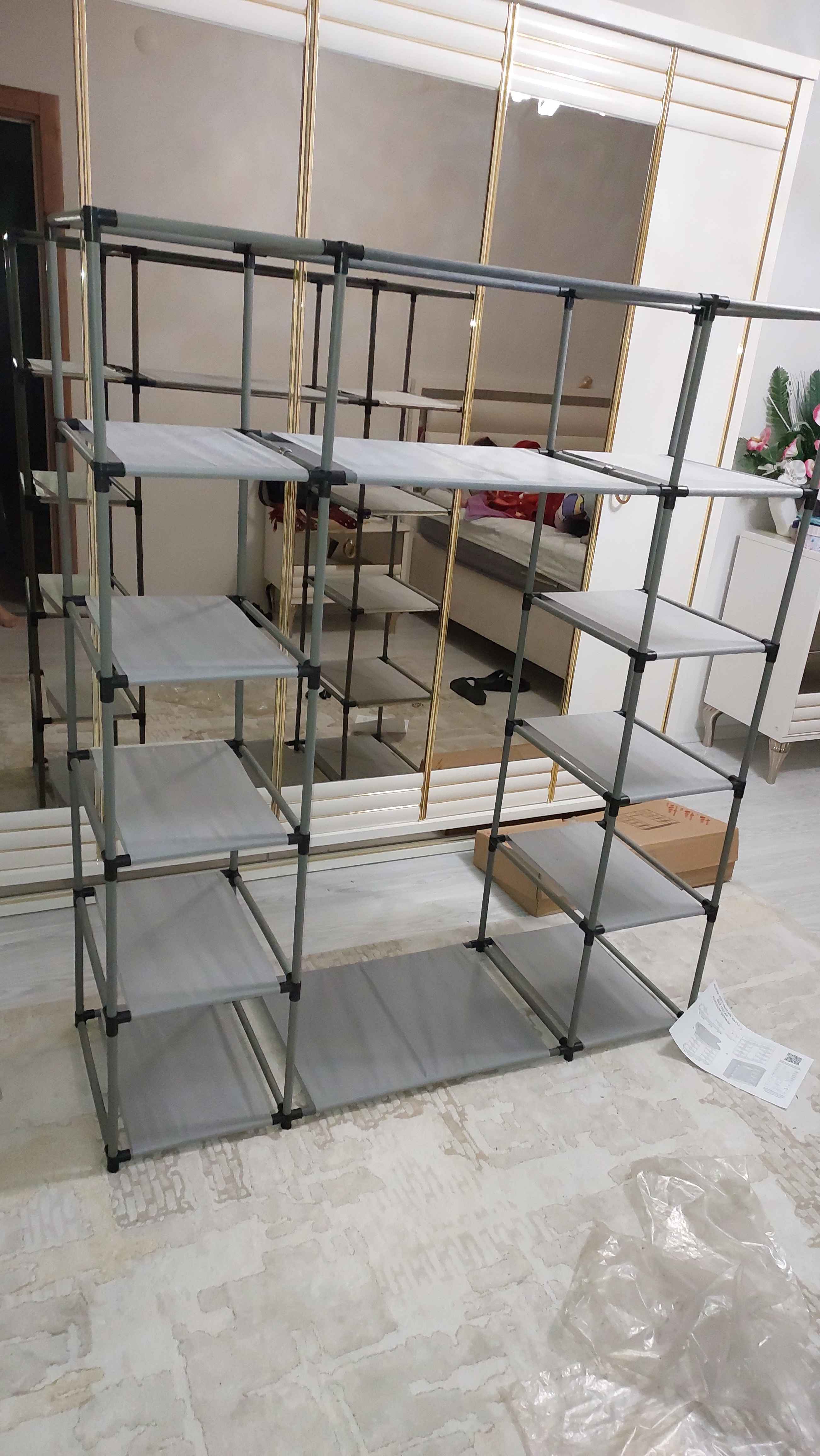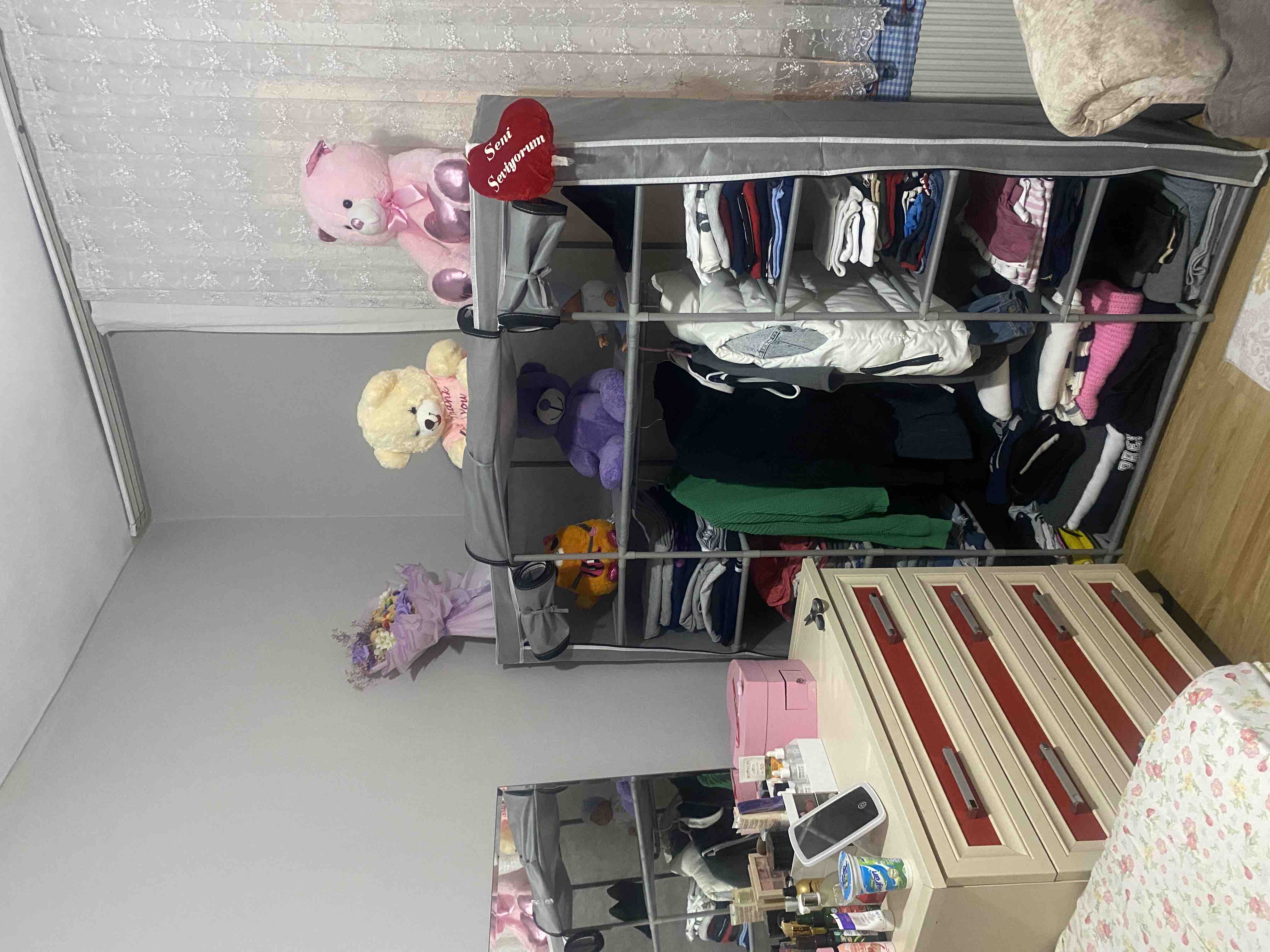 - N** T**Onaylı 😍19 Mar 2023Satıcı: WINGSÜrünün kurulumu gayet kolay, bezinin pot durması oturmamasından endişeleniyordum ama gayet düzgün bir şekilde oturdu, çok fazla yük taşır mı hayır, ama baya eşya topluyor, şimdilik kıyafet için kullanıyorum, sonrasında ayakkabı depolama alanı gibi kullanıcam, teşekkürler trendyol
