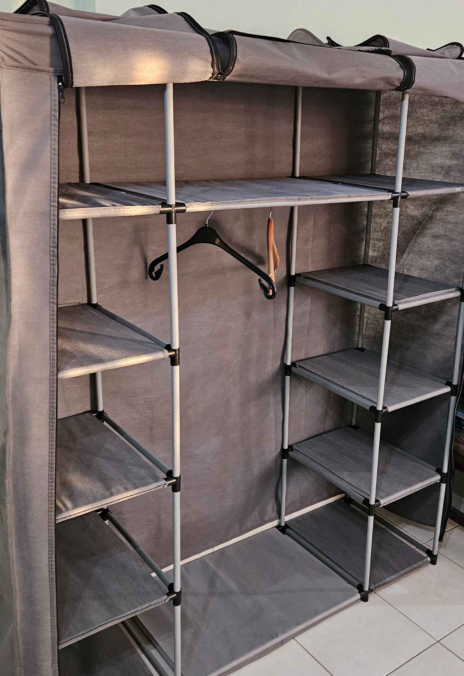 Çift Yandan Raflı Bez Dolap Gri Ürün Detayı
