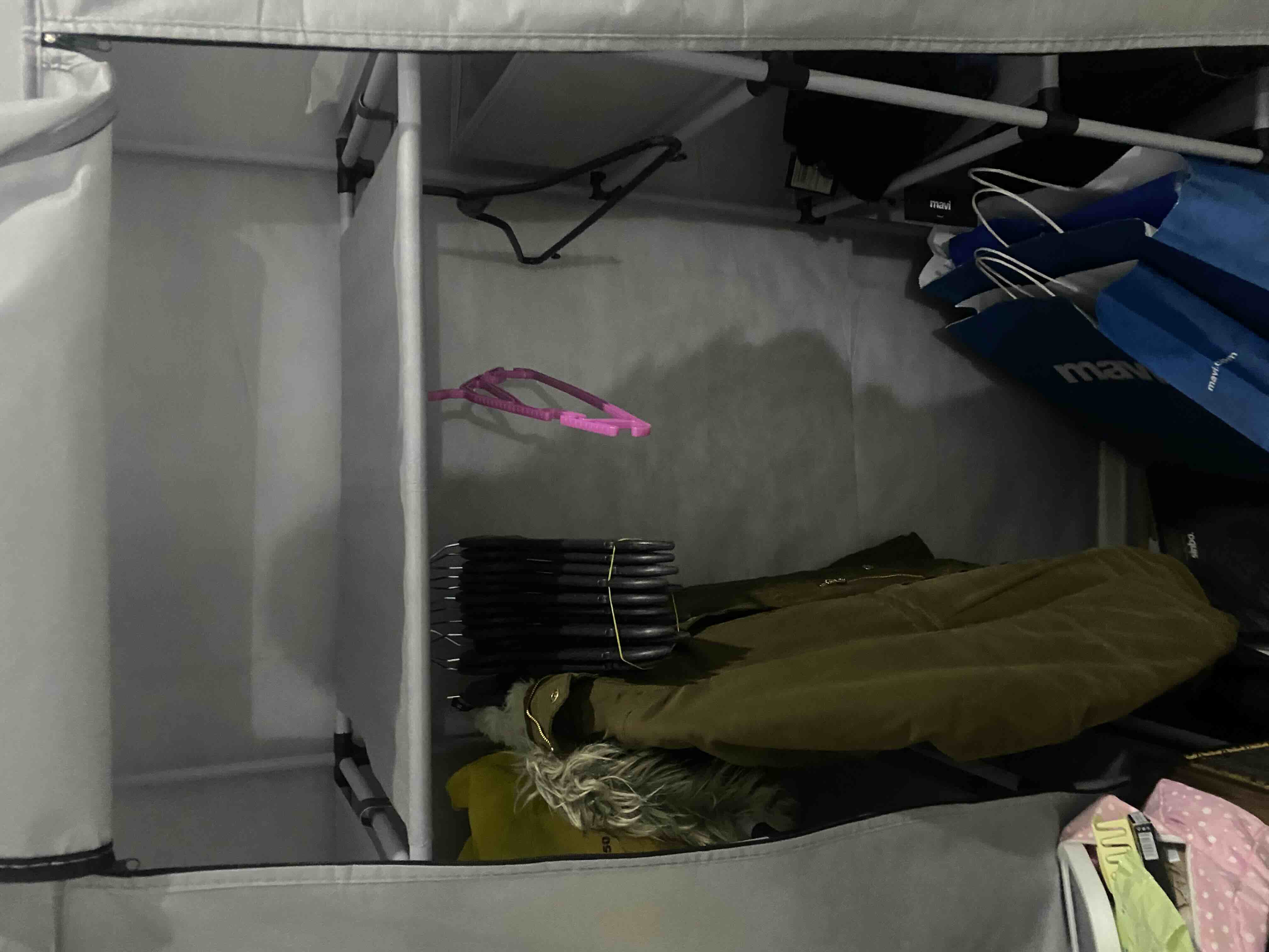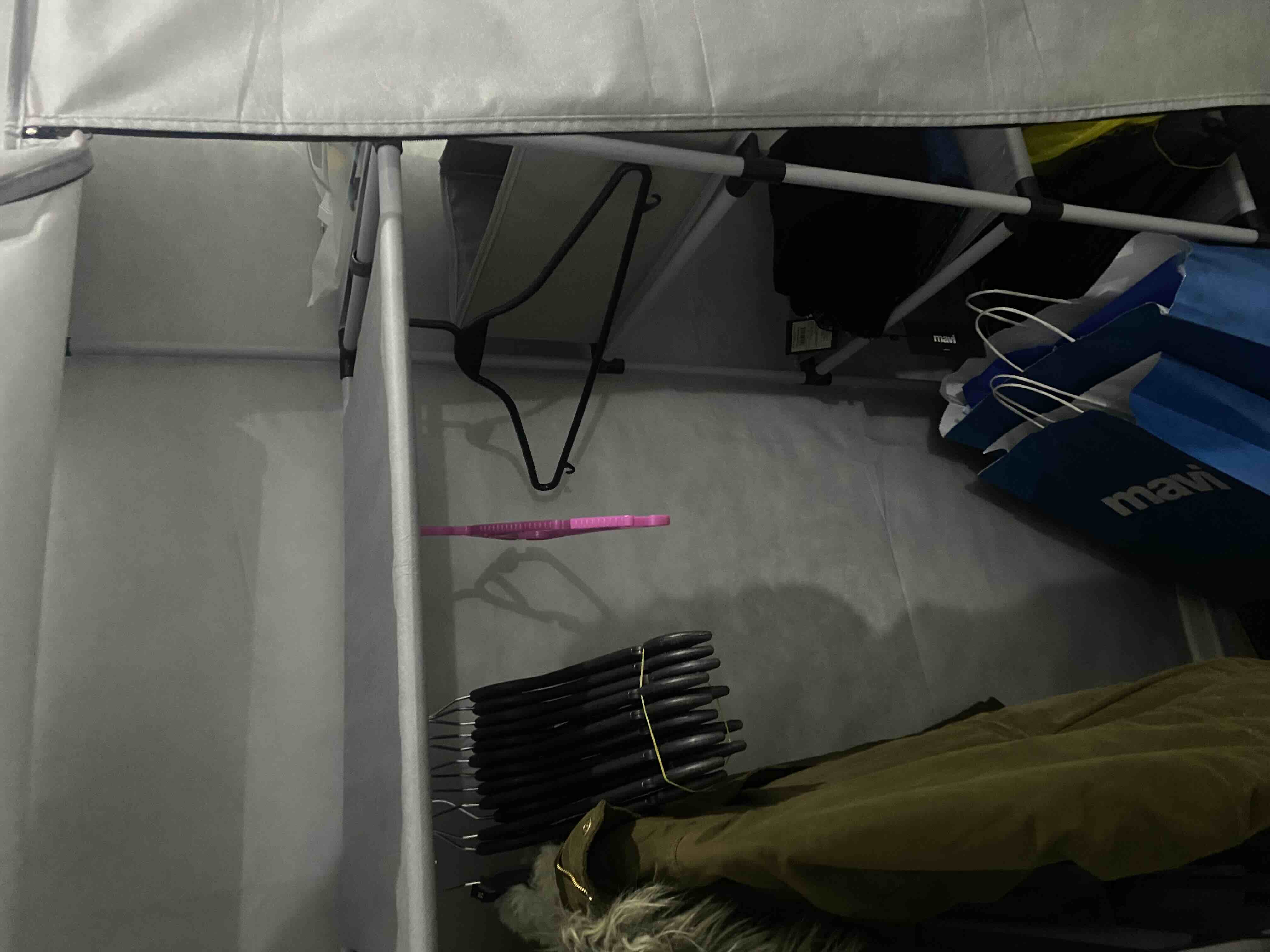 - **** ****Onaylı 😡12 Haz 2025Satıcı: SEPETTENEVARKışlıkları koymak için almıştım, 6-7 tane mont astım sabah baktım askılık kırılmıştı. Kalitesiz plastik. Dış kumaşı çok ince çok kalitesiz bikaç yerinden patladı. Ayrıca örtü tamamen kapalı değil. Yere kadar. Uzun sürede alttan toz alır kıyafetler yine tozlanır. Öğrenciyken de bez dolap kullanırdık böyle kalitesiz bir ürün görmedim. Fiyat performans ürünü bile değil. Çöp yığını...