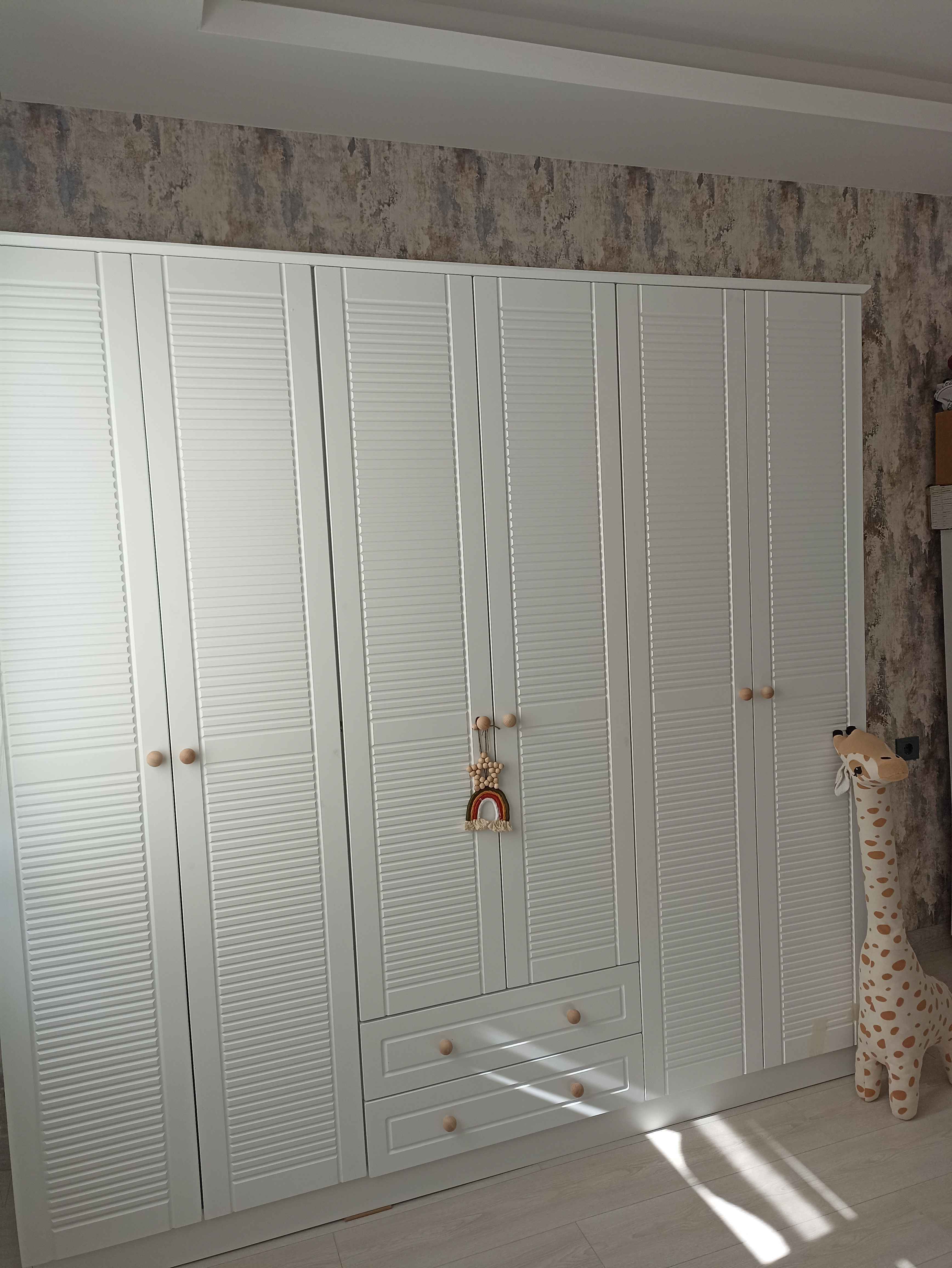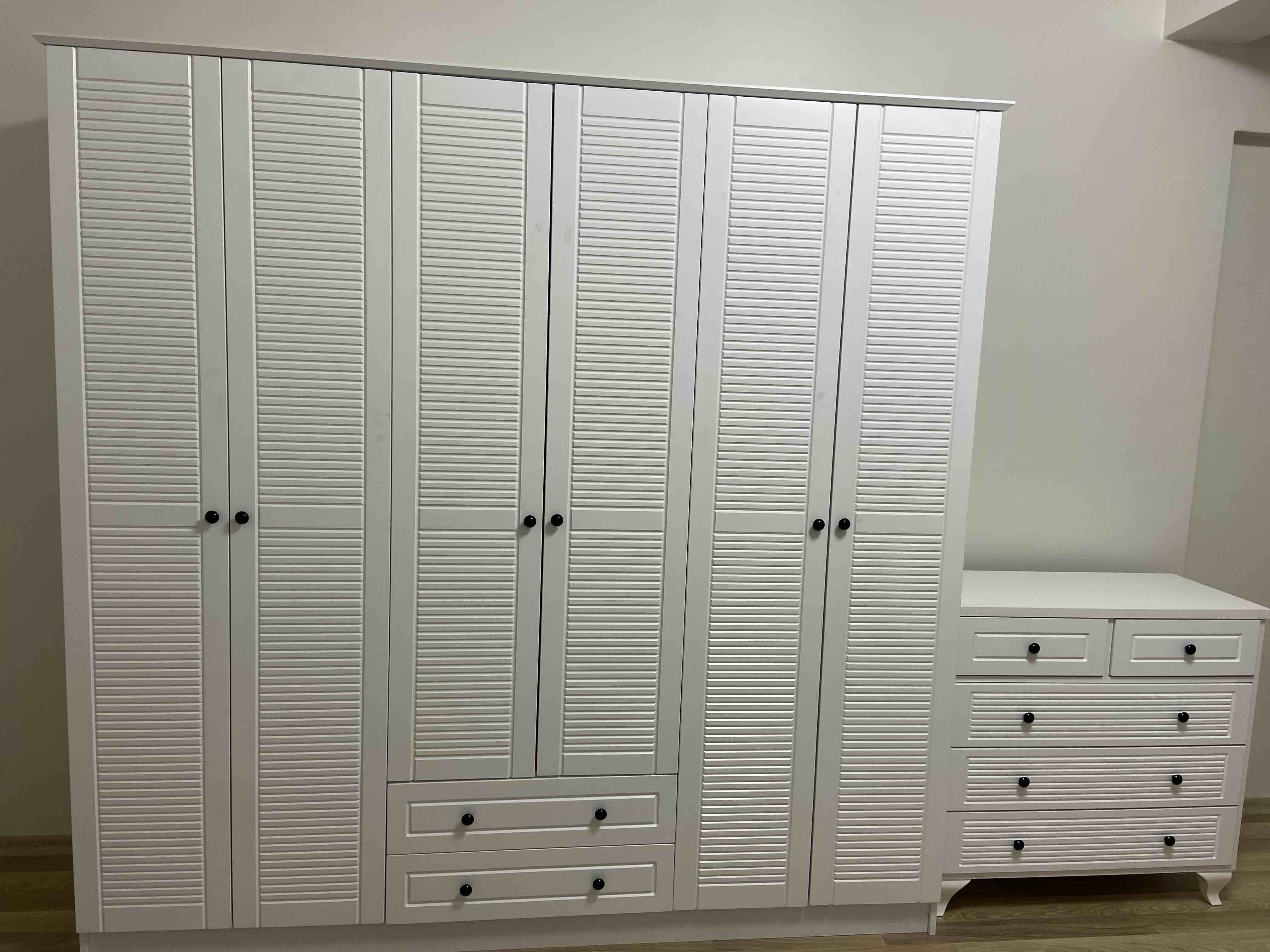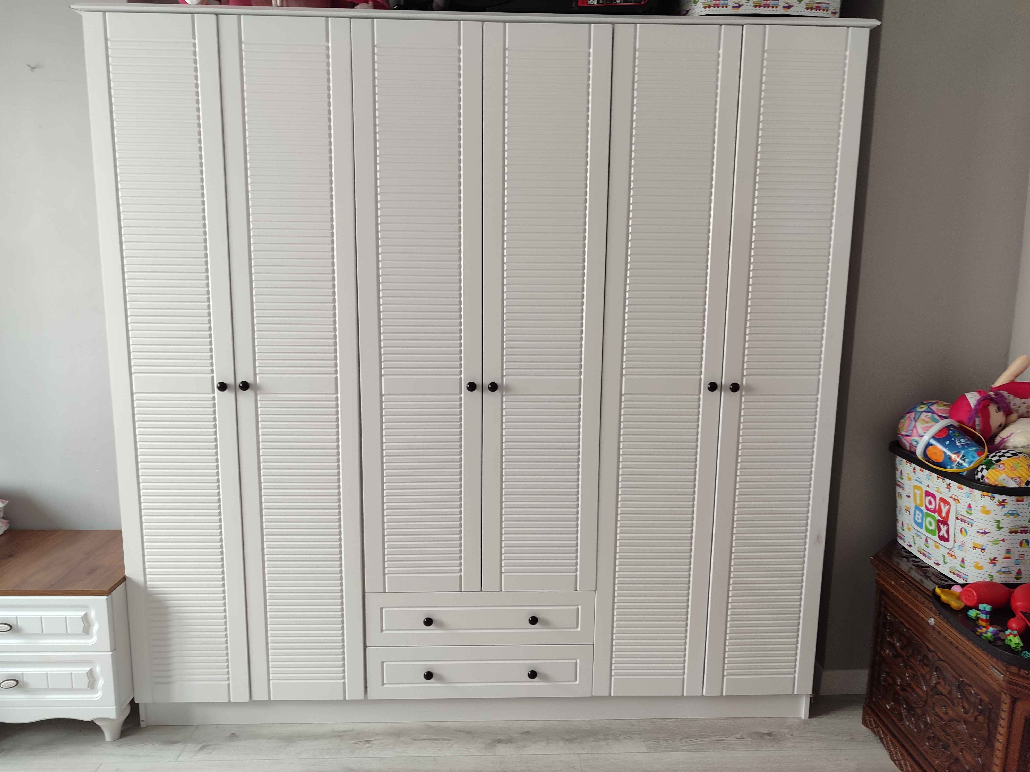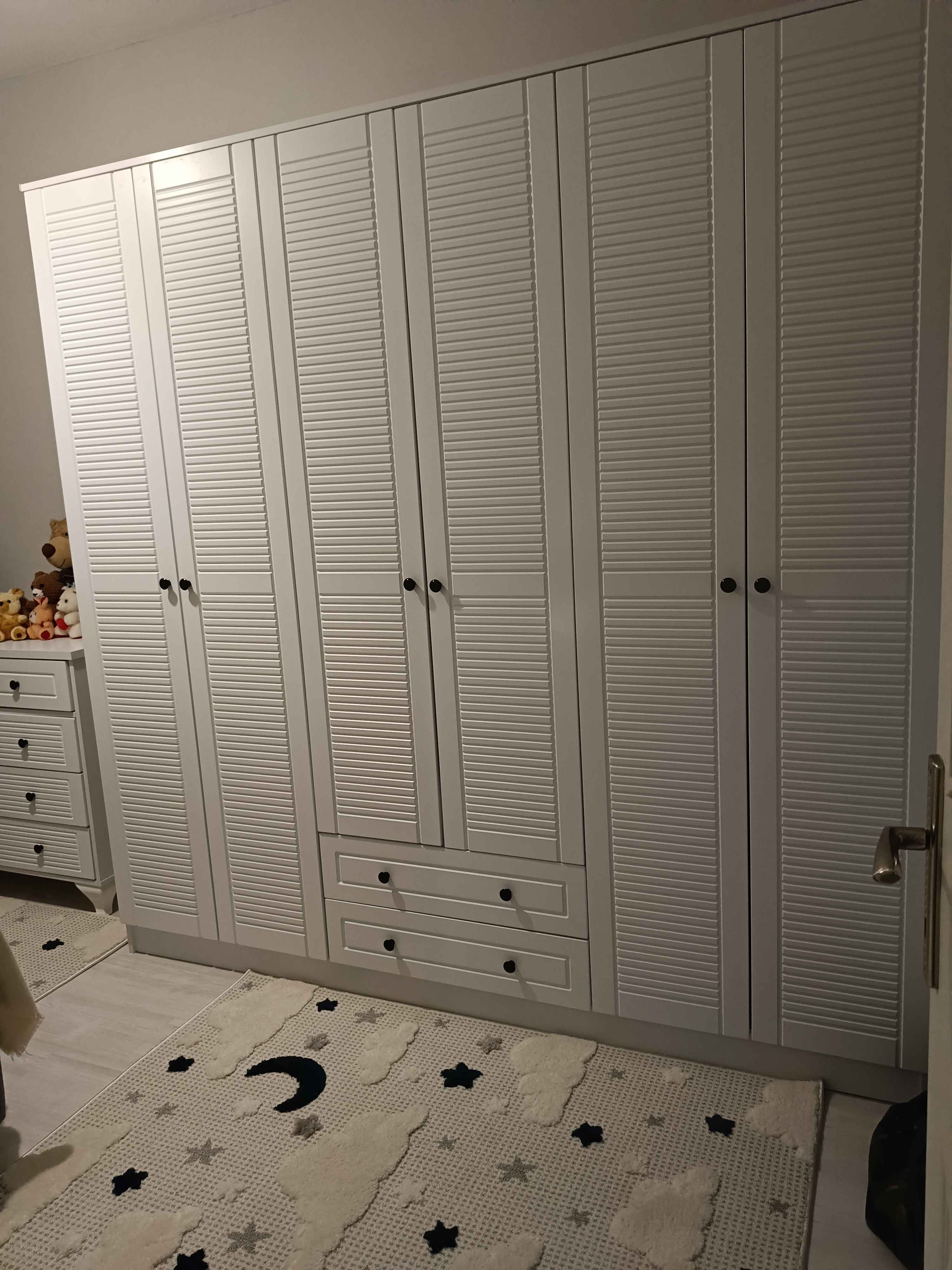 - **** ****Onaylı 😍8 Ağu 2024Satıcı: Rabi Mobilyao kadar beğendik ki anlatamam. montaj için gelen usta abla çok iyi ürün seçmişsin dedi ayrı bir mutlu olduk. kapılar MDF. tüm yapı elemanları güvenlik gözetilerek eklenmiş. dolap kurulunca vav oluyorsun fiyat performans ürünü. imalatçılar teşekkür ediyoruz👌🌸💯