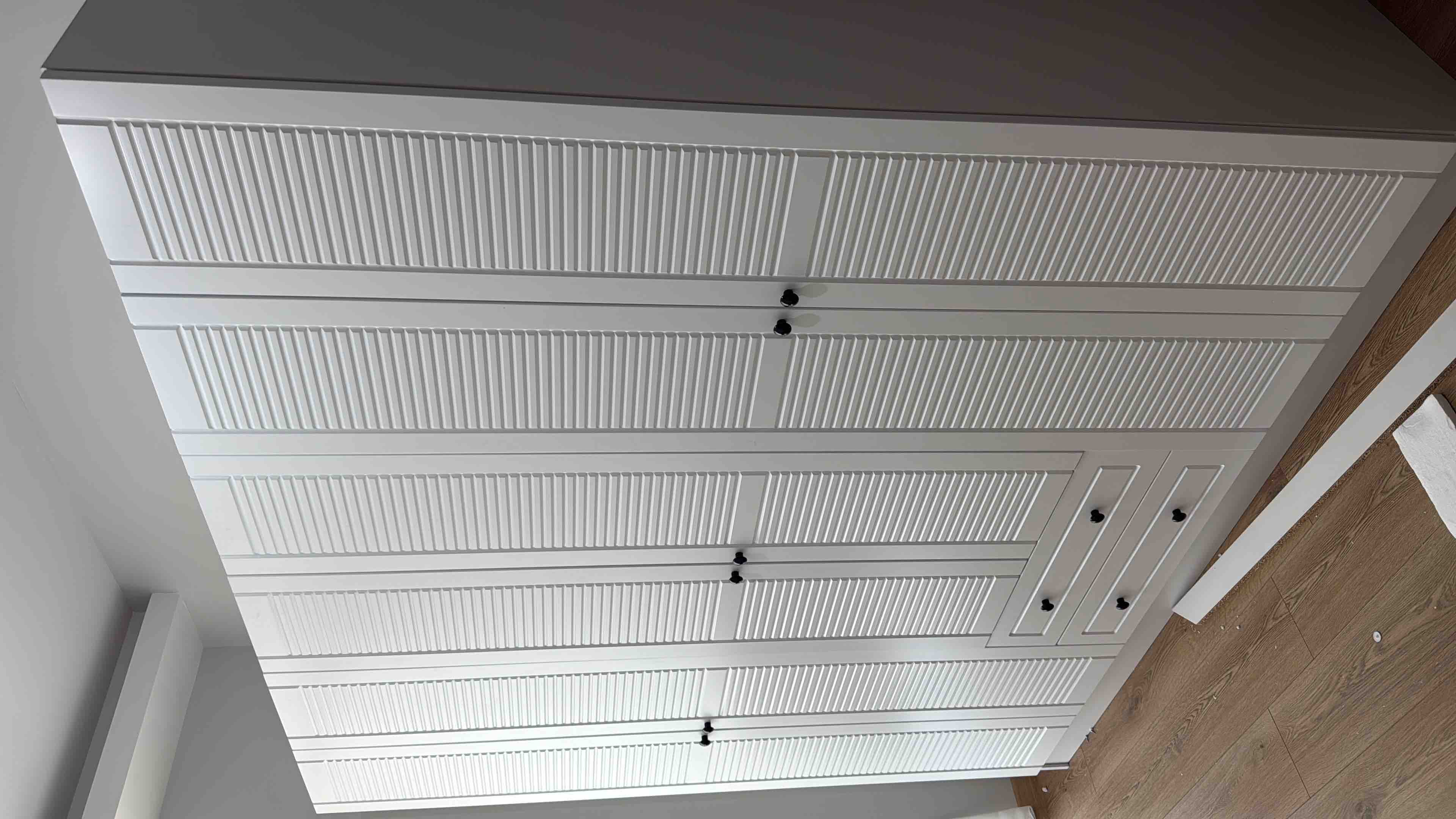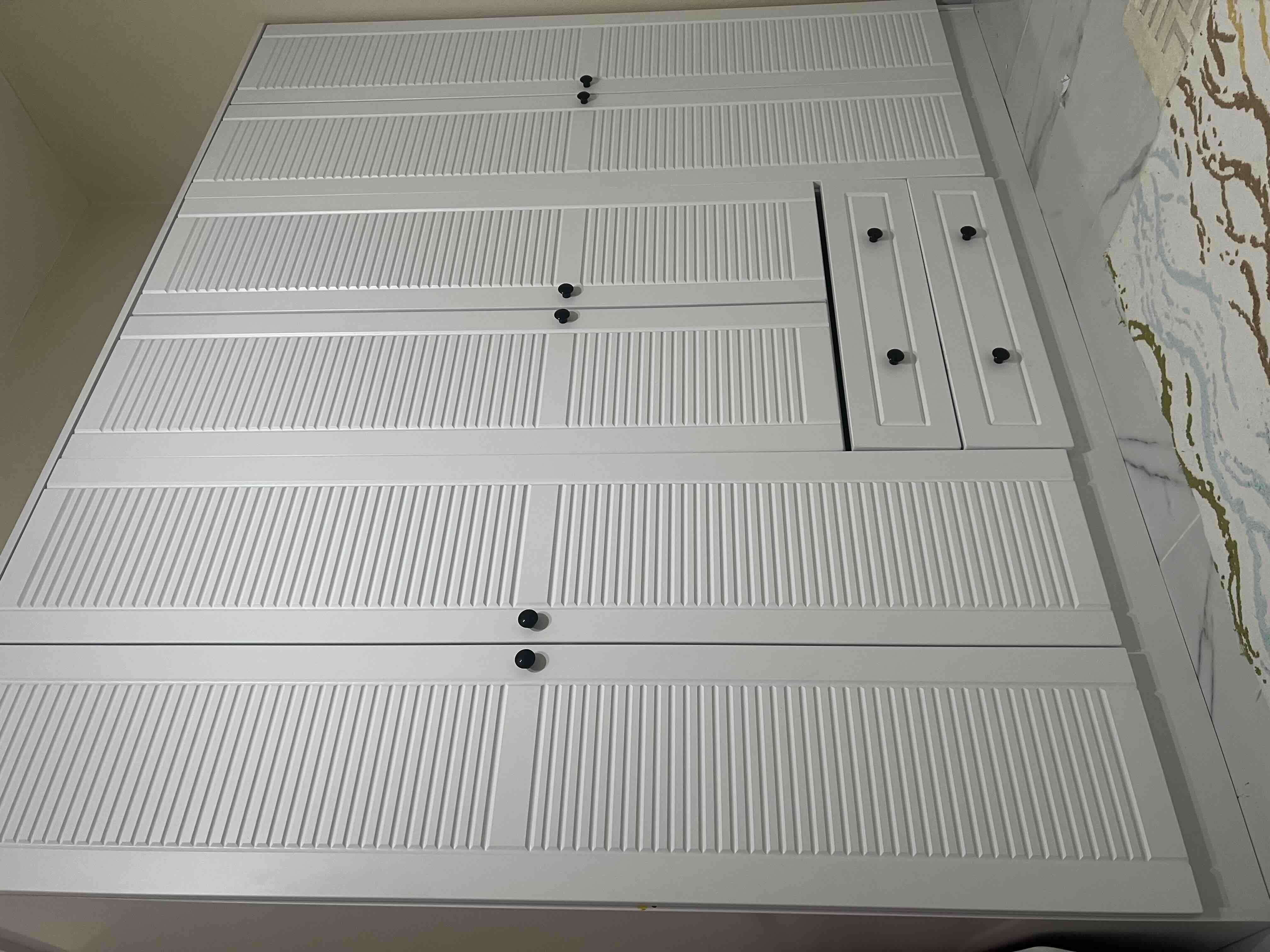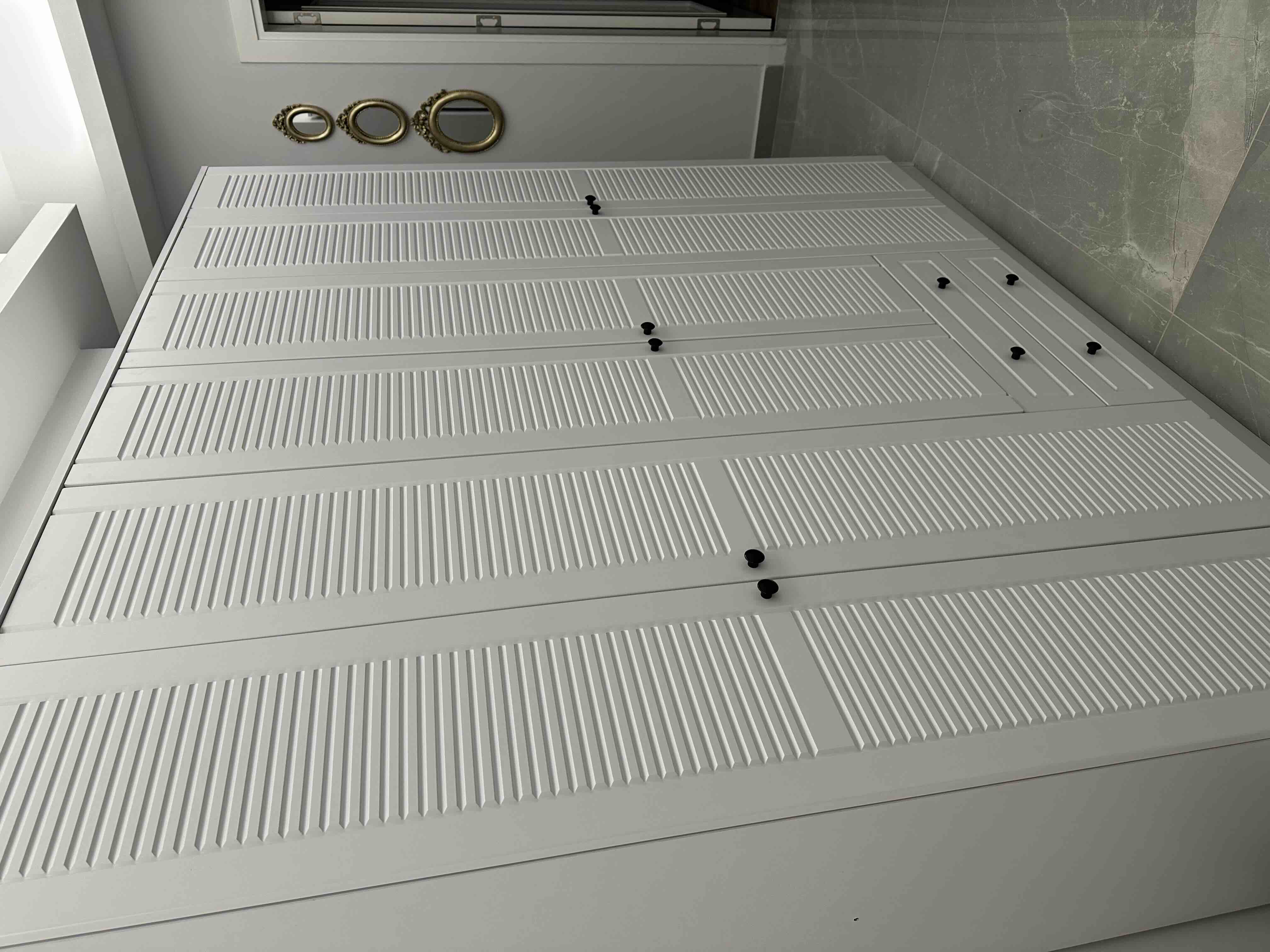 • İkonik Jaluzi Tasarımı: Kapaklarda Country tarzında işlenmiş, jaluzi dokulu MDF üzerine Beyaz membran kaplama.