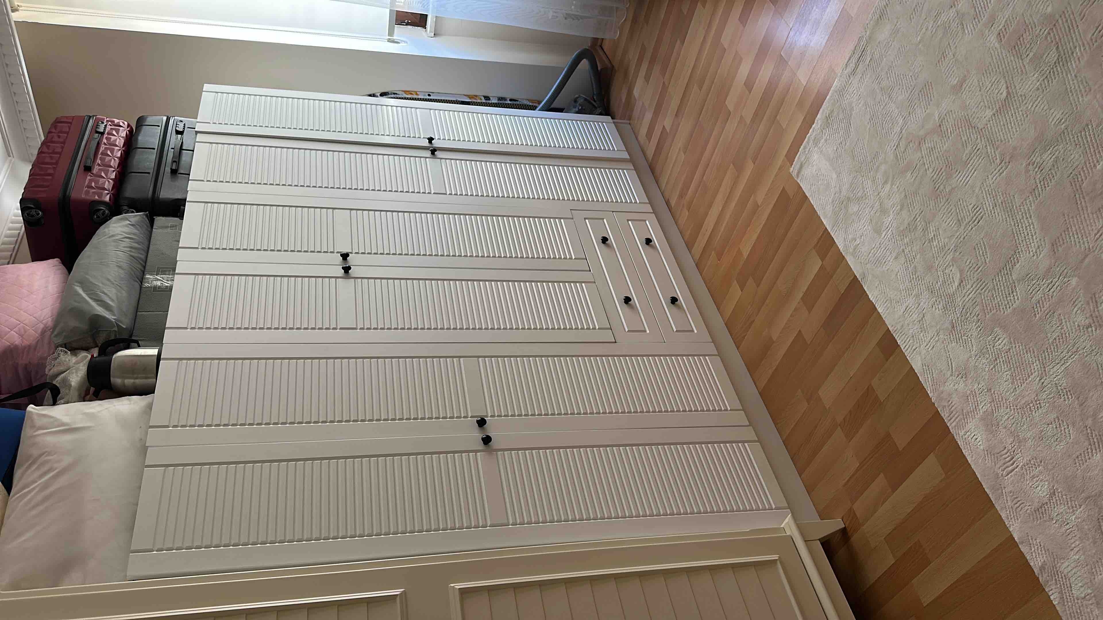 - Y** Y**Onaylı 😍18 Mar 2025Satıcı: Rabi MobilyaÖncelikle şunu söylemeliyim ki malzemeler görsel olarak çok güzel ve çok kullanışlı. Fakat sökme takma sürekli yapılacaksa ona gelmez dağılır. Ben 6 kapak 2 çekmece , 6 kapaklı aynalı 2 çekmece, 3 kapak 2 çekmece ve 6 çekmece 2 kapak şeklinde dört adet dolap aldım. yerim beşbuçuk metreydi duvardan duvara yapmak istedim. tac kısmını kullanmayınca yan yana koyabiliyorsunuz. Ben ürünü çok beğendim. eşim kurdu. bir tane ürünümde problem vardı iletişime geçtim hemen gönderildi. Horoz lojistik ilk teslimatı gerçekleştirdi. kargo hemen verildi ama horoz loj. 1 hafta sonra getirdi. Ben emeği geçen herkese tşk ederim.