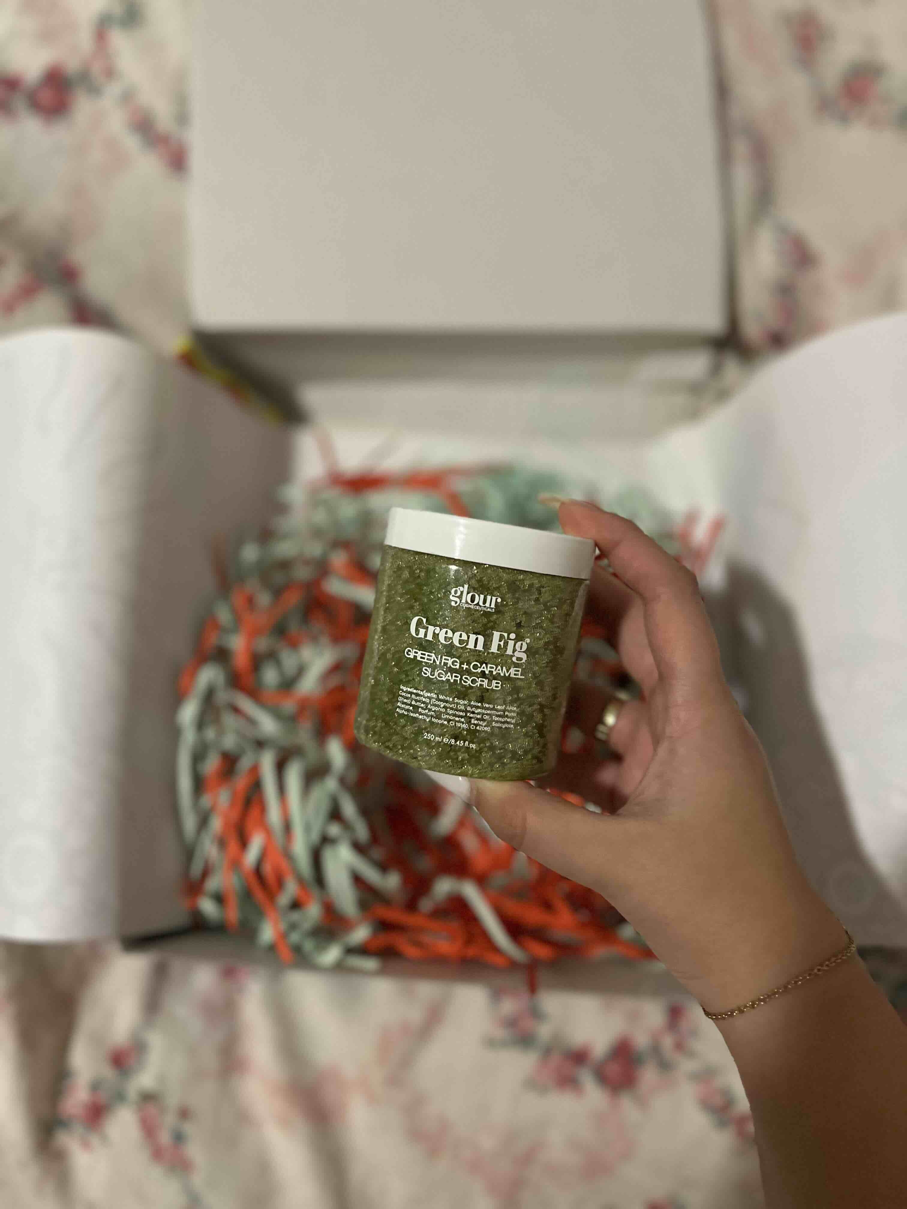 Glour Karamel ve İncir Özlü Şeker Peelingi, cildinizi doğal ve etkili bir şekilde arındırmak ve beslemek için özel olarak tasarlanmış bir scrub ürünüdür.