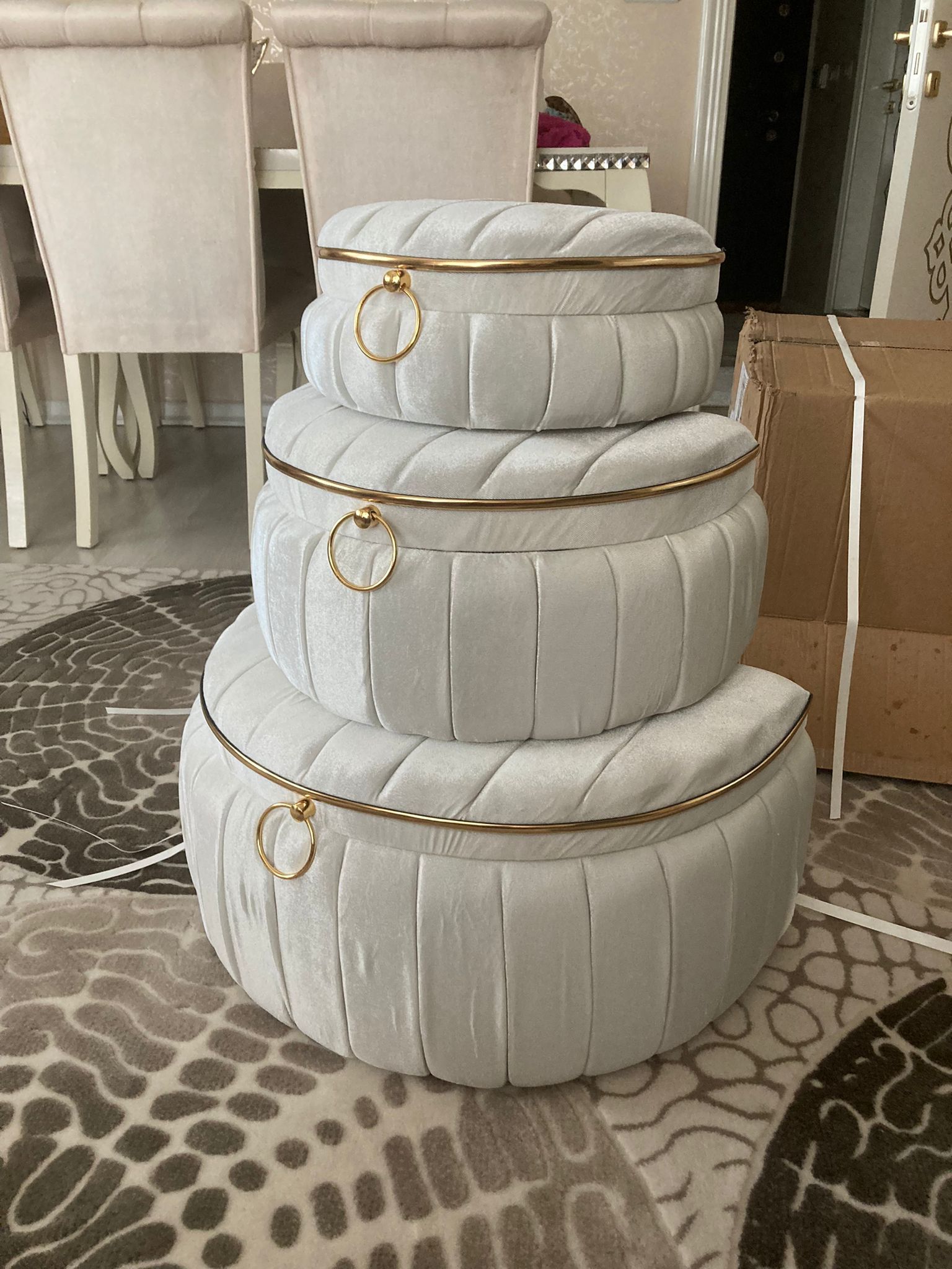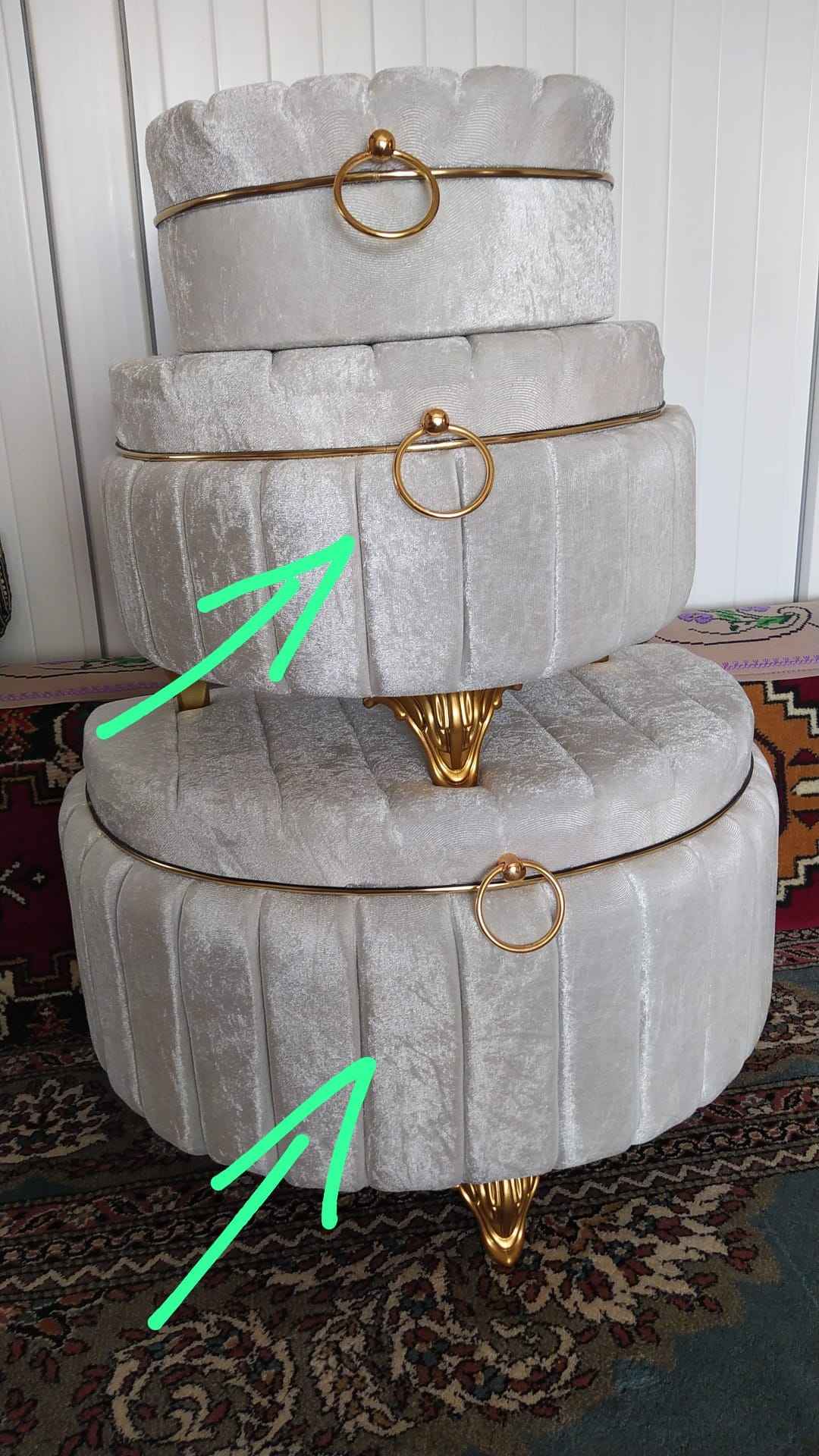 - **** ****Onaylı 😐15 Oca 2024Satıcı: Duru Çeyiz Sandiklaricok saglam gorunmuyor hic ozenli yapistirilmamis ic kismi cok kotu yapistirilmis en buyuk olanin cok kucuk bi delik var ayaklar bu ayaklar degil lutfen gorseli degistirin ayaklarin bu olmadigini belirtin