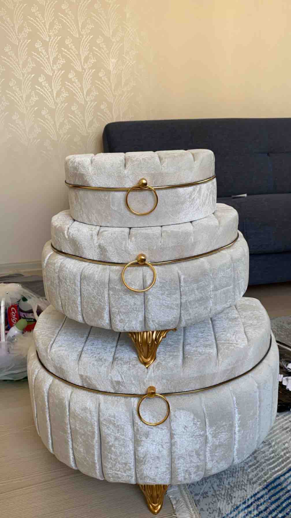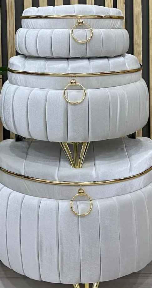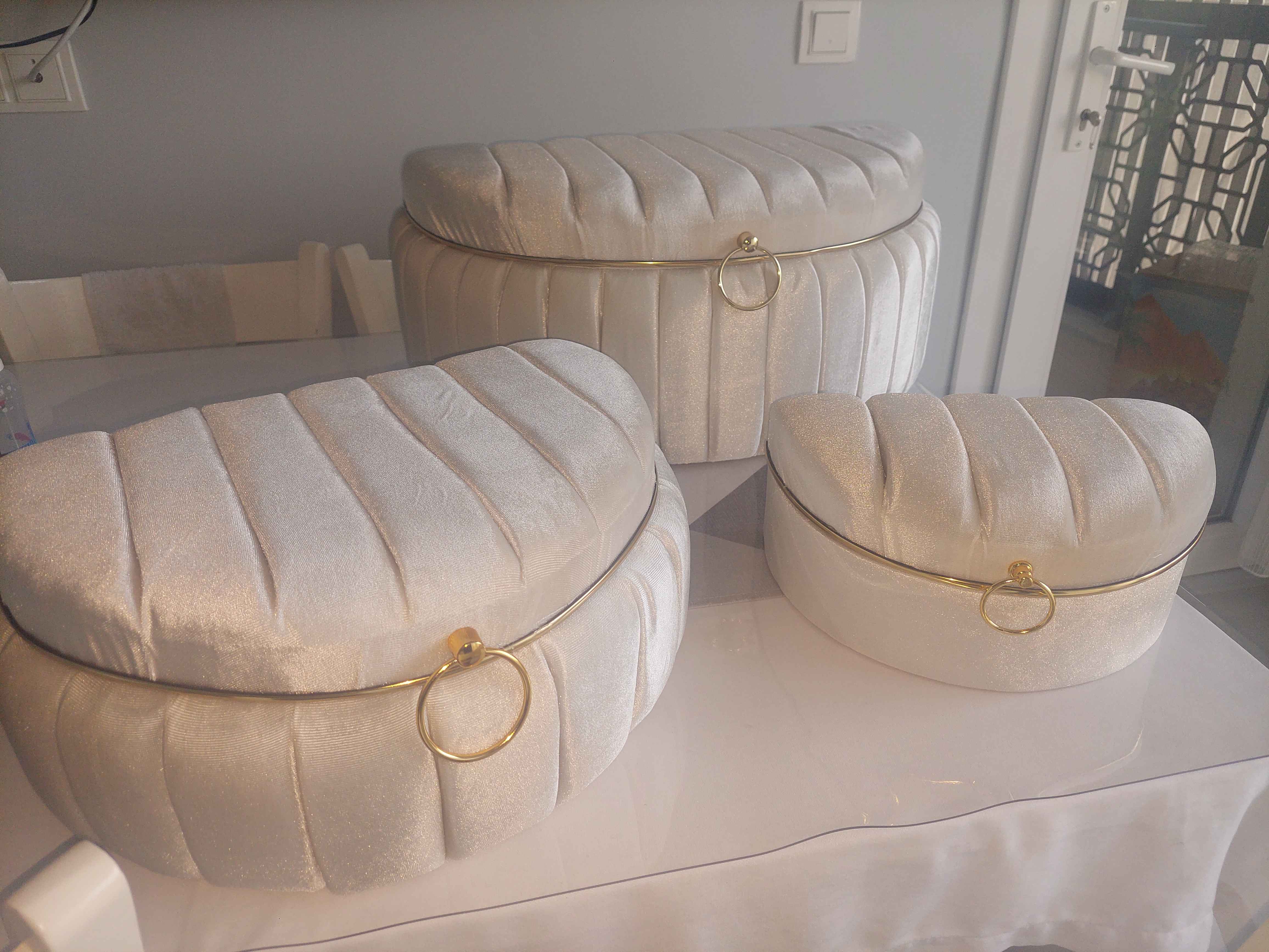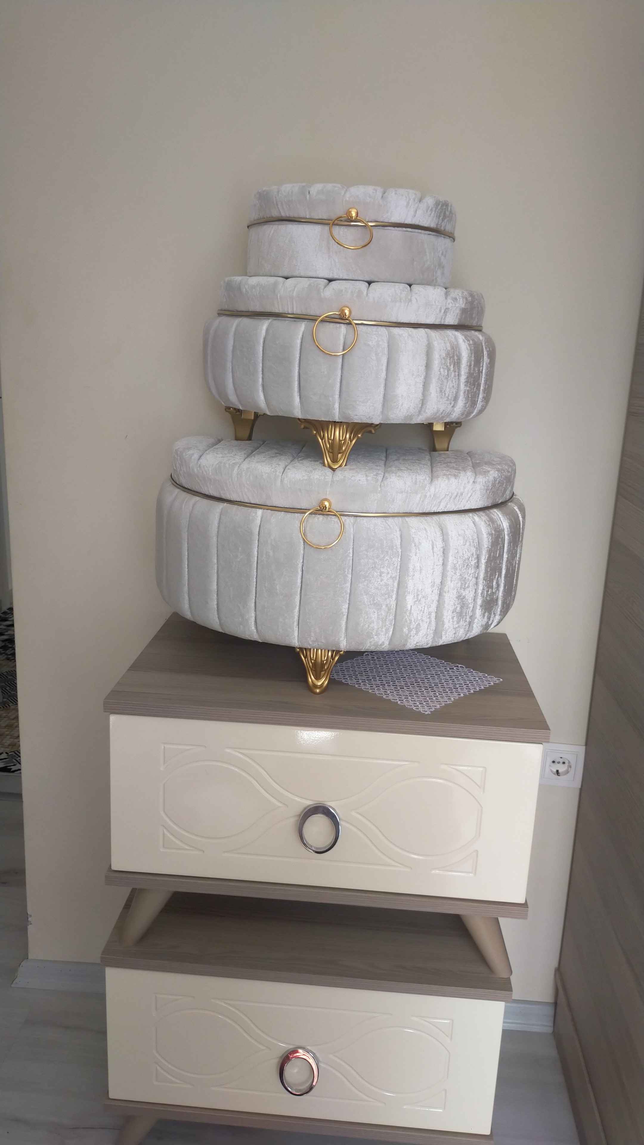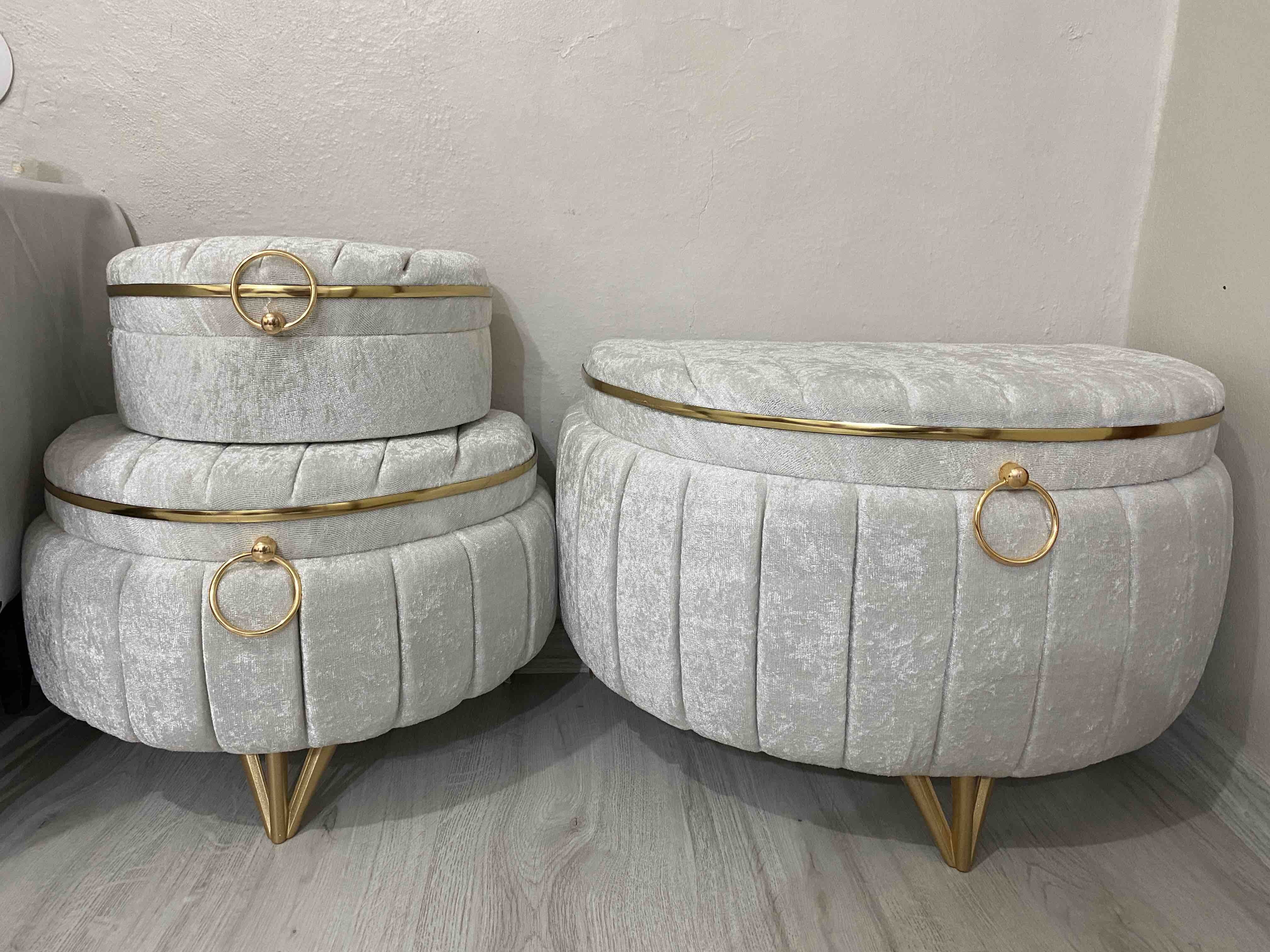 Üçlü set halinde sunulan bu ürün, geniş depolama alanı sunarak çeyiz eşyalarınızı düzenli bir şekilde saklamanızı kolaylaştırır