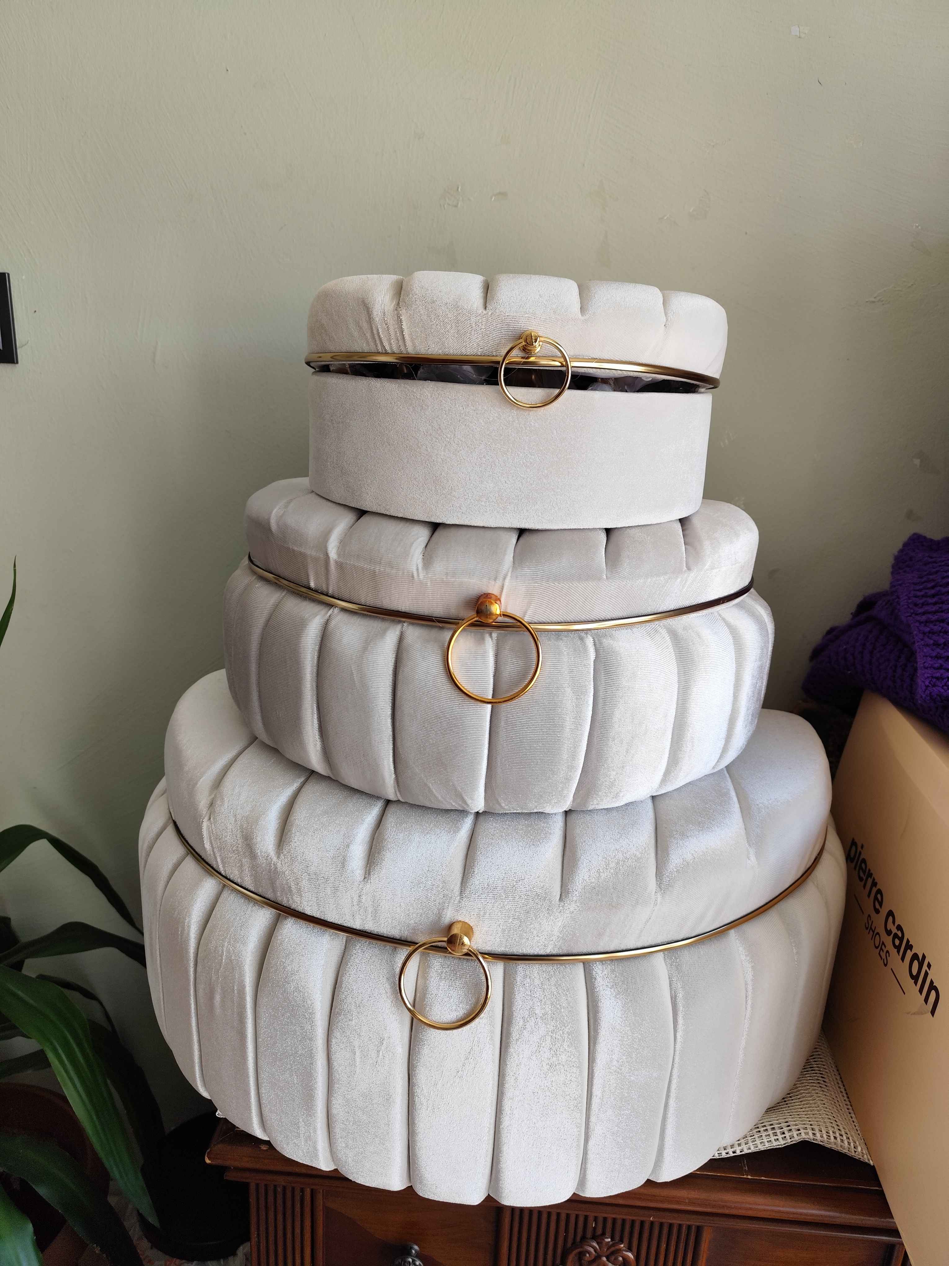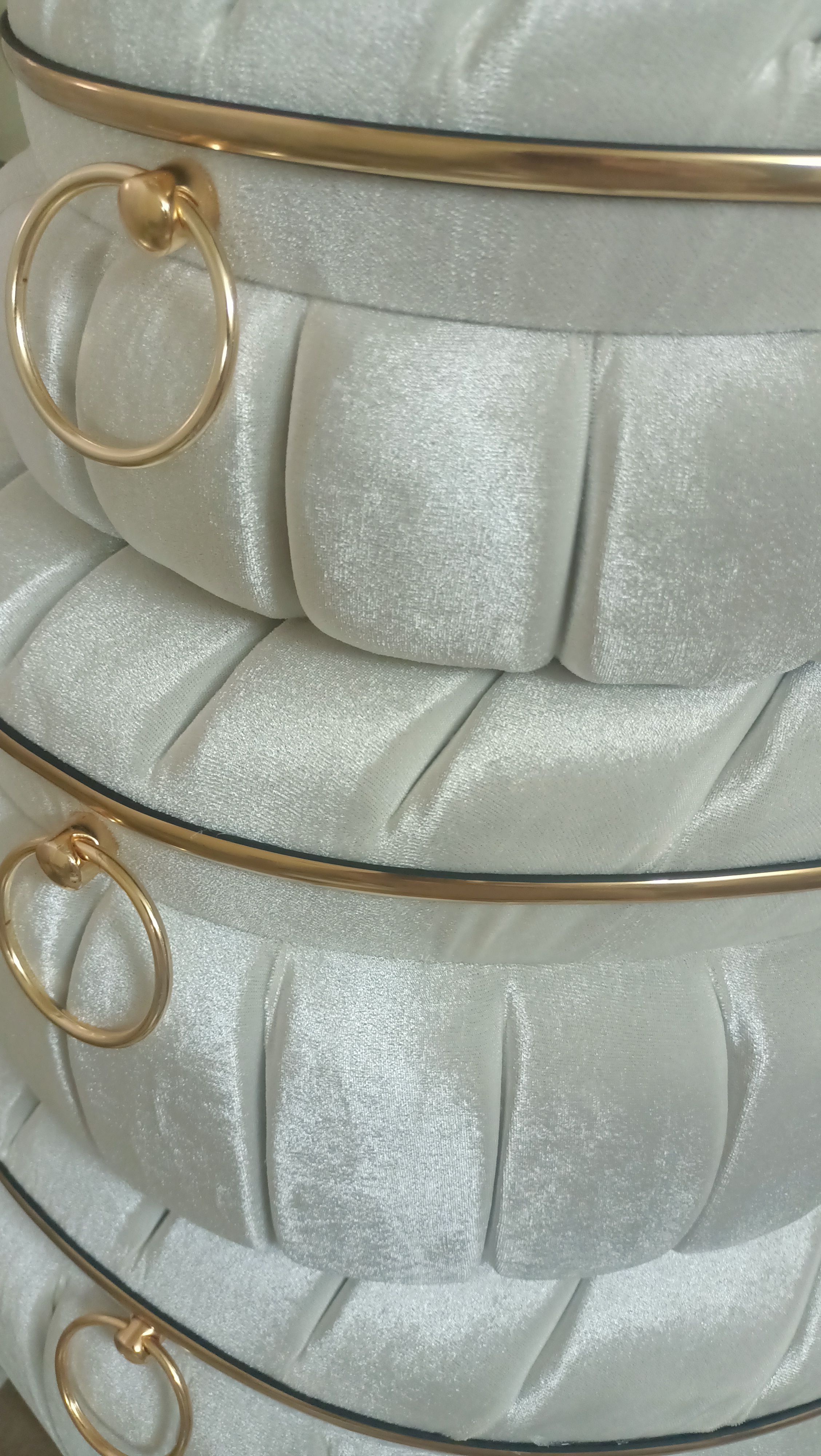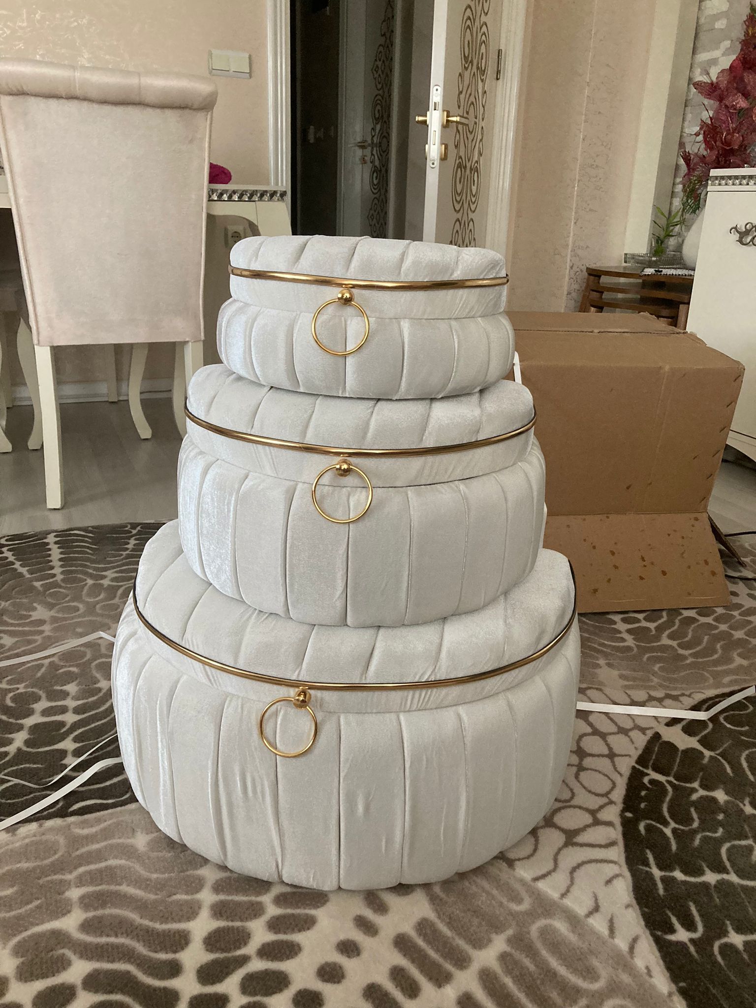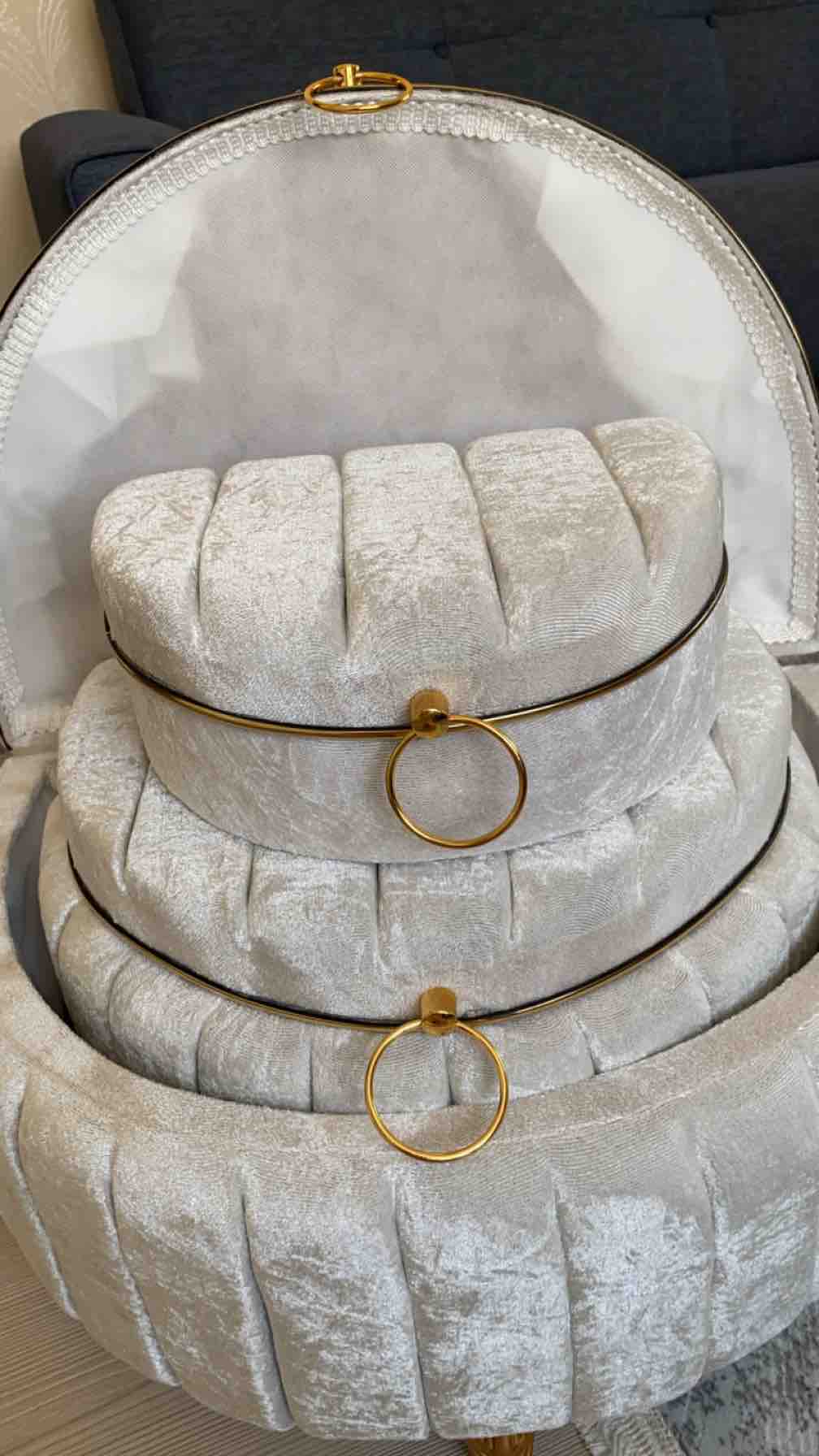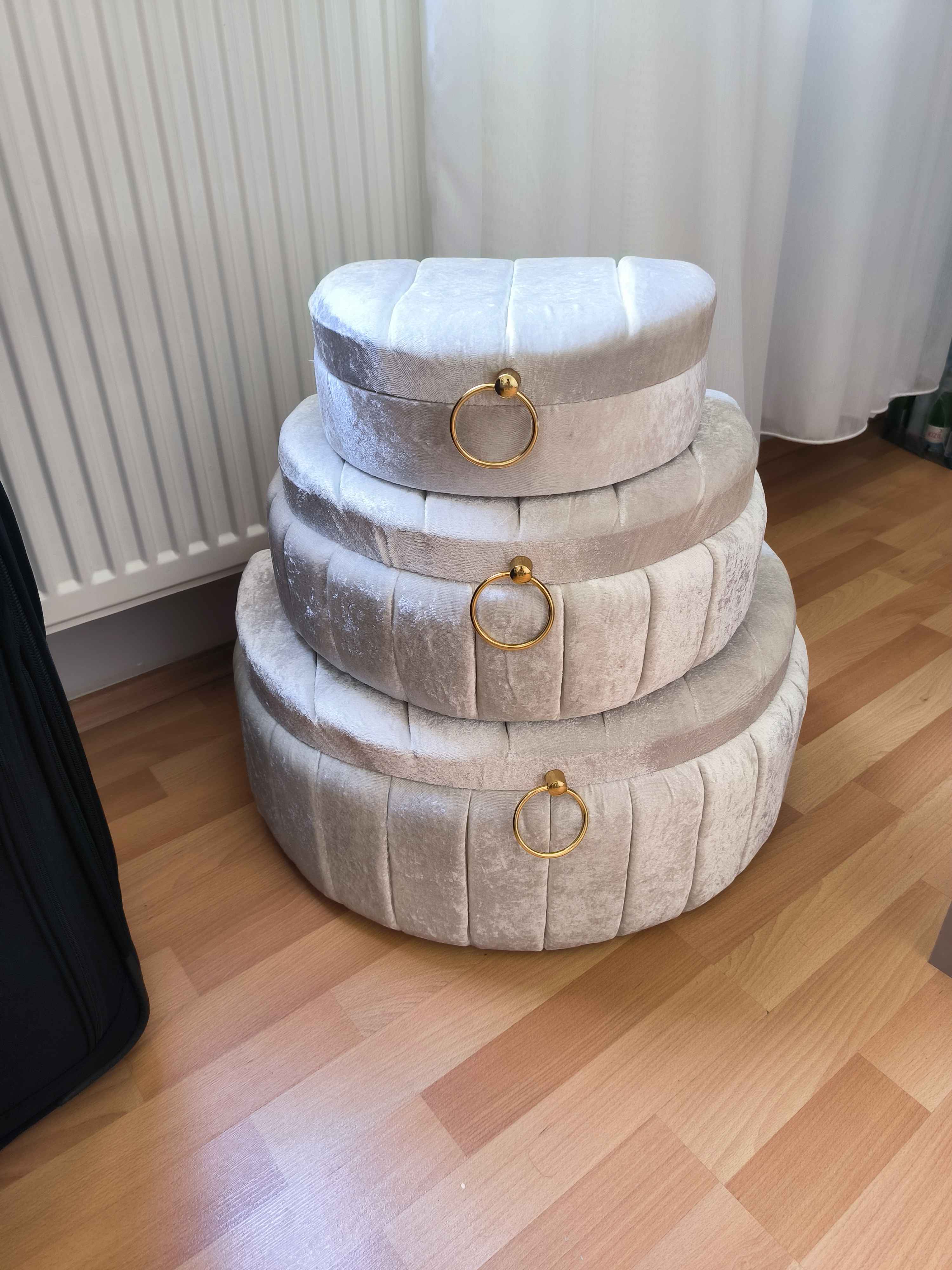 Üçlü set halinde sunulan bu ürün, geniş depolama alanı sunarak çeyiz eşyalarınızı düzenli bir şekilde saklamanızı kolaylaştırır