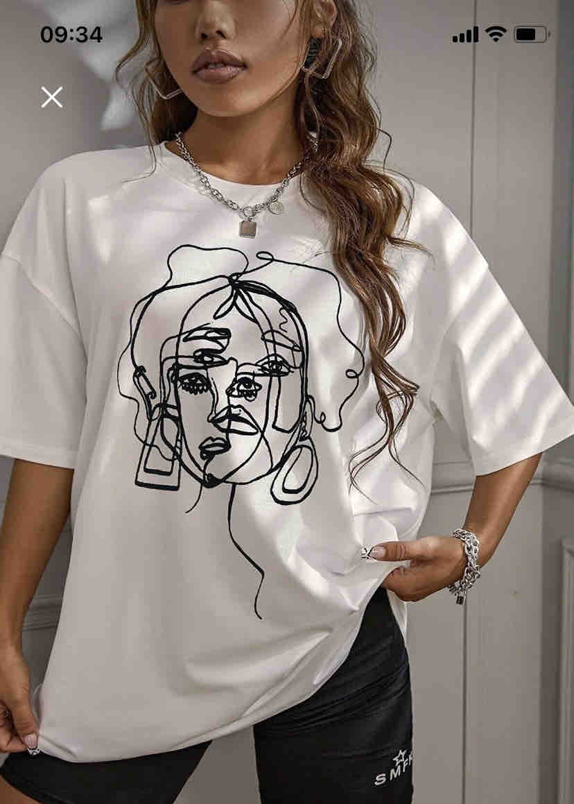 Kadın Beyaz Yüz Baskı Detaylı Oversize T-shirt Ürün Detayı