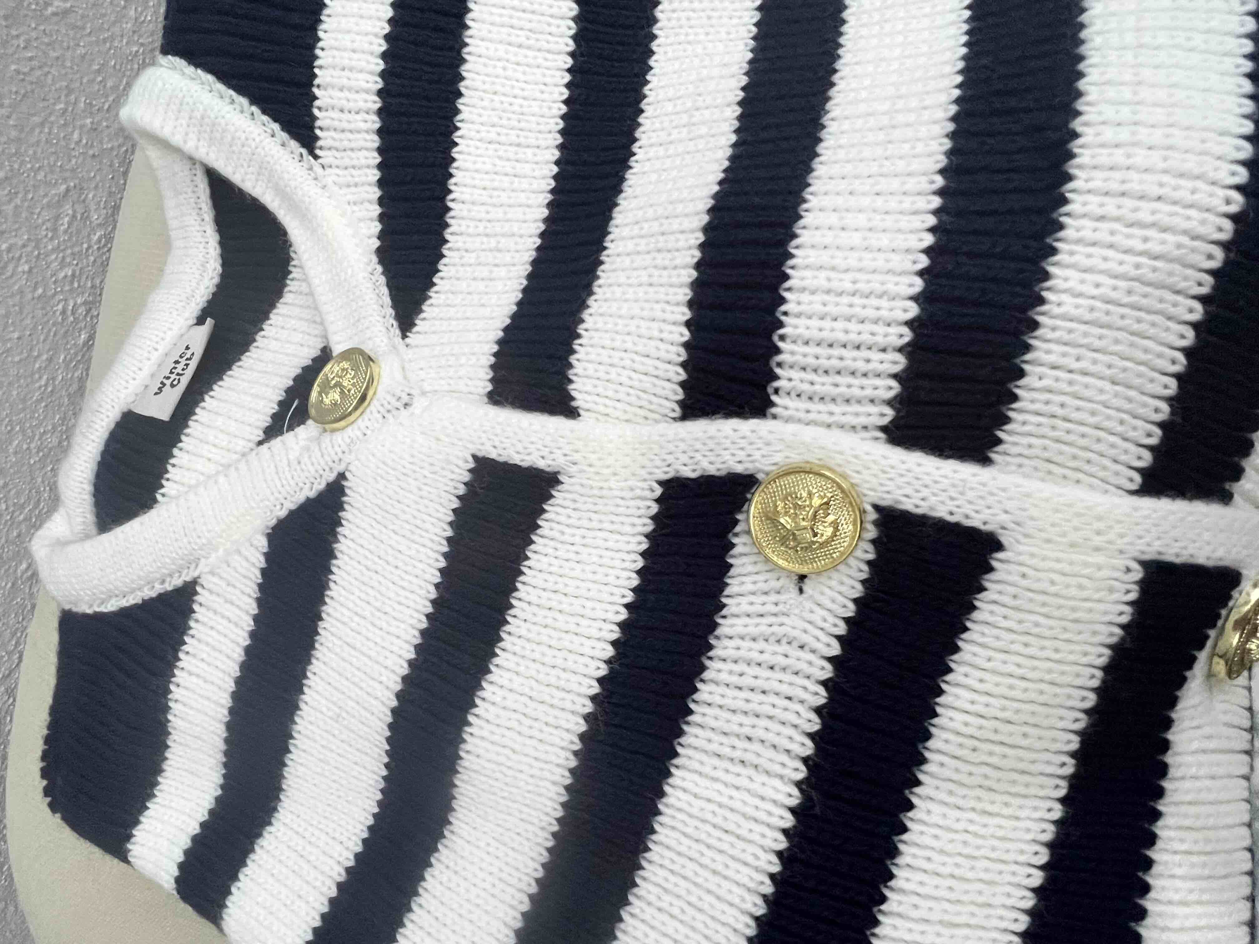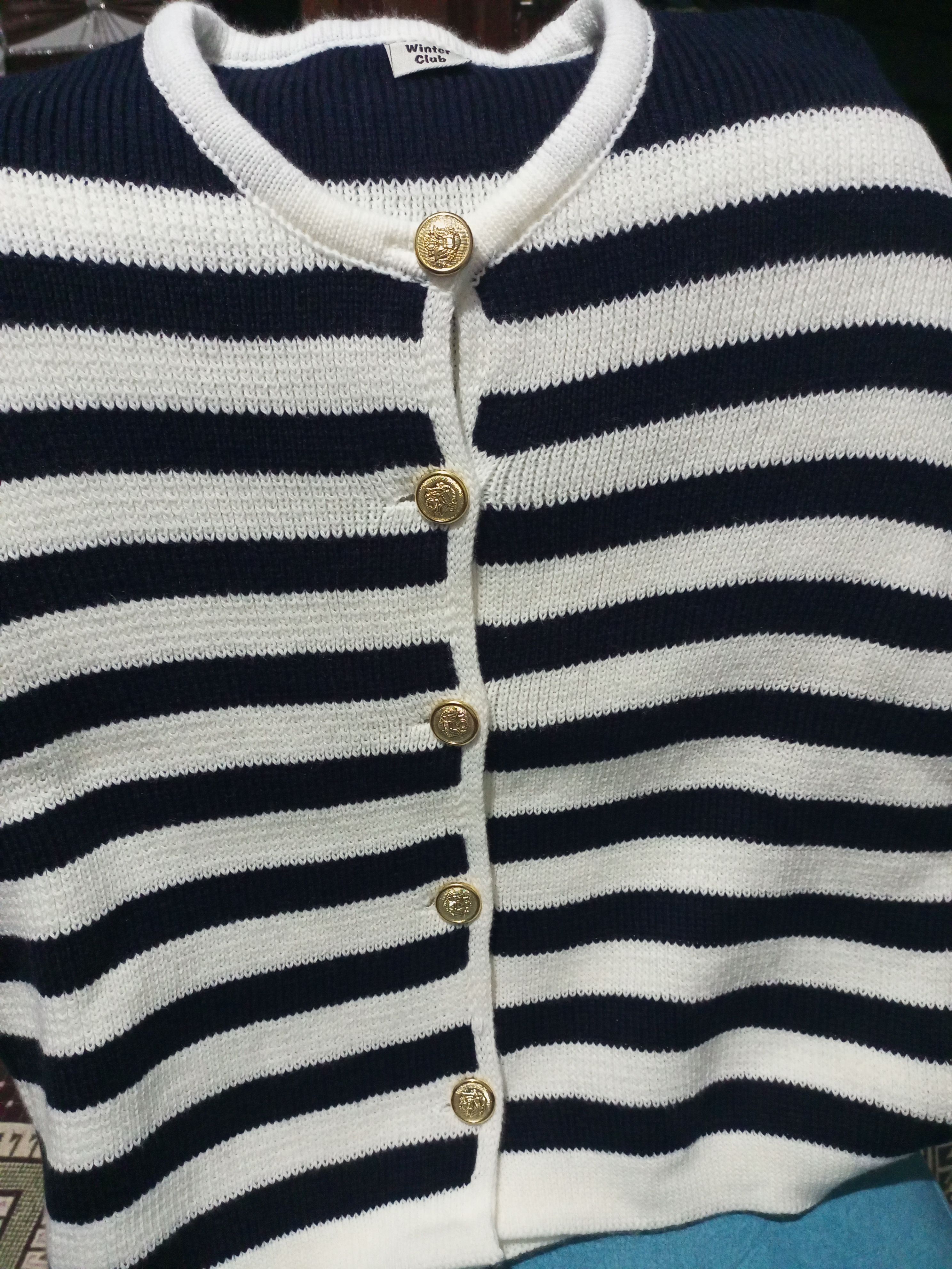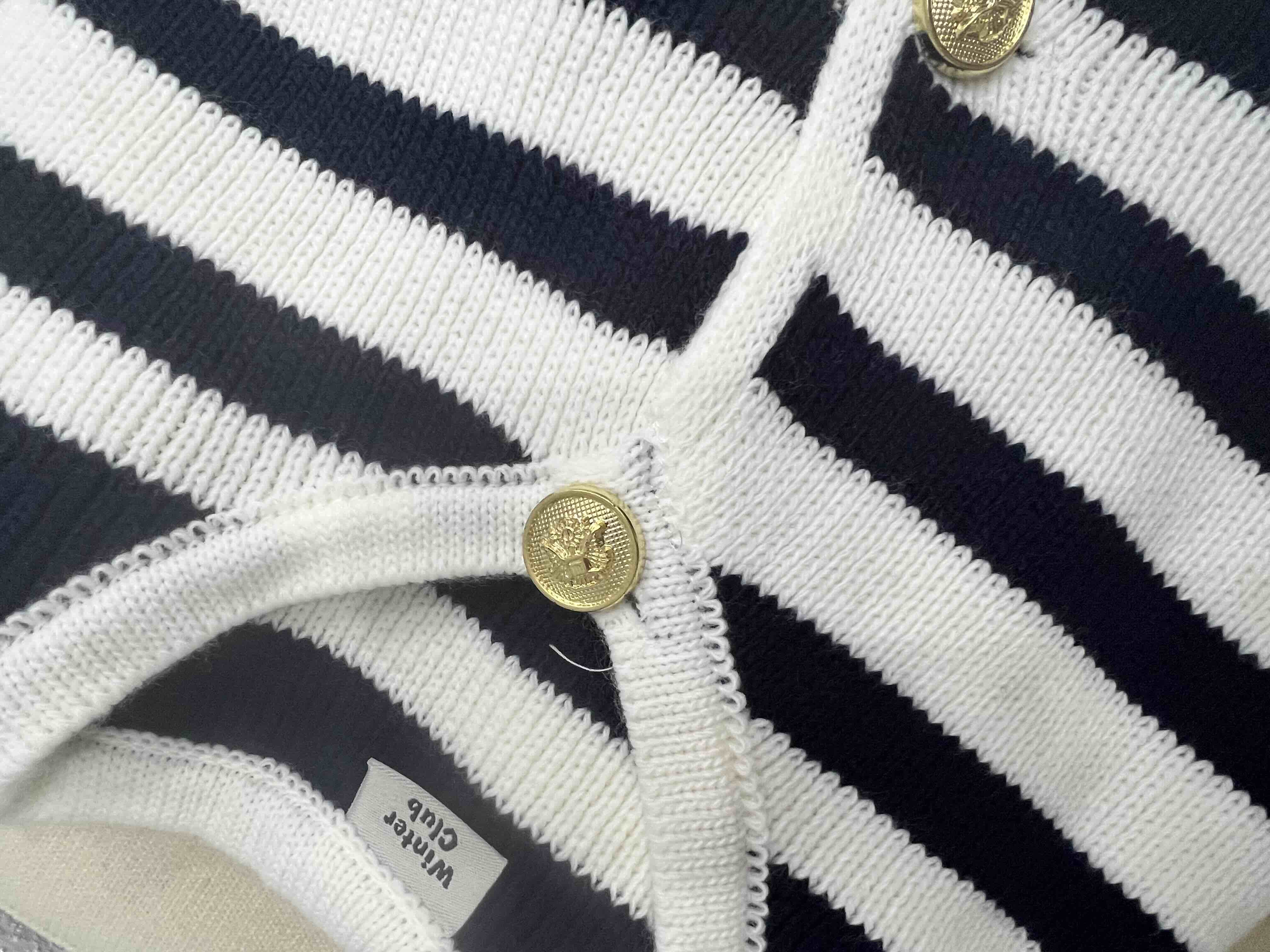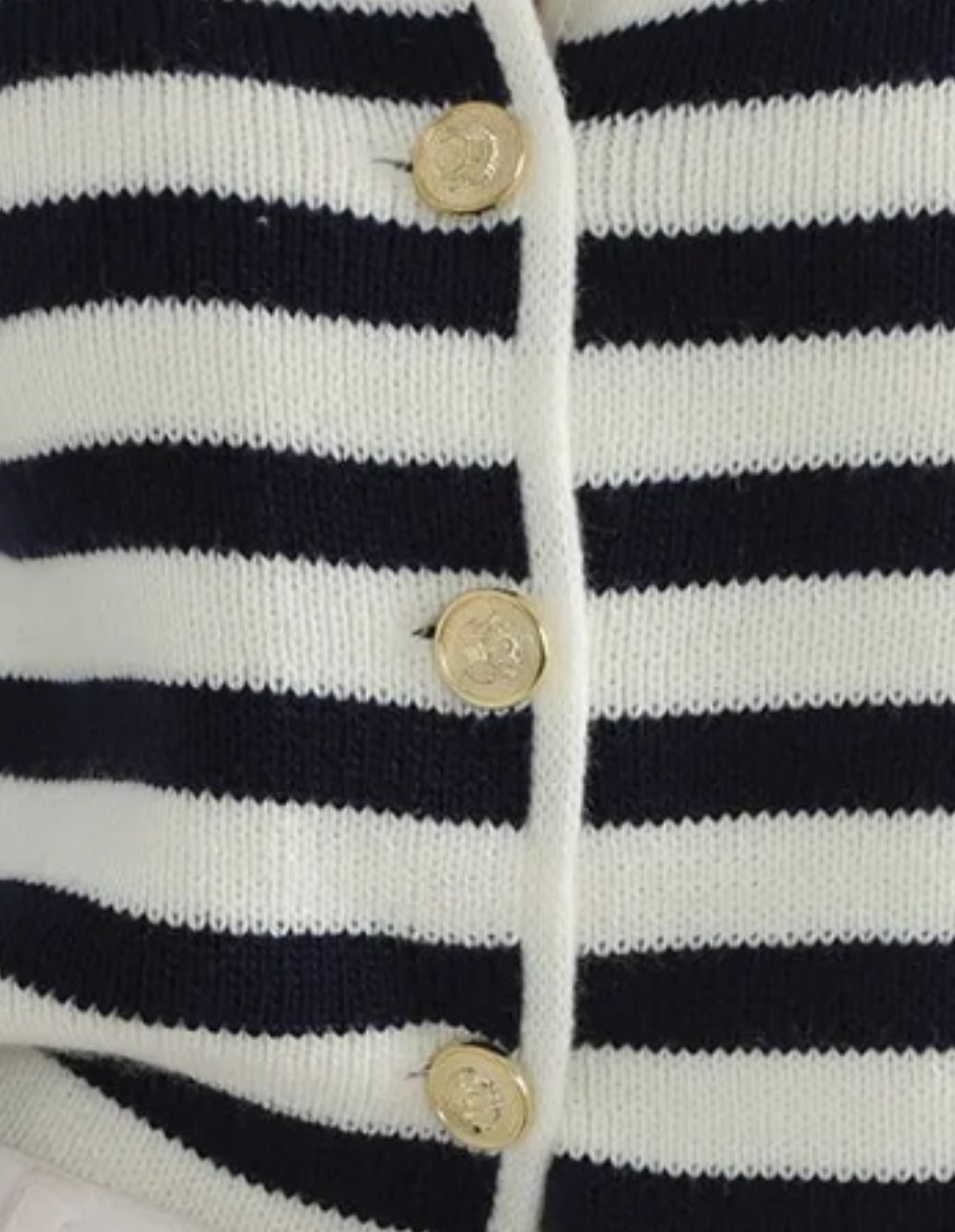 Kadın Lacivert Çizgili Bisiklet Yaka Fitilli Gold Düğme Detaylı Triko Hırka Ürün Detayı