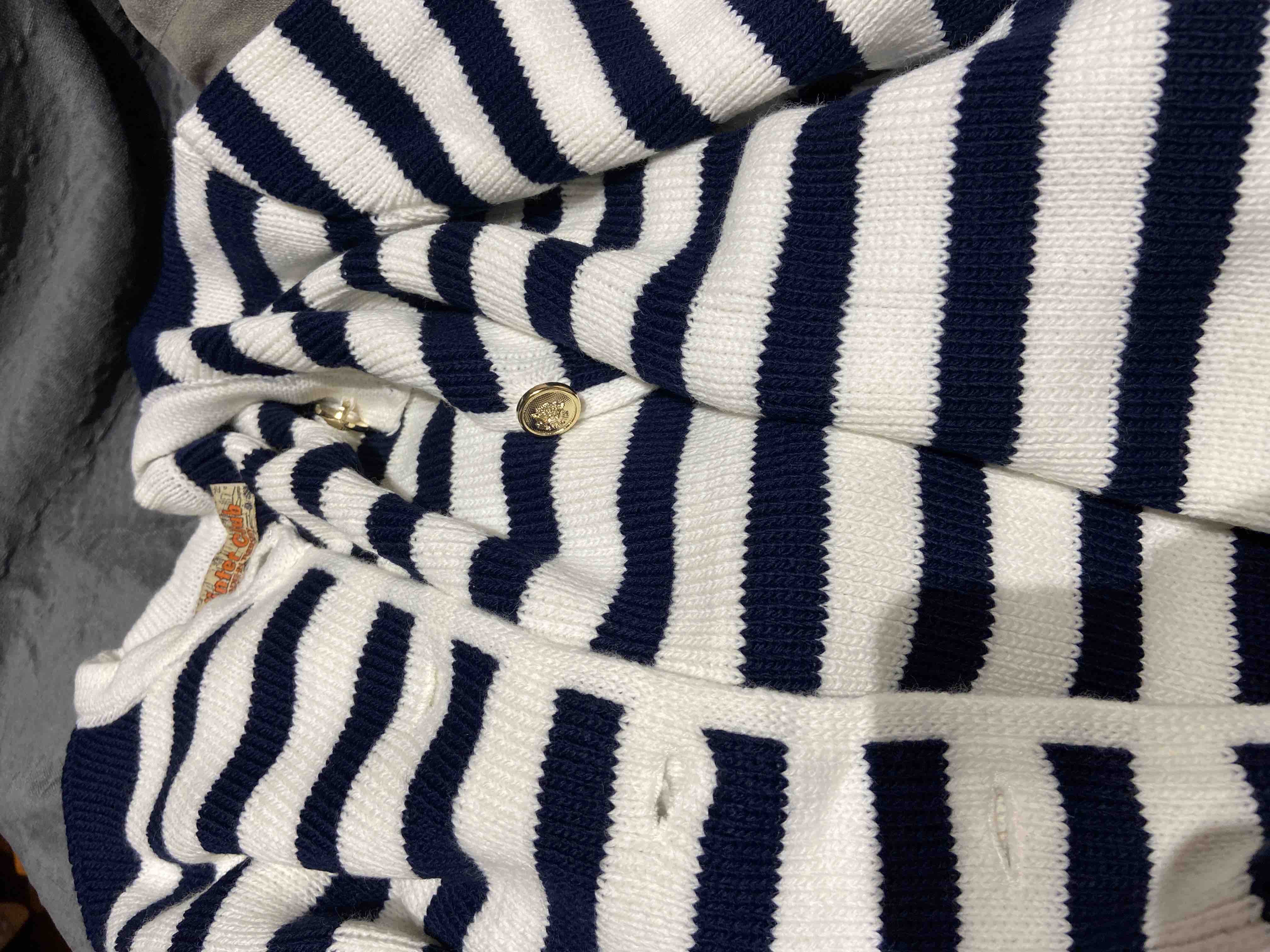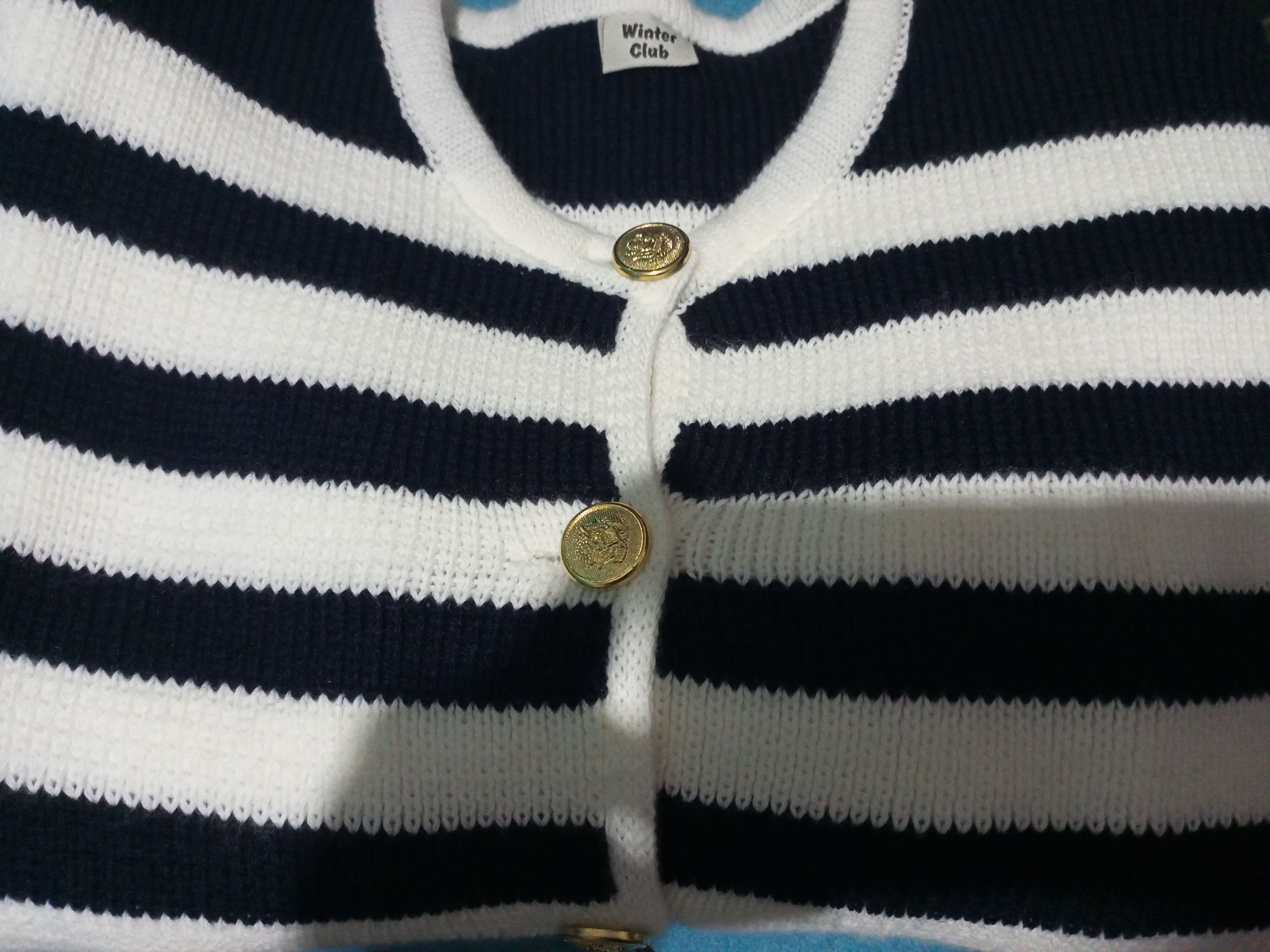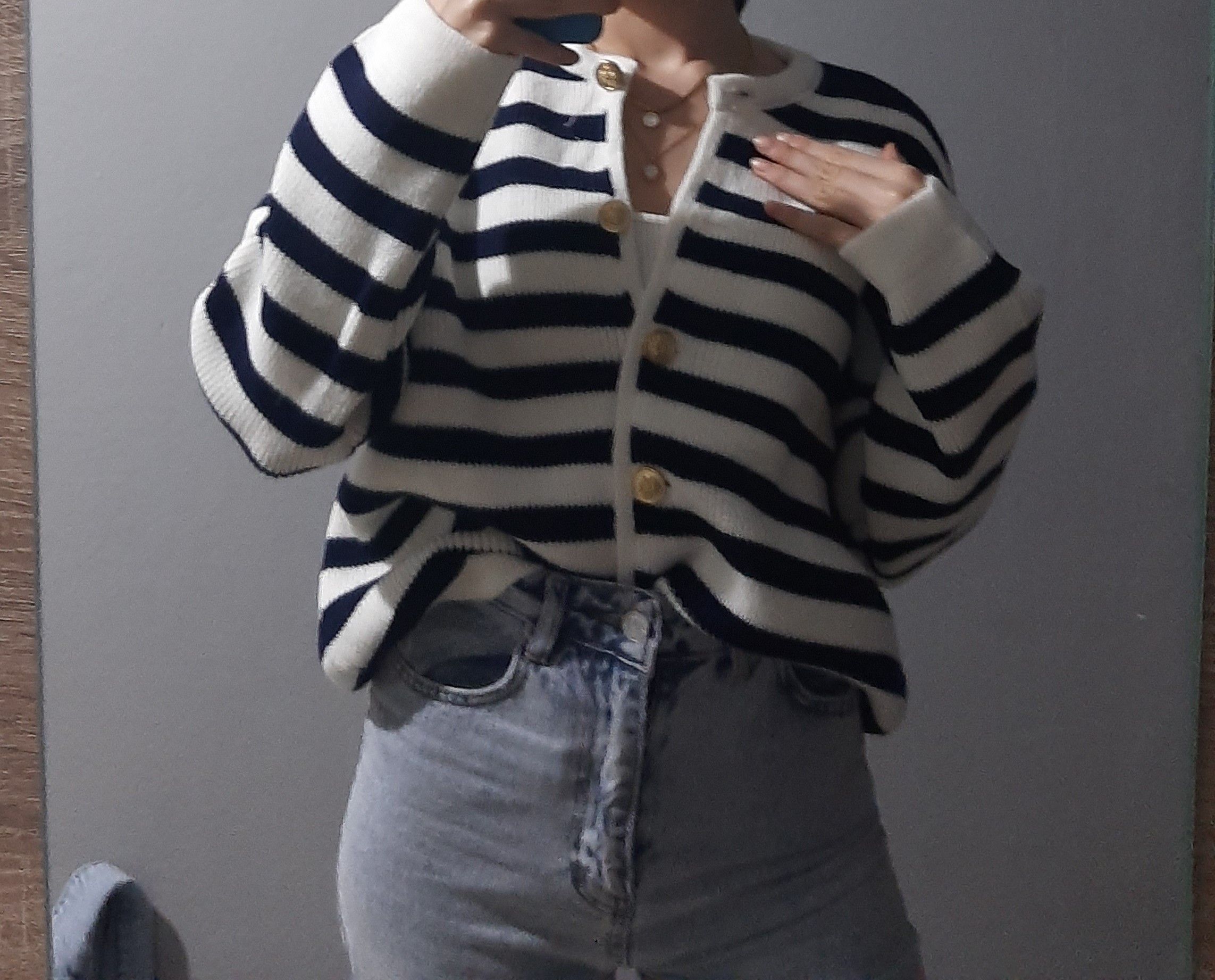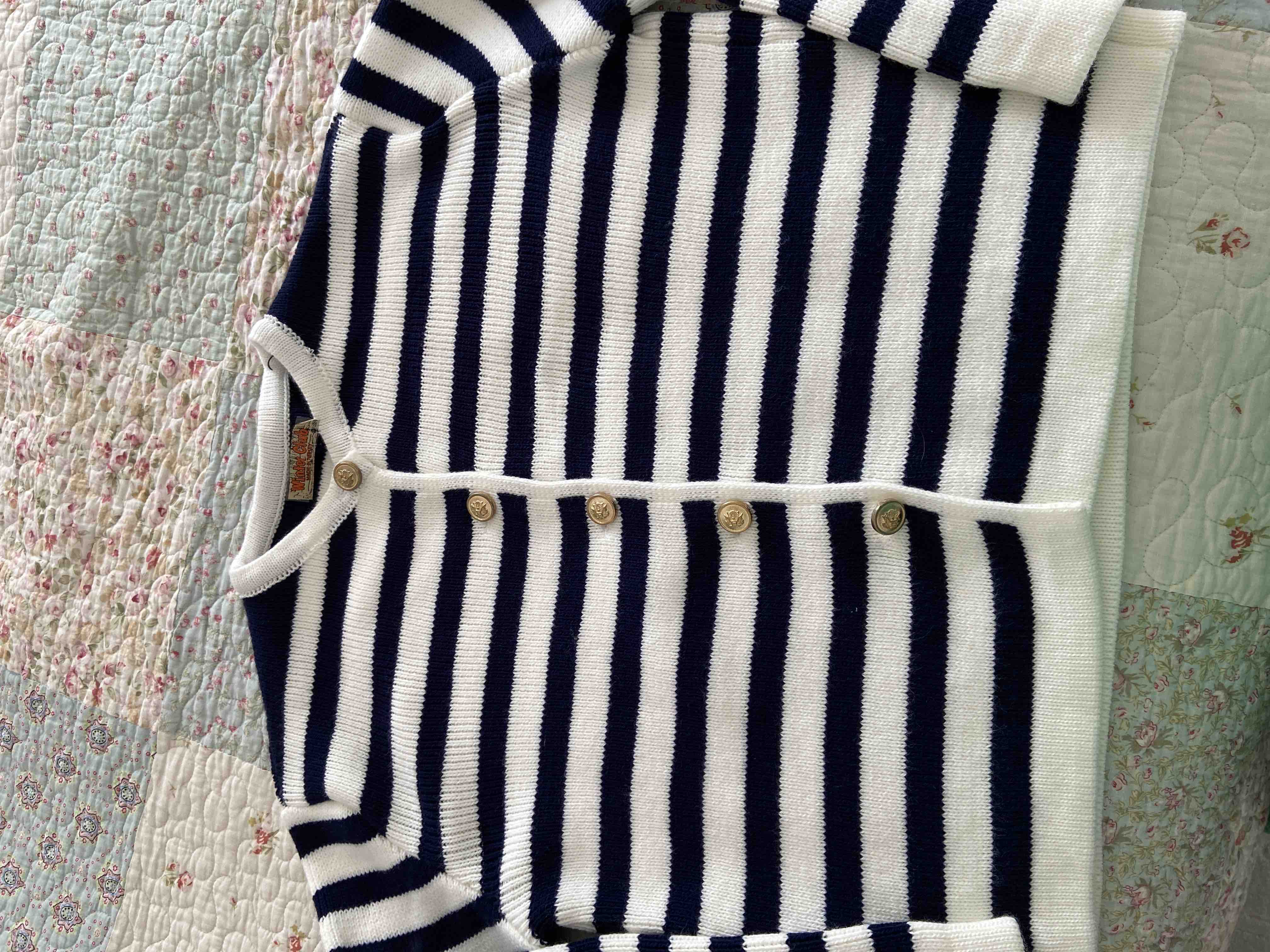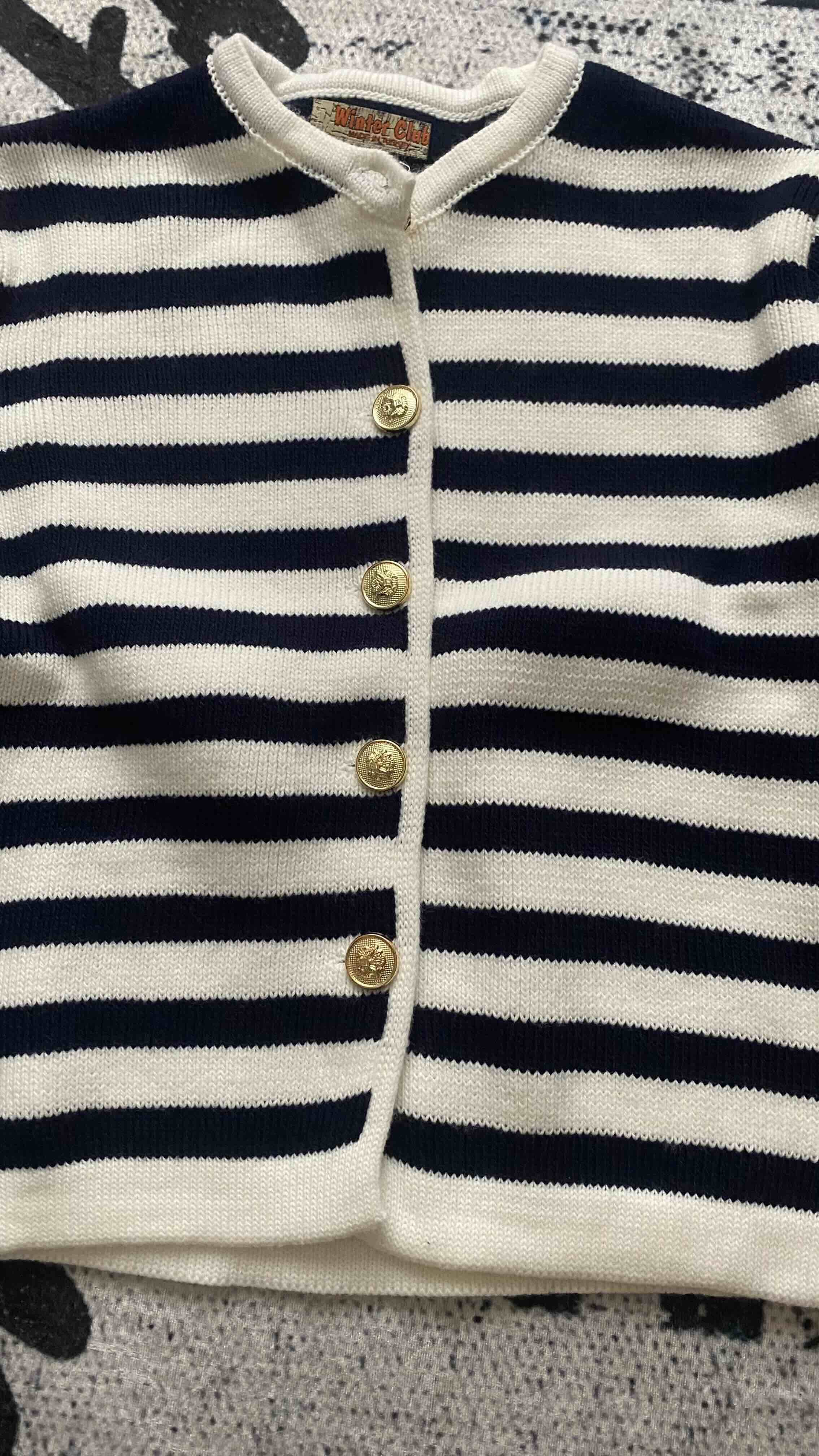 Kadın Lacivert Çizgili Bisiklet Yaka Fitilli Gold Düğme Detaylı Triko Hırka Ürün Detayı