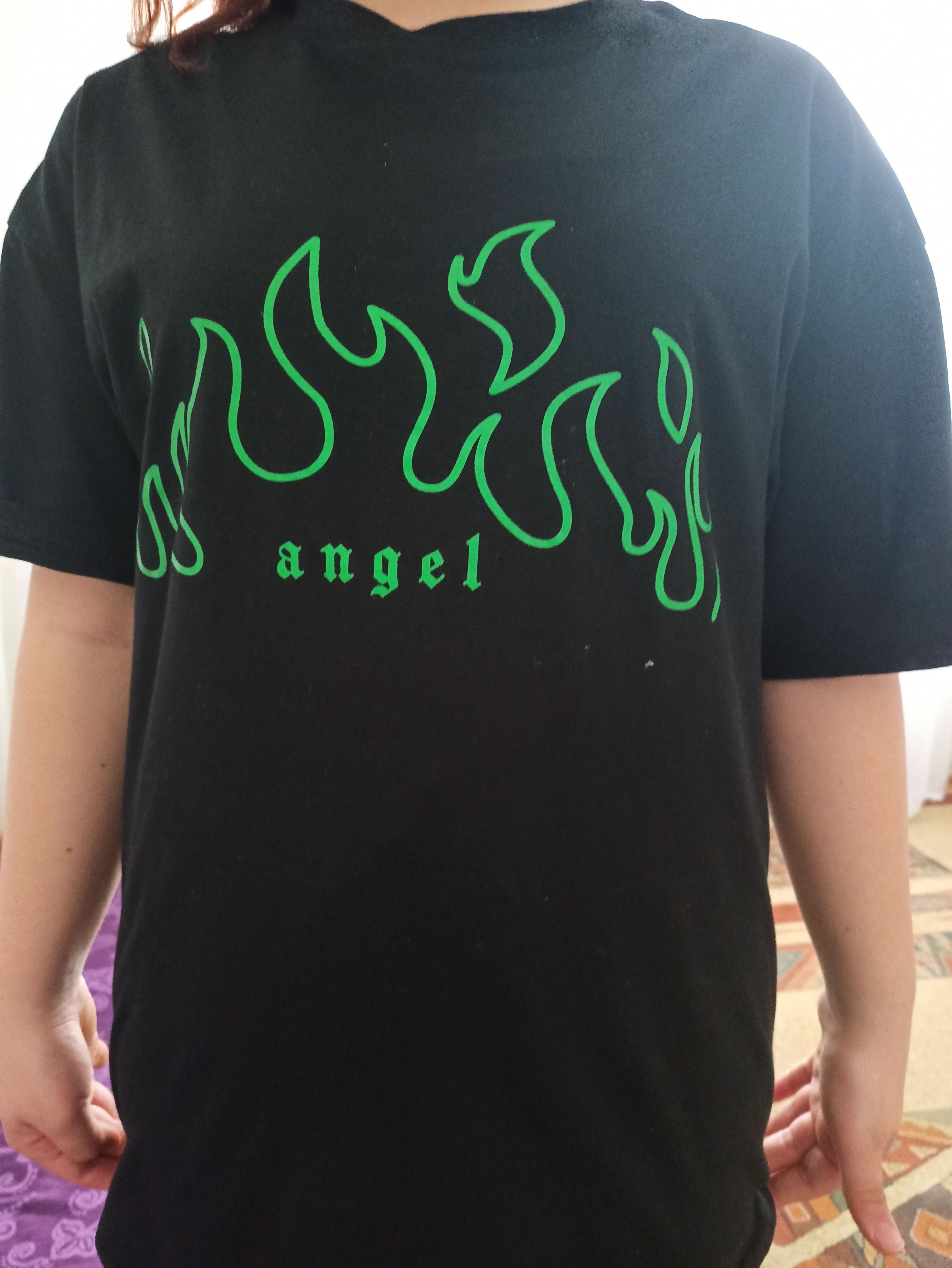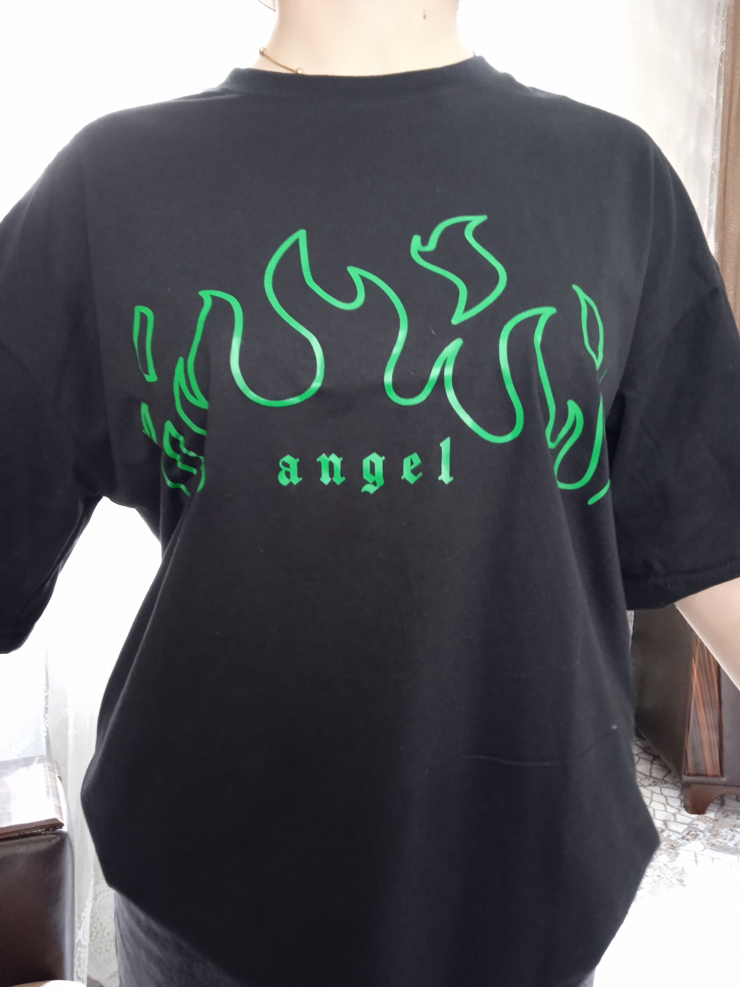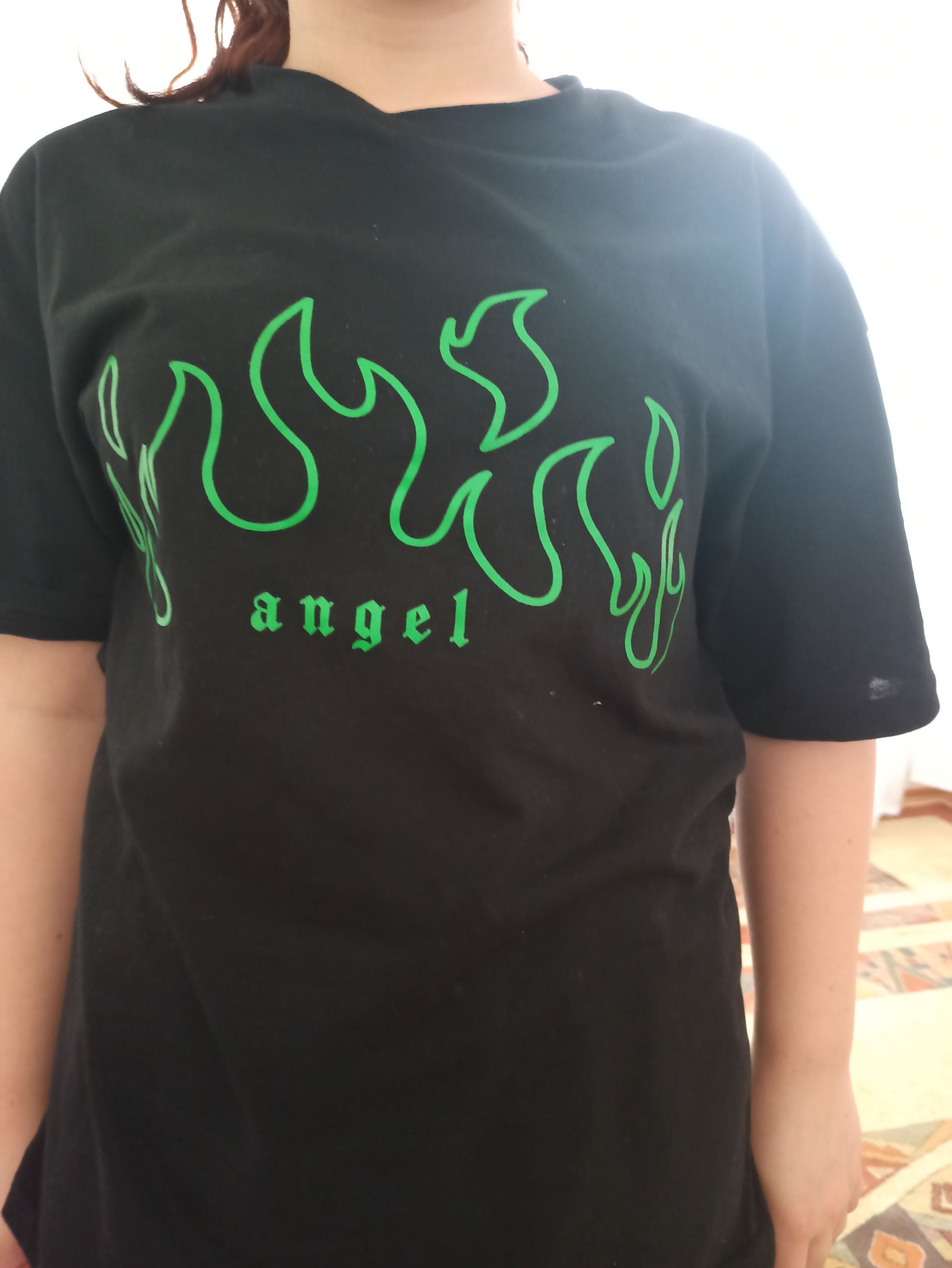 Kadın Yeşil Angel Baskılı Oversize T-shirt Ürün Detayı
