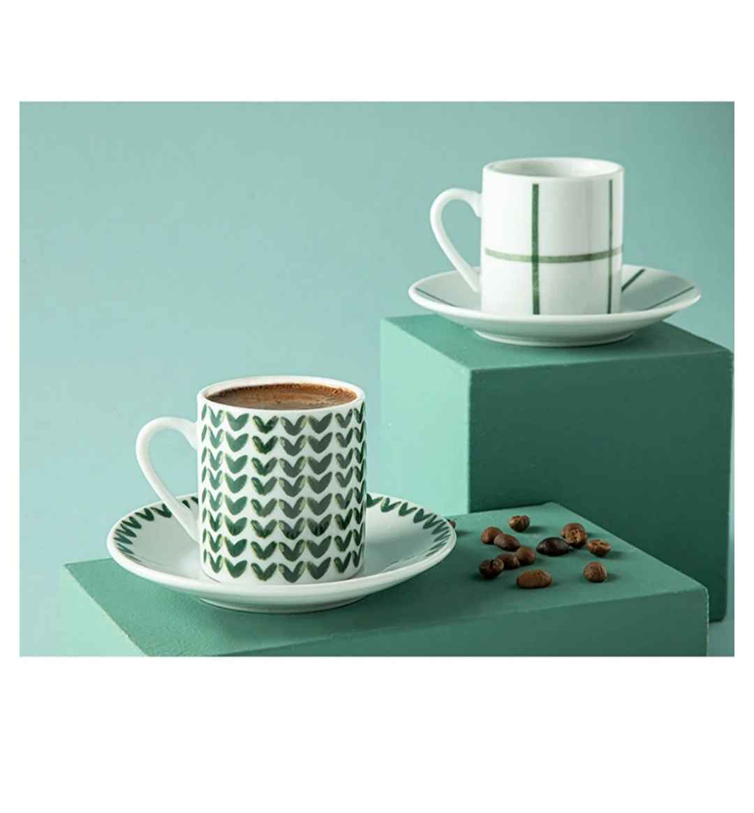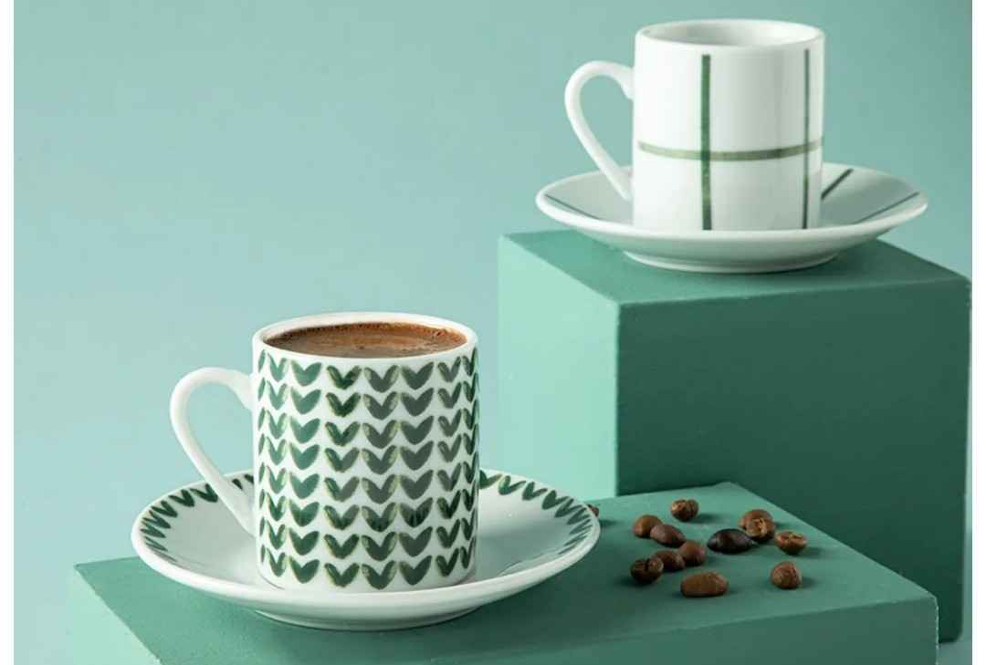 Leno Porselen Kahve Fincan Takımı 4 Parça 2 Kişilik Yeşil Ürün Detayı