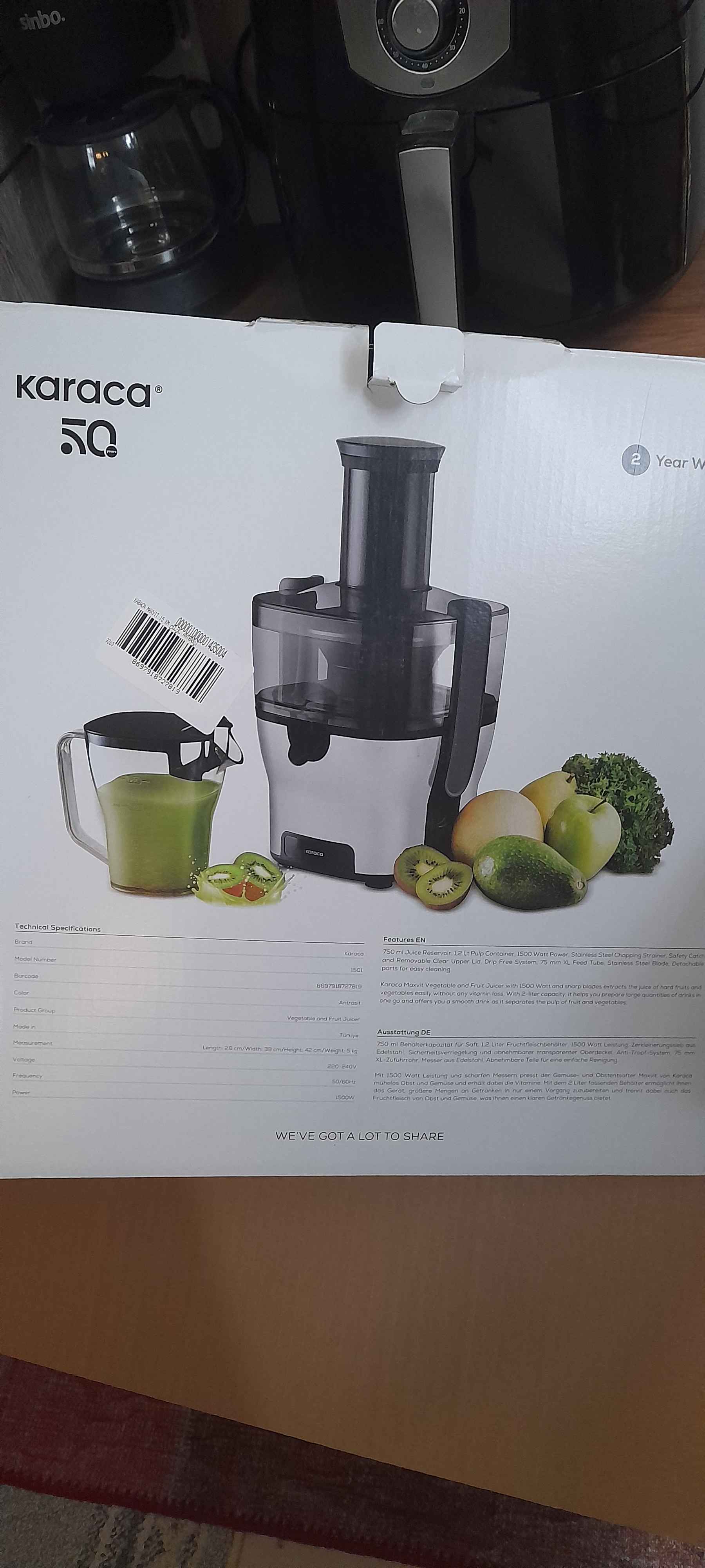 - İ** H** E**Onaylı 😍9 Kas 2024Satıcı: KARACA ZÜCCACİYEAçık ve net söylemek istiyorum ki ürün tam bir fiyat performans ürünü. meyvelerin suyunu orijinal bir şekilde içmek çok güzel bir haz veriyor. hele elma-havuç-pancar ve mandalina suyu karışımı harika oluyor. inşallah uzun yıllar kullanırım.