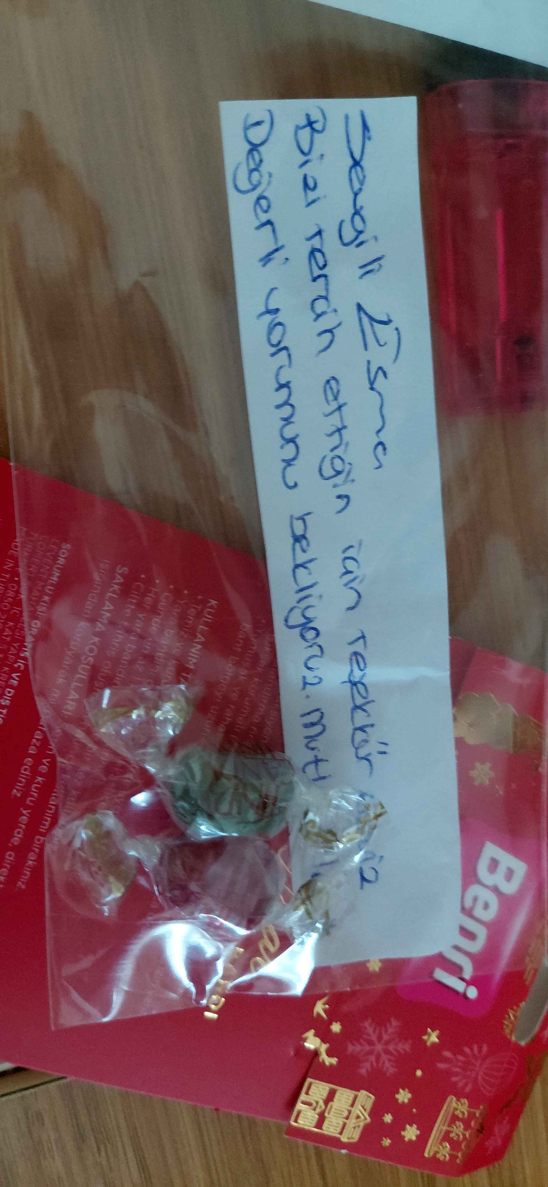 - S** k**Onaylı 😍16 Eyl 2025Satıcı: quatex2 şapka ve 2 tane bere sipariş verdim ürünler sorunsuz ve hızlı şekilde geldi ama en güzeli el yazısı teşekkür notu ve küçük ikramlardı diğer ürünlerine de bakıp tekrar tekrar sipariş vereceğim sayfaların arasına girdi 👍👍👍