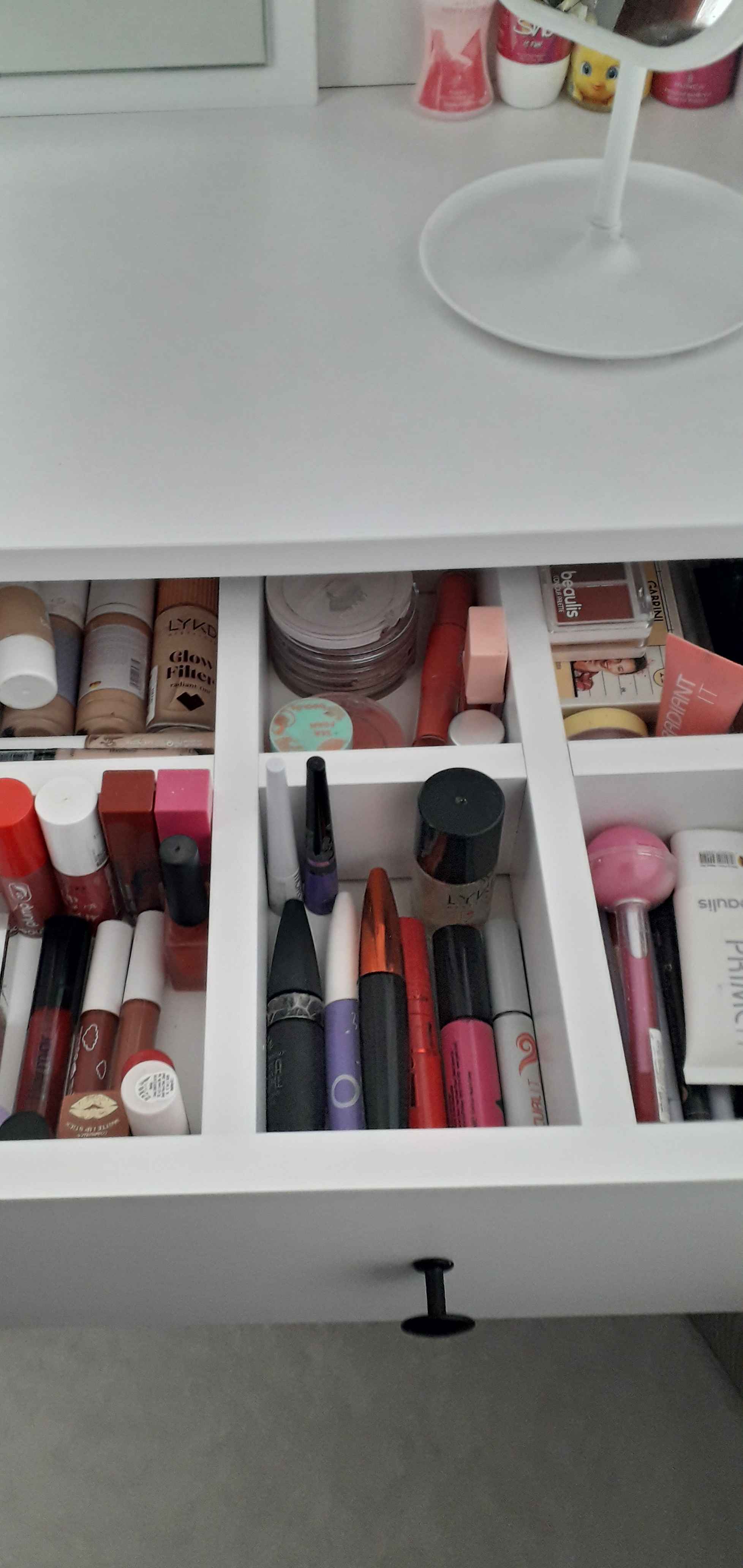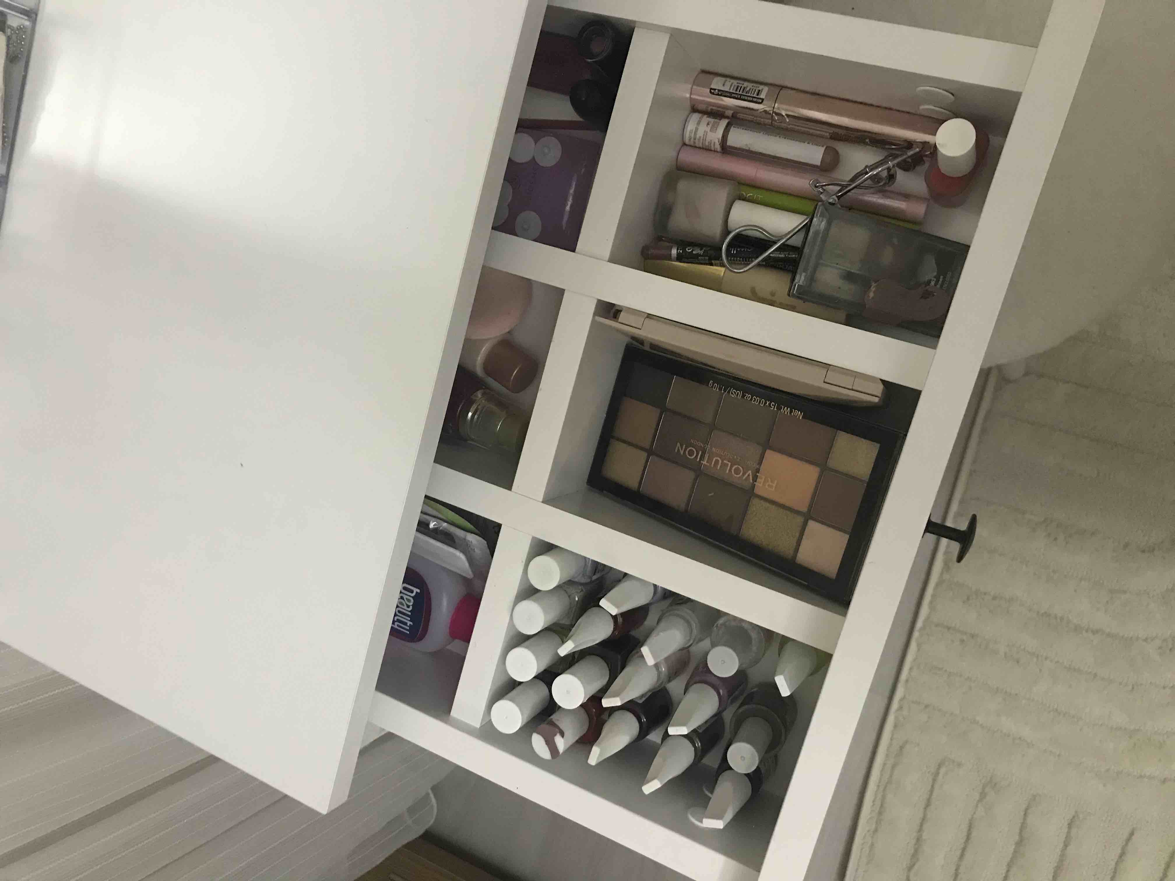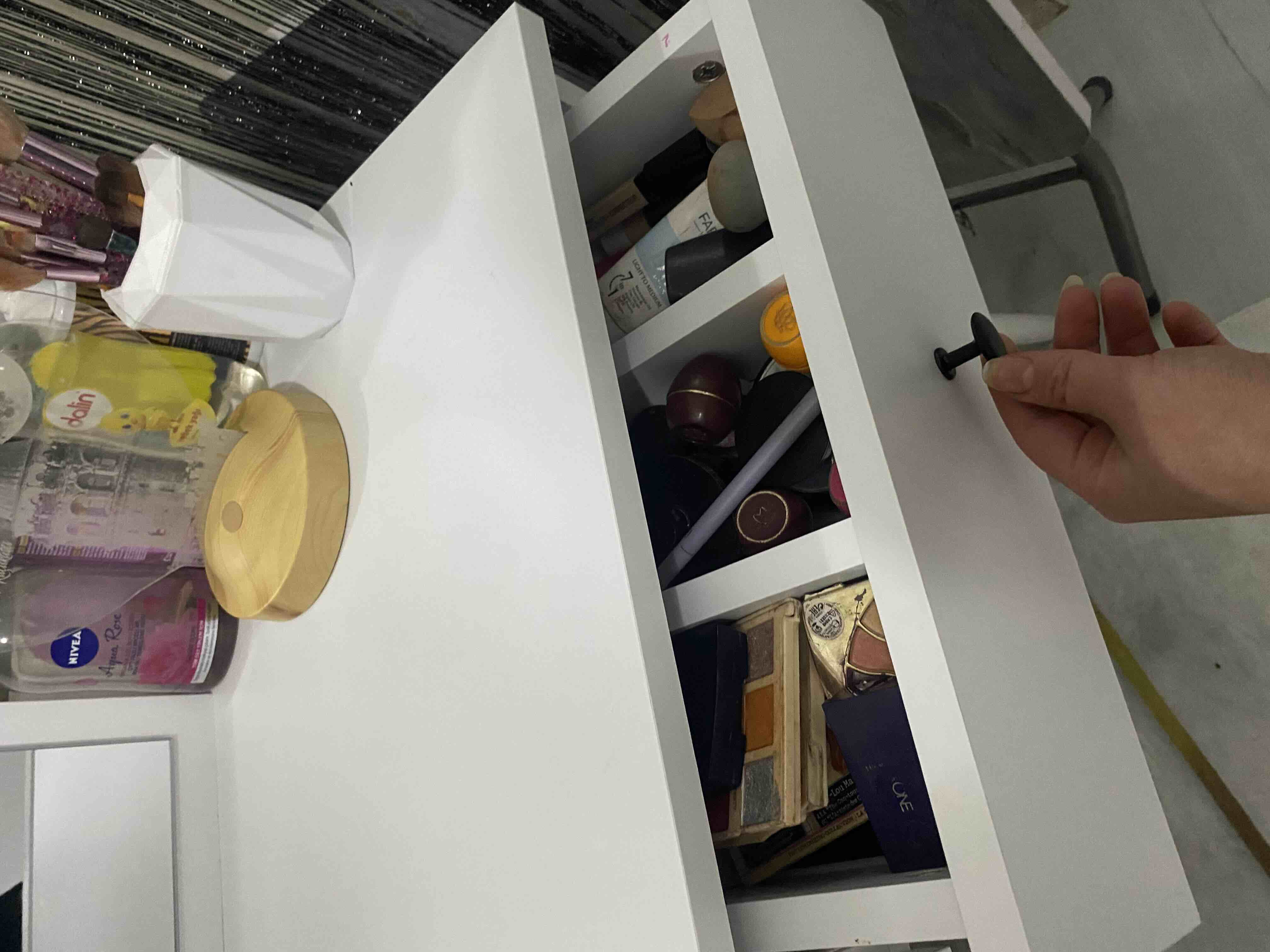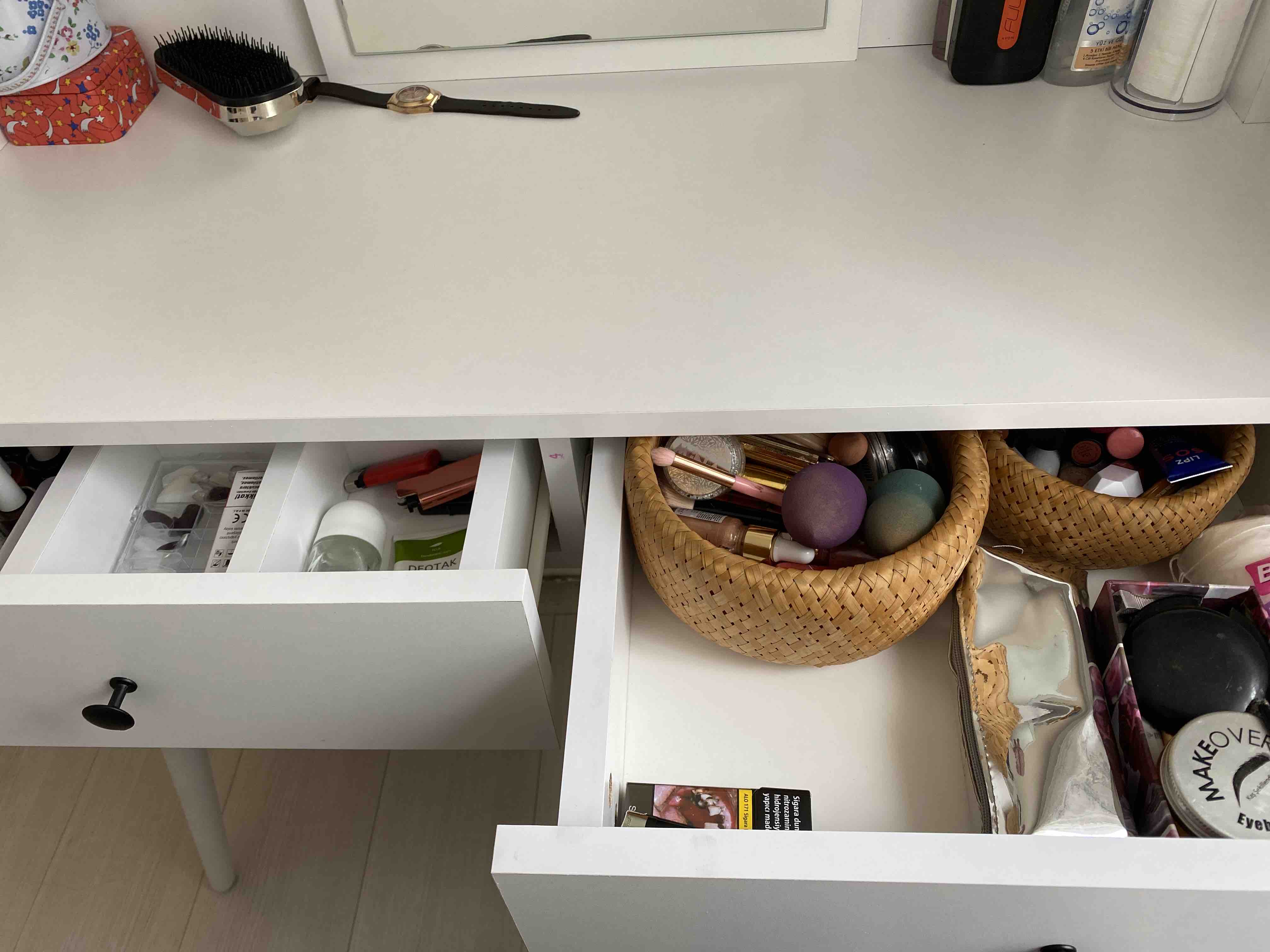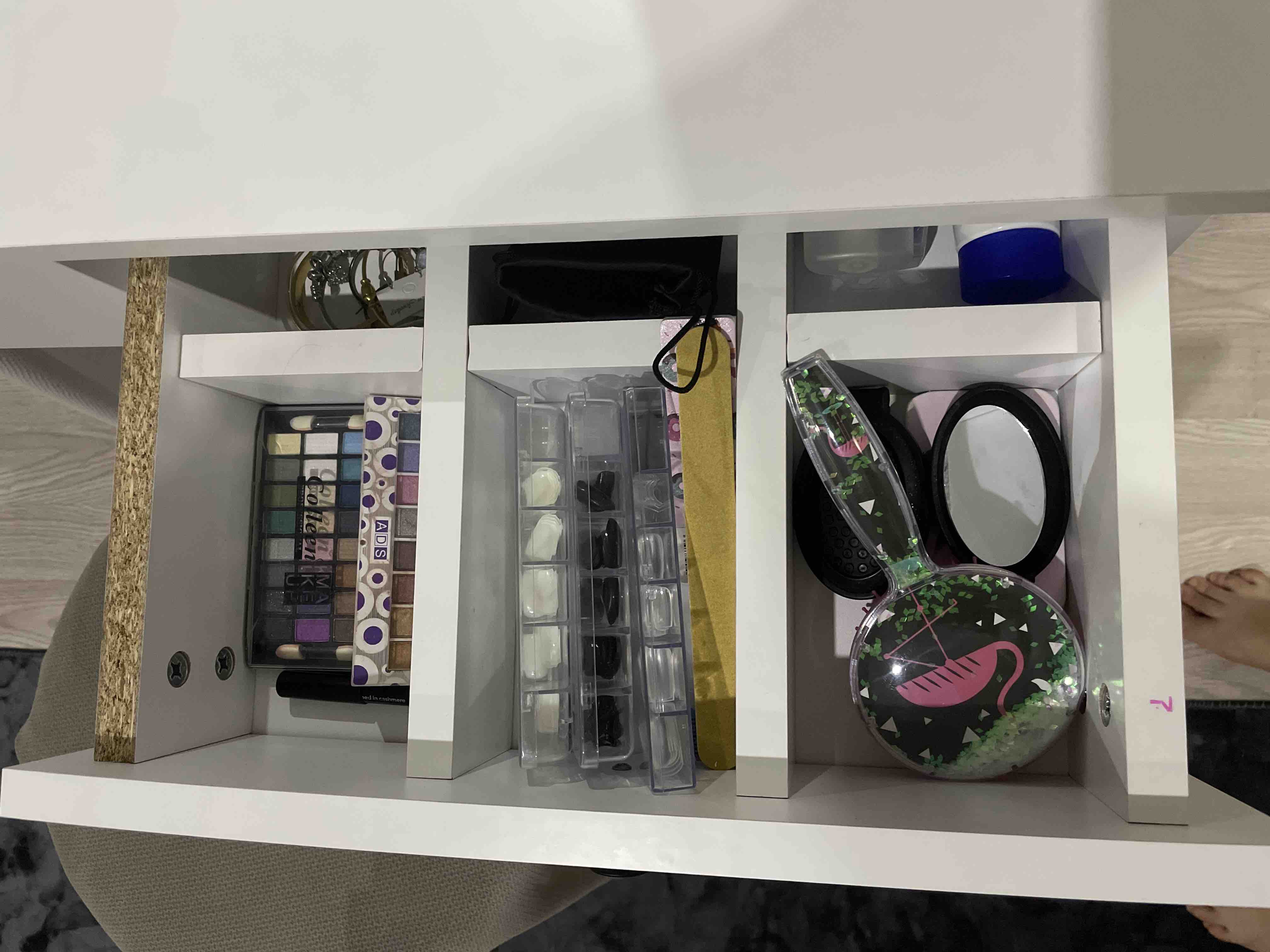 * Çekmece içindeki bölmeler takı, makyaj malzemeleri gibi eşyalarınızı kolayca düzenlemenizi sağlar.