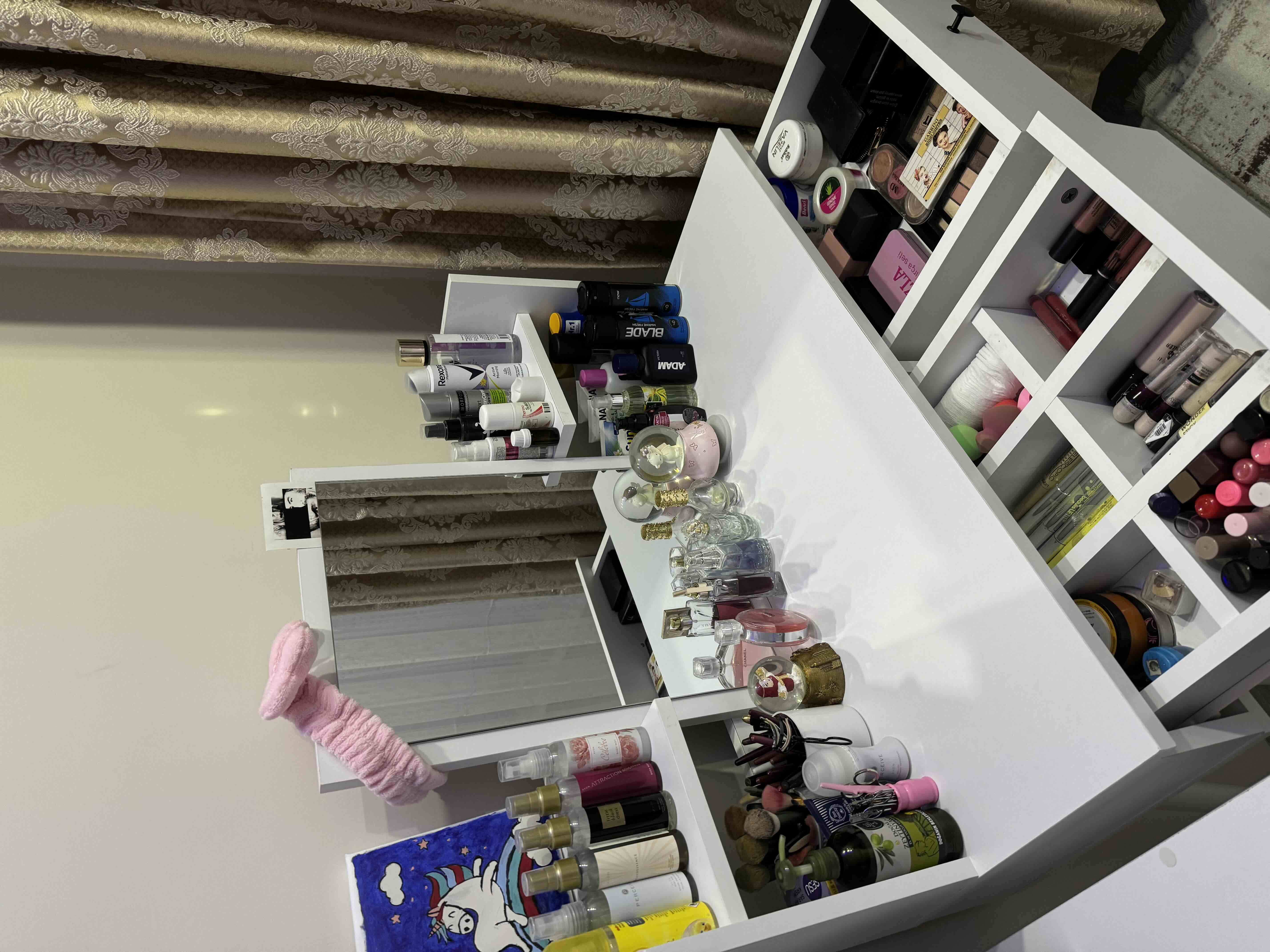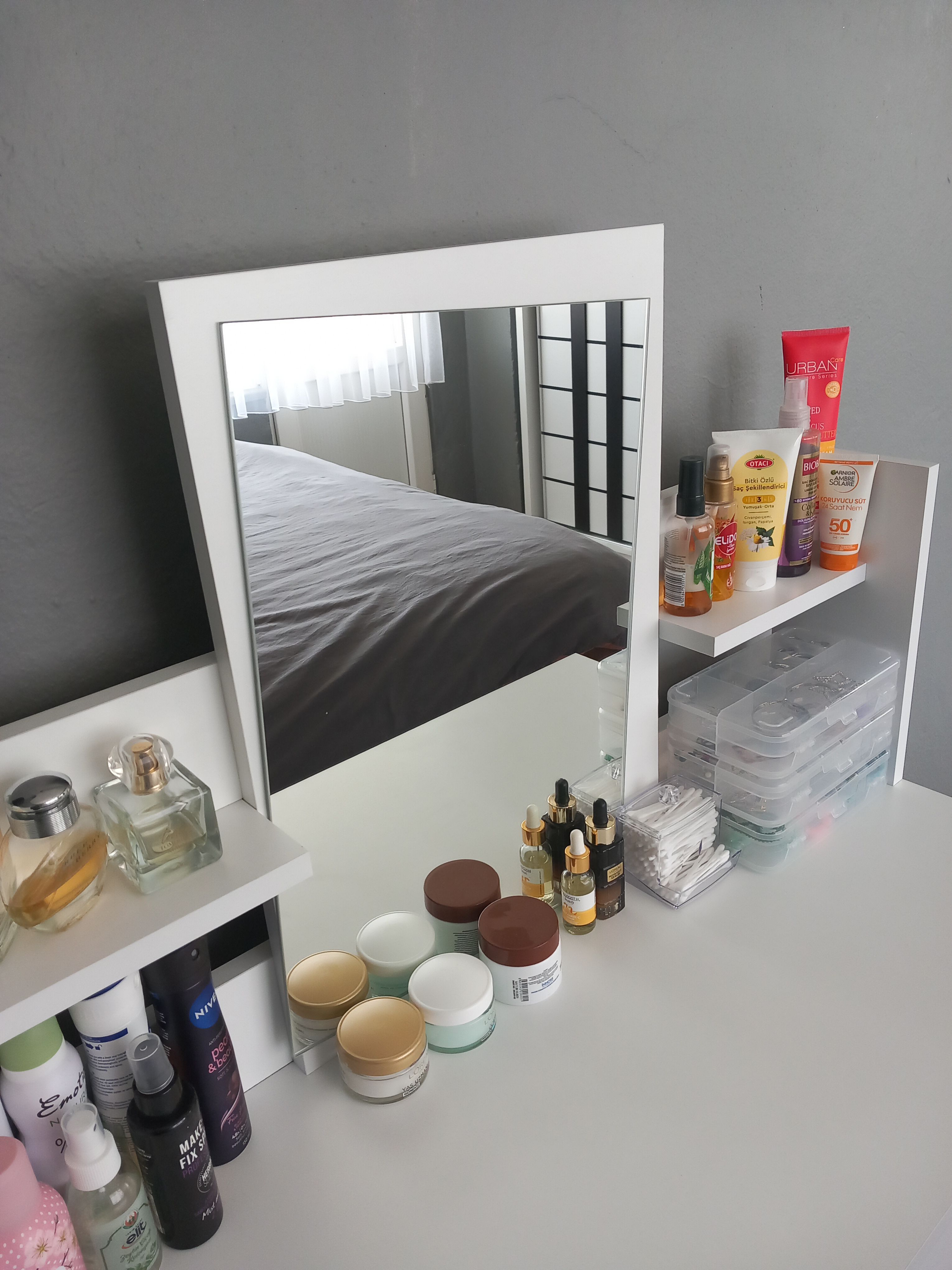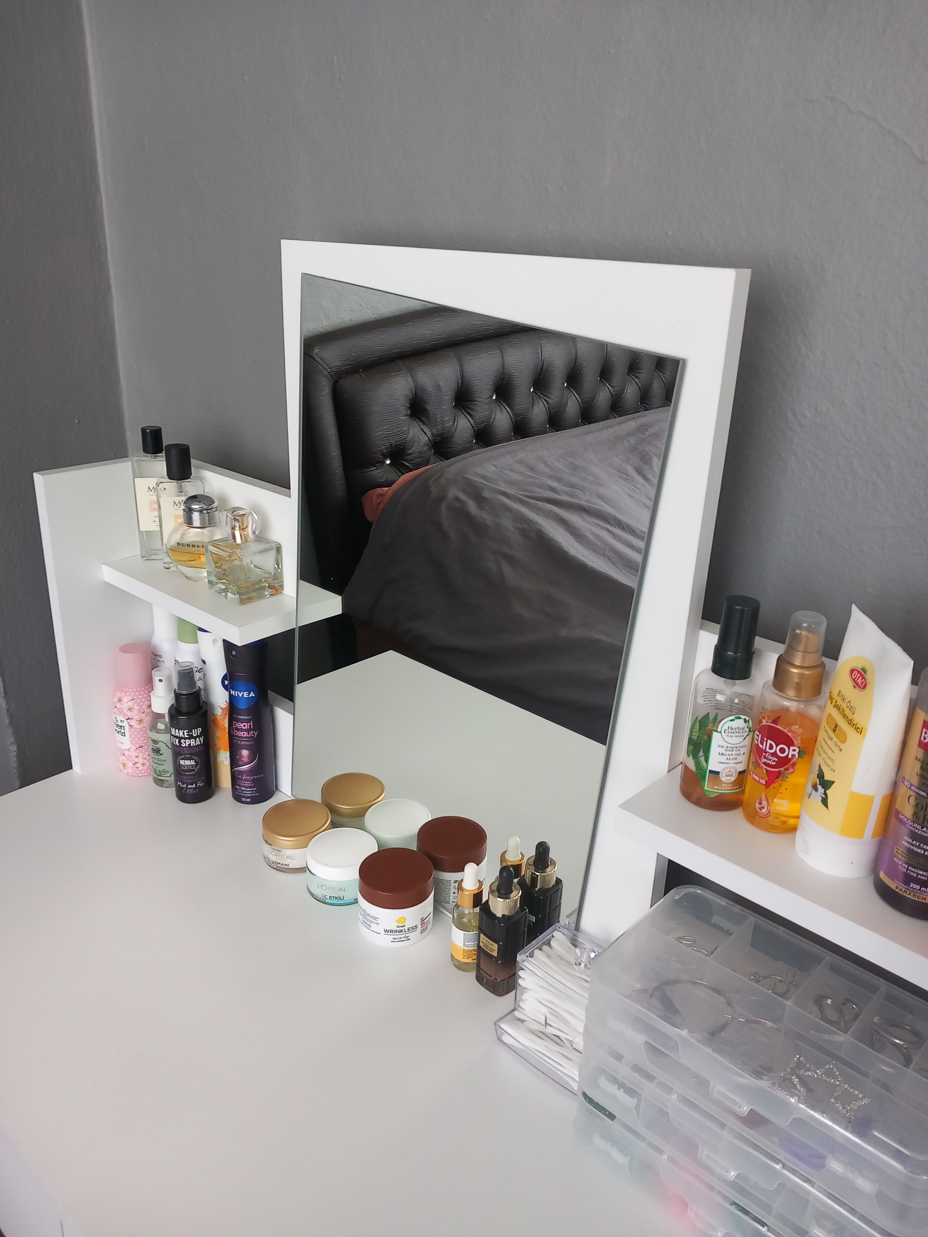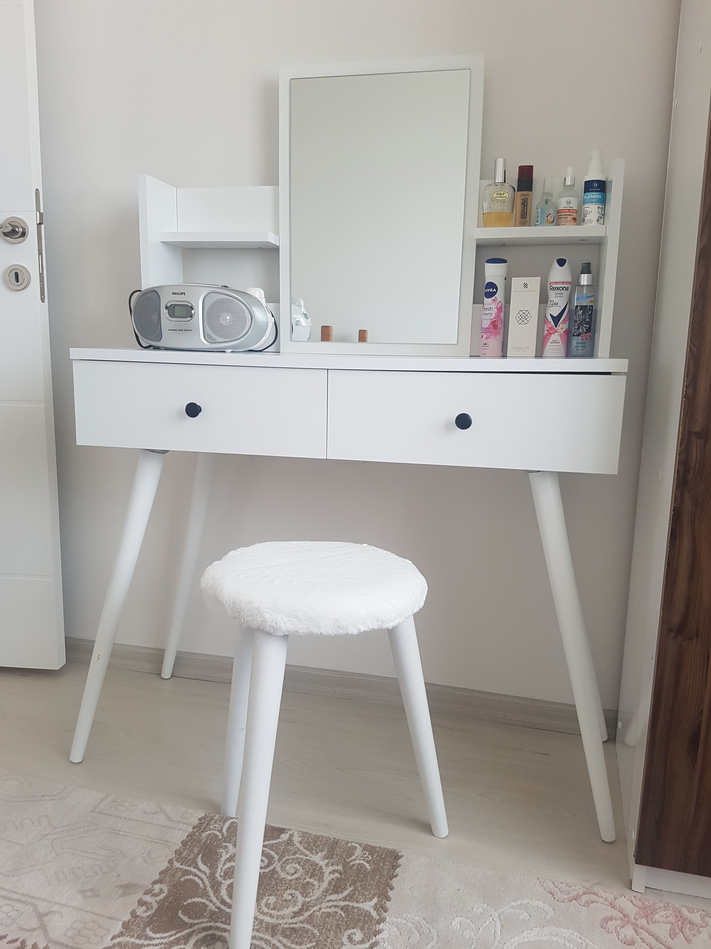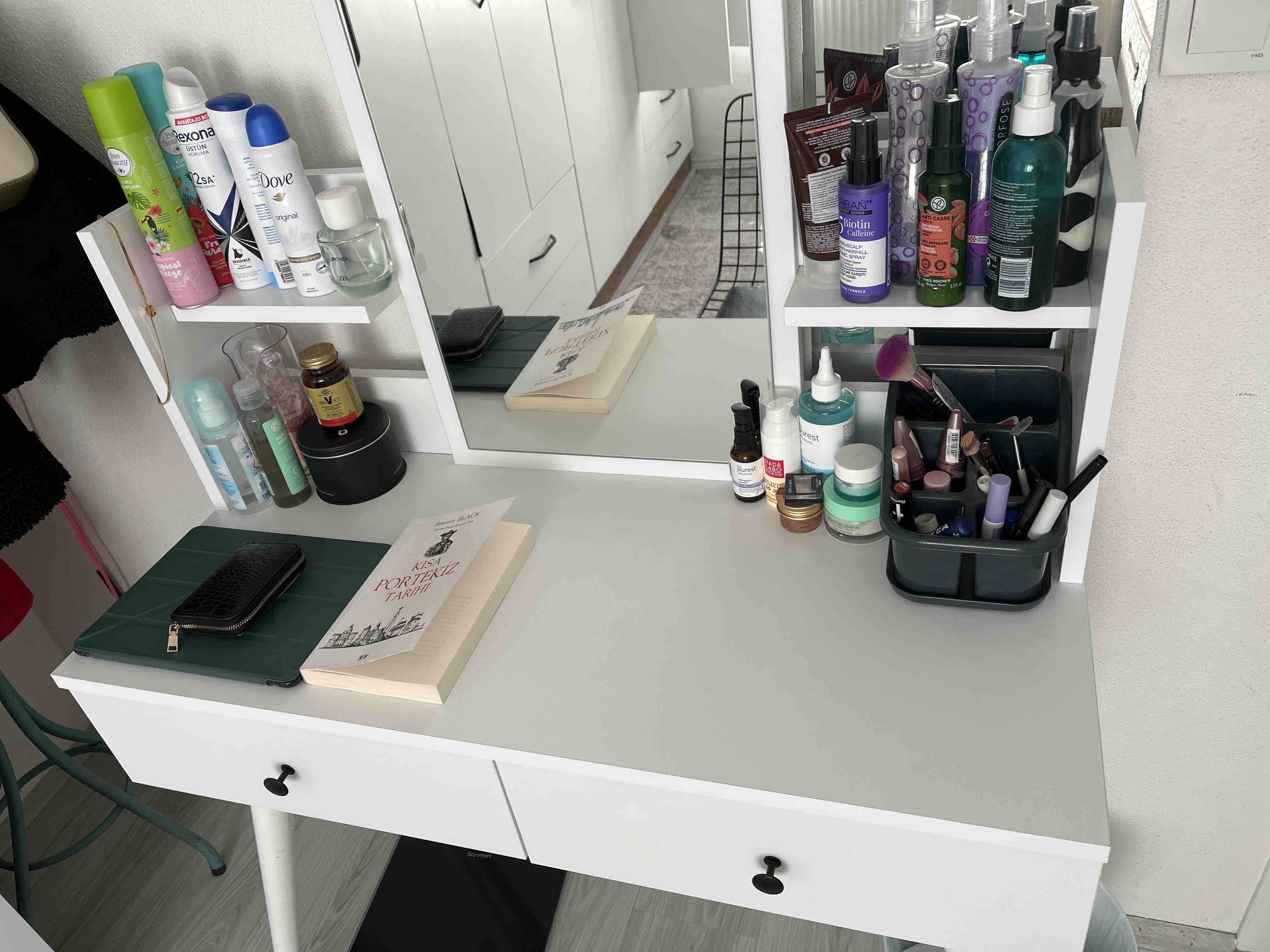 * Sık kullandığınız parfüm, makyaj fırçaları ve bakım ürünlerinizi masa üzerine yerleştirmeyi ve raflara dekoratif eşyalarınızı koymayı tercih edebilirsiniz.
