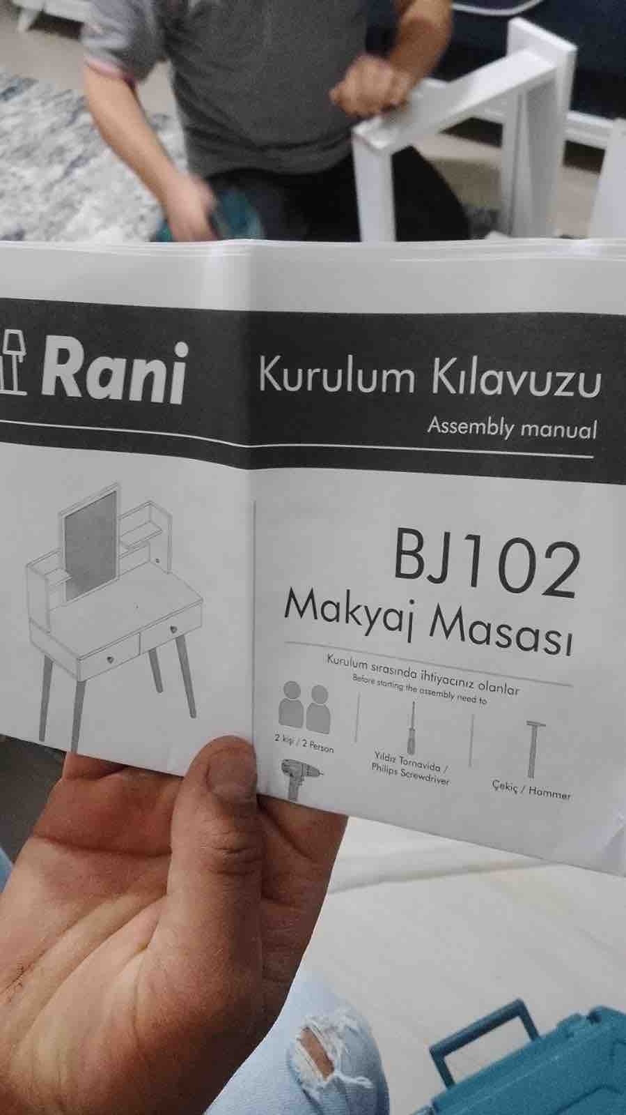 - **** ****Onaylı 😡17 Kas 2025Satıcı: Rani MobilyaÜrünün bazı yerlerinde delik açılmamış , kendimiz açtık. Çekmecelerin rayları üstte takılacak şekilde delik açılmış, çekmeceleri kurduk takılmadı. Masayı da kurmuş olduğumuz için küçücük gövdede, çekmece yuvasında çekmecenin alt kısmına denk gelecek şekilde gövdede delik açarak yerleştirmeye çalıştık. Kızım heveslendi ve hafta sonu oluğu için size ulaşamayacağımızda çok fazla uğraşarak montajını yaptık ama mobilya işlerinden biraz anlamayan kimse yapamadı, mağdur ediyorsunuz. Kesinlikle üretim hatası var. Üst gövde çekmece üzerleri oturmuyor tutkal ile yapıştırdık. Kaç ay/yıl idare eder bilmiyorum ama kurulumu zor.