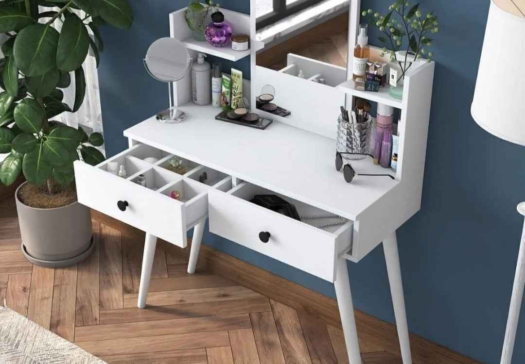 Rani Bj102 Makyaj Masası 2 Çekmeceli Raflı Aynalı Takı Düzenleyici Beyaz Ürün Detayı