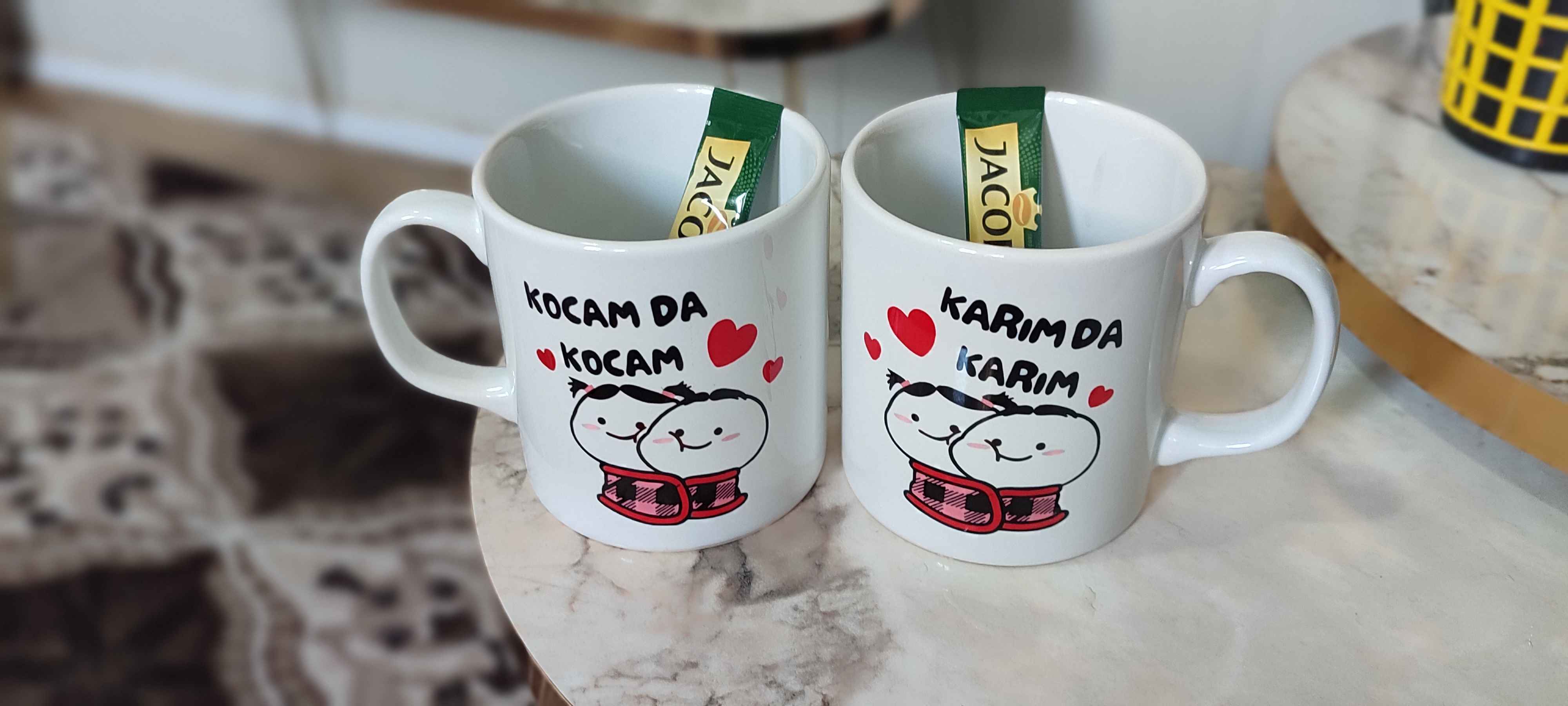 Sevgili Hediyesi Ikili Eşli Çift Yön Baskılı Kupa Bardak Kocam Kocam & Karım Karım - İki kişilik özel günlerinizde sevdiklerinize hediye edebileceğiniz ikili eşli çift yön baskılı kupa bardak, hem şıklığı hem de kullanışlılığı bir arada sunar.