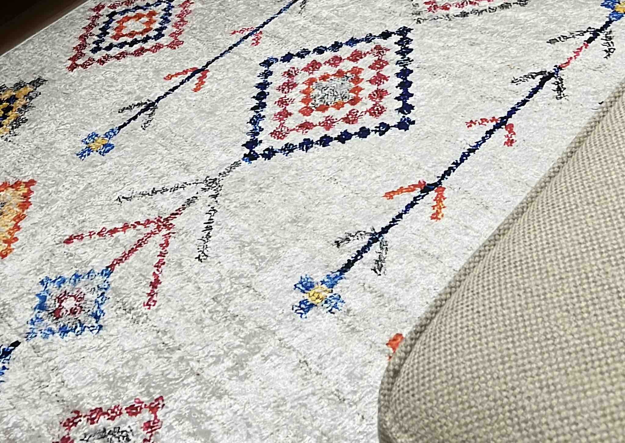 Şönil Kilim Desenli Modern Halı (MAKİNADA YIKANABİLİR SÜNGERLİ DOT/KEÇE TABAN) - Cp658
