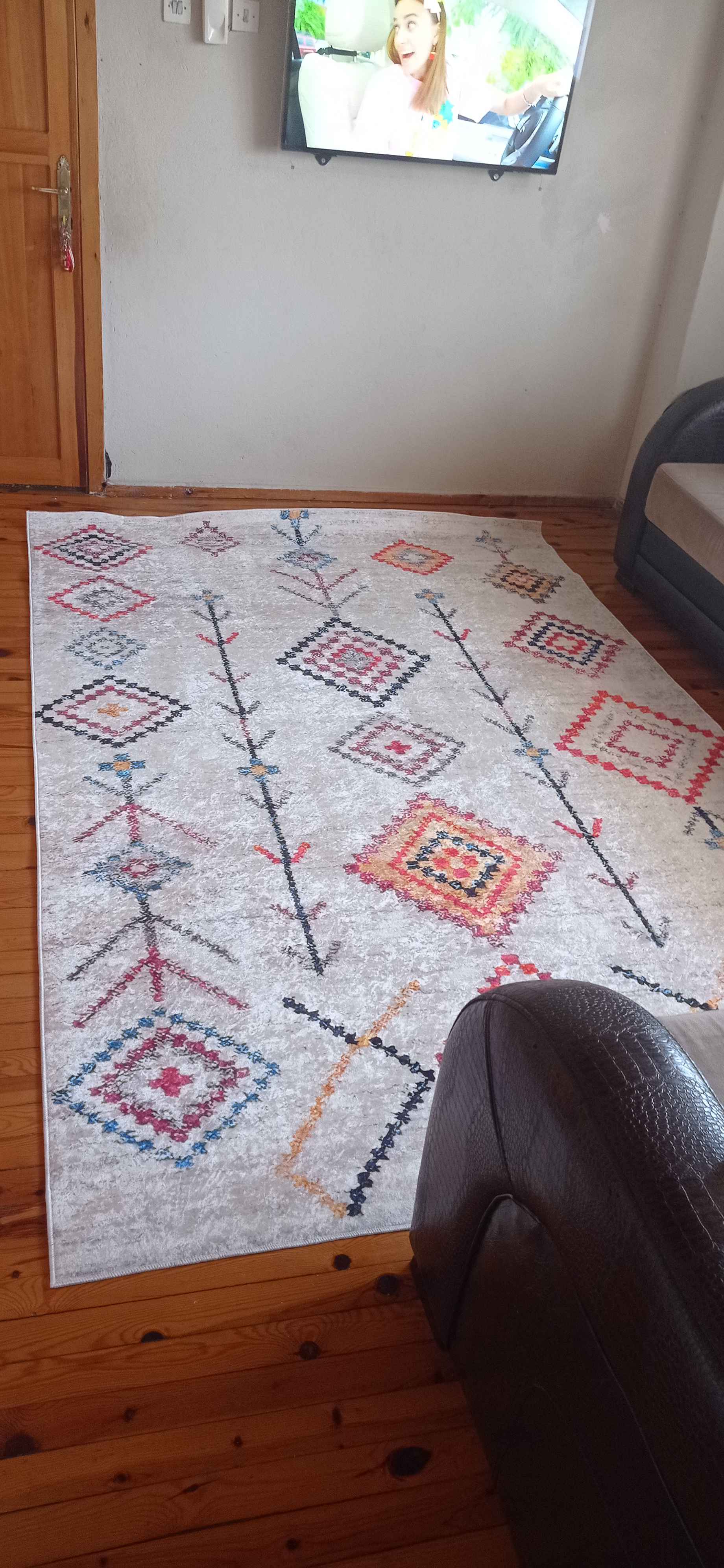 - **** ****Onaylı 😍14 Oca 2024Satıcı: TEKSMODAdaha önce aynı ürünün yollugunu almıştım. memnun kaldım, şimdi de hali olarak aldım. yumuşacık, renkli, ve kaymiyor. fiyatı çok uygun