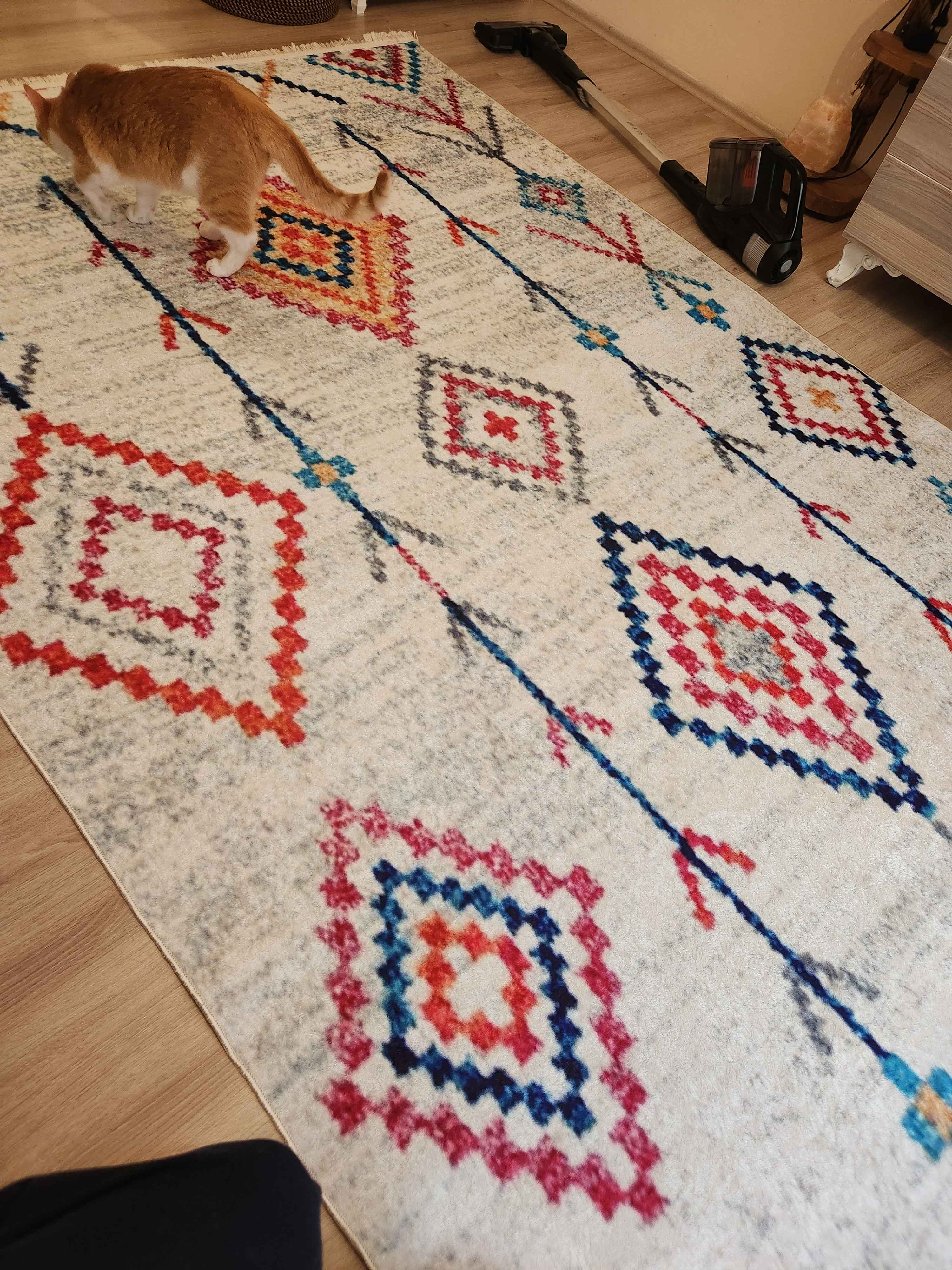 - C** Z**Onaylı 😍29 Eyl 2023Satıcı: ESTA HALIErtesi gün kargoya verildi ve elime hızlıca ulaştı. Ürün ise tam balkonluk yada mutfaktada kullanılabilir. İnce ama bence fiyatına göre mükemmel bir halı balkonuma hava kattı resmen. Desenleri çok canlı ve görenler ise hayran kalıyor. Teşekkürler ESTA HALI❤️