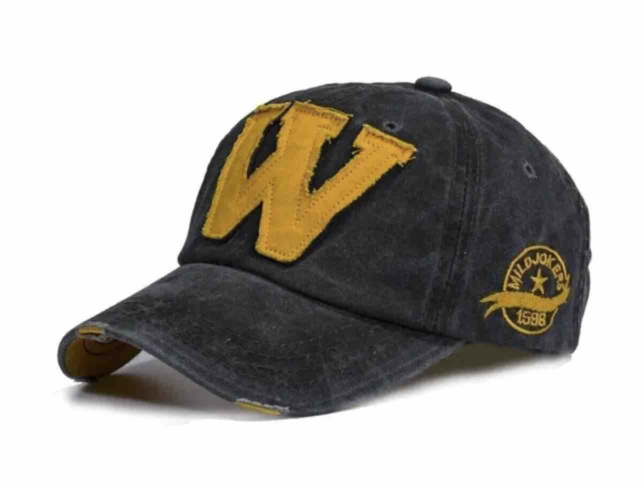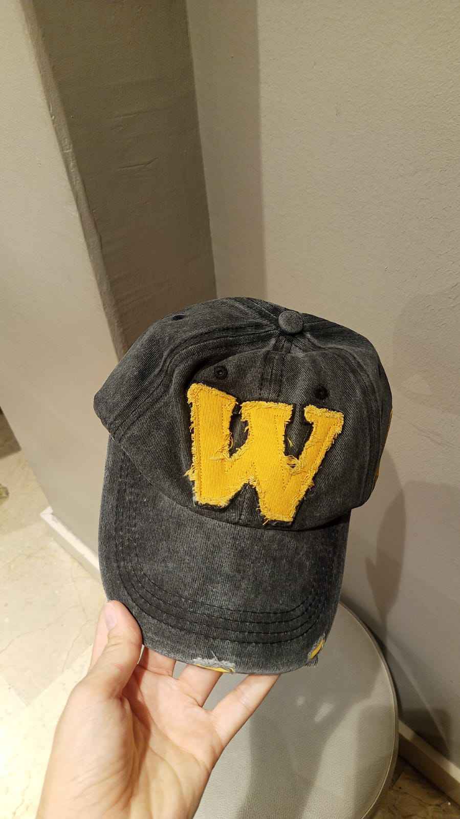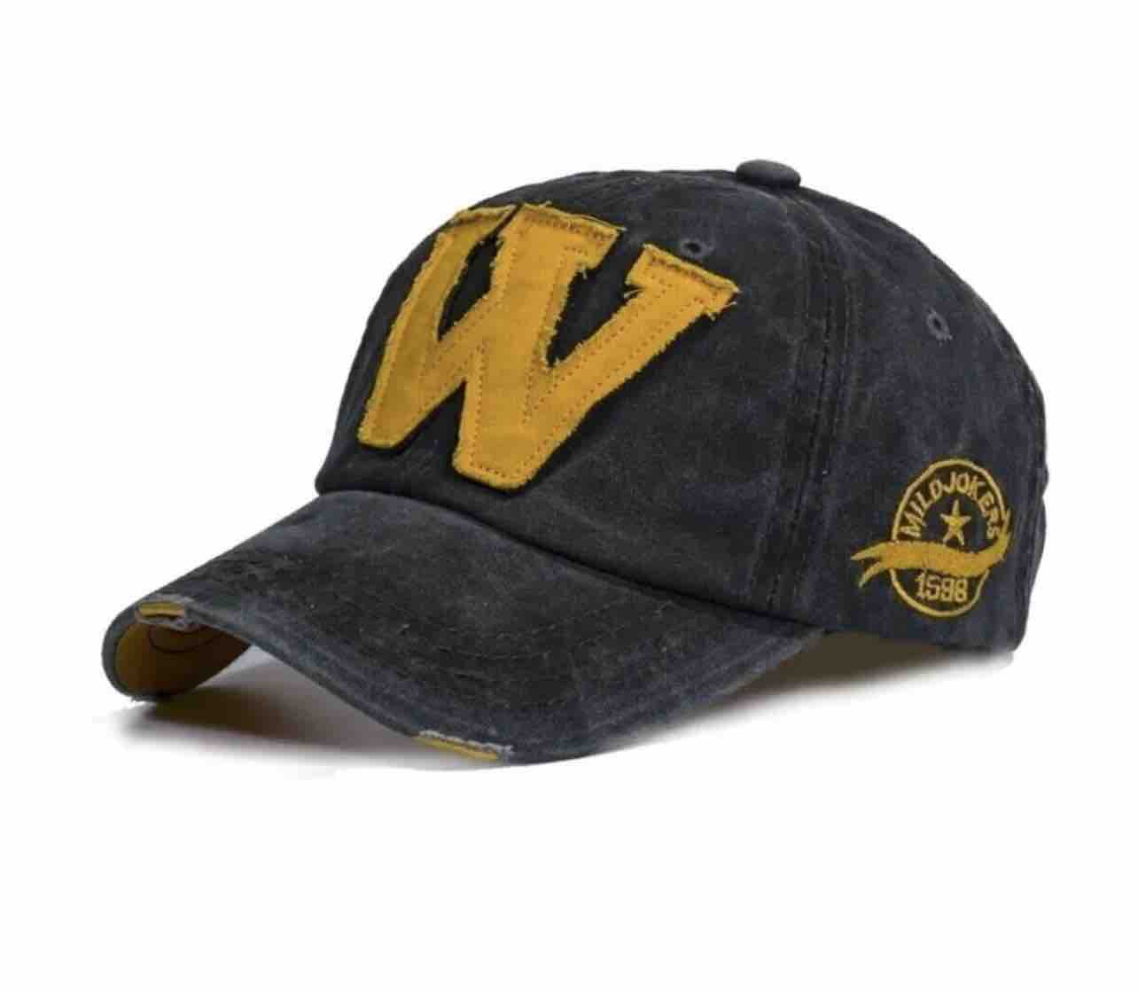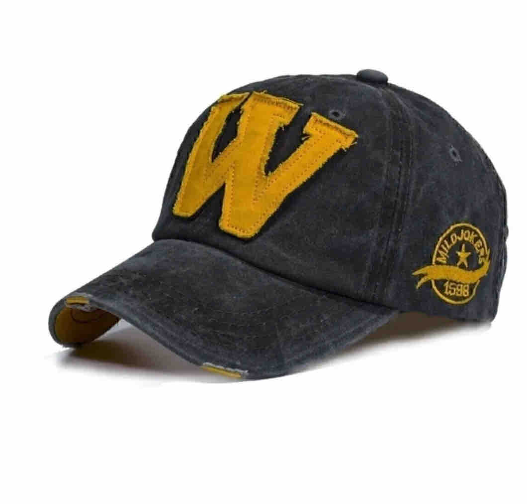 W Model Sarı Logo Eskitme Erkek Şapka Antrasit | Pamuklu, Ayarlanabilir, Vintage Beyzbol Şapkası Ürün Detayı