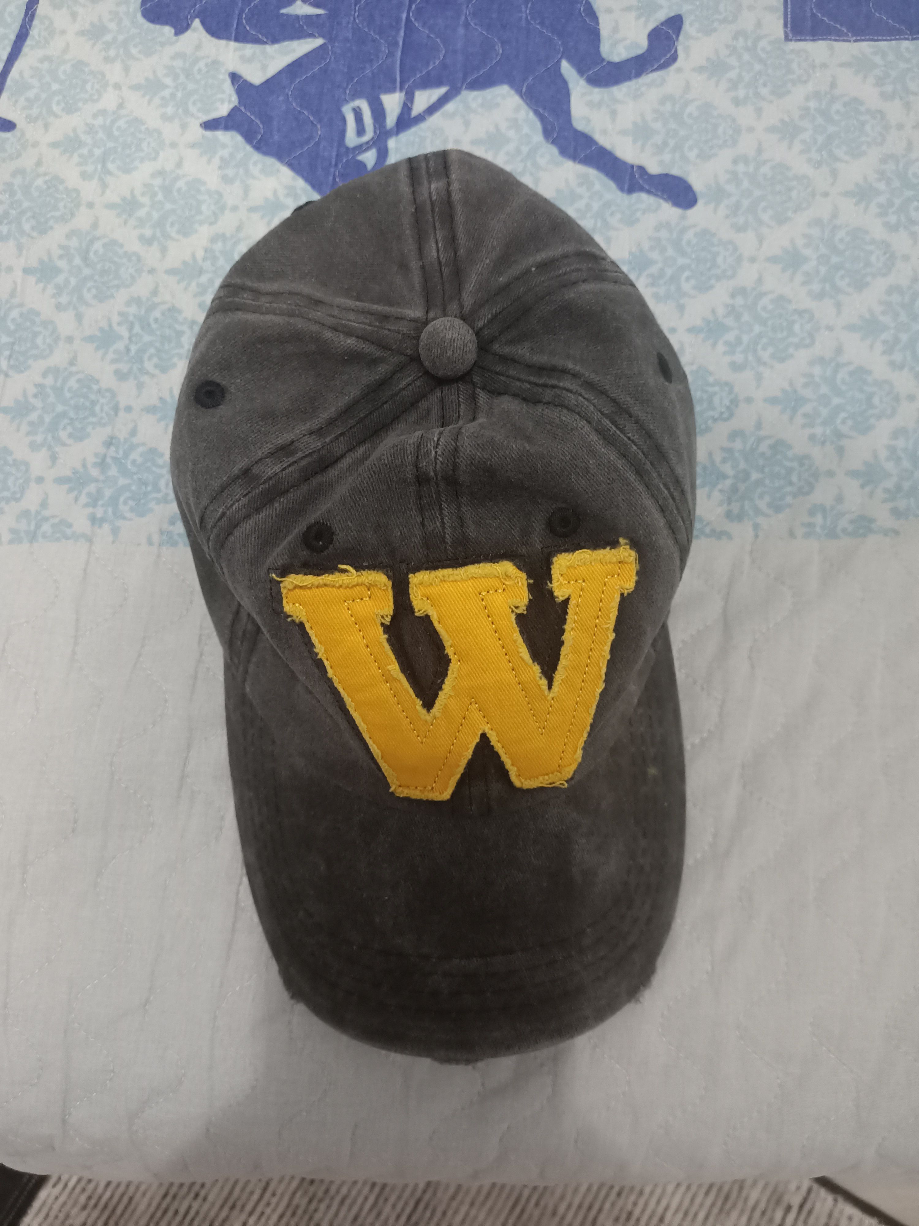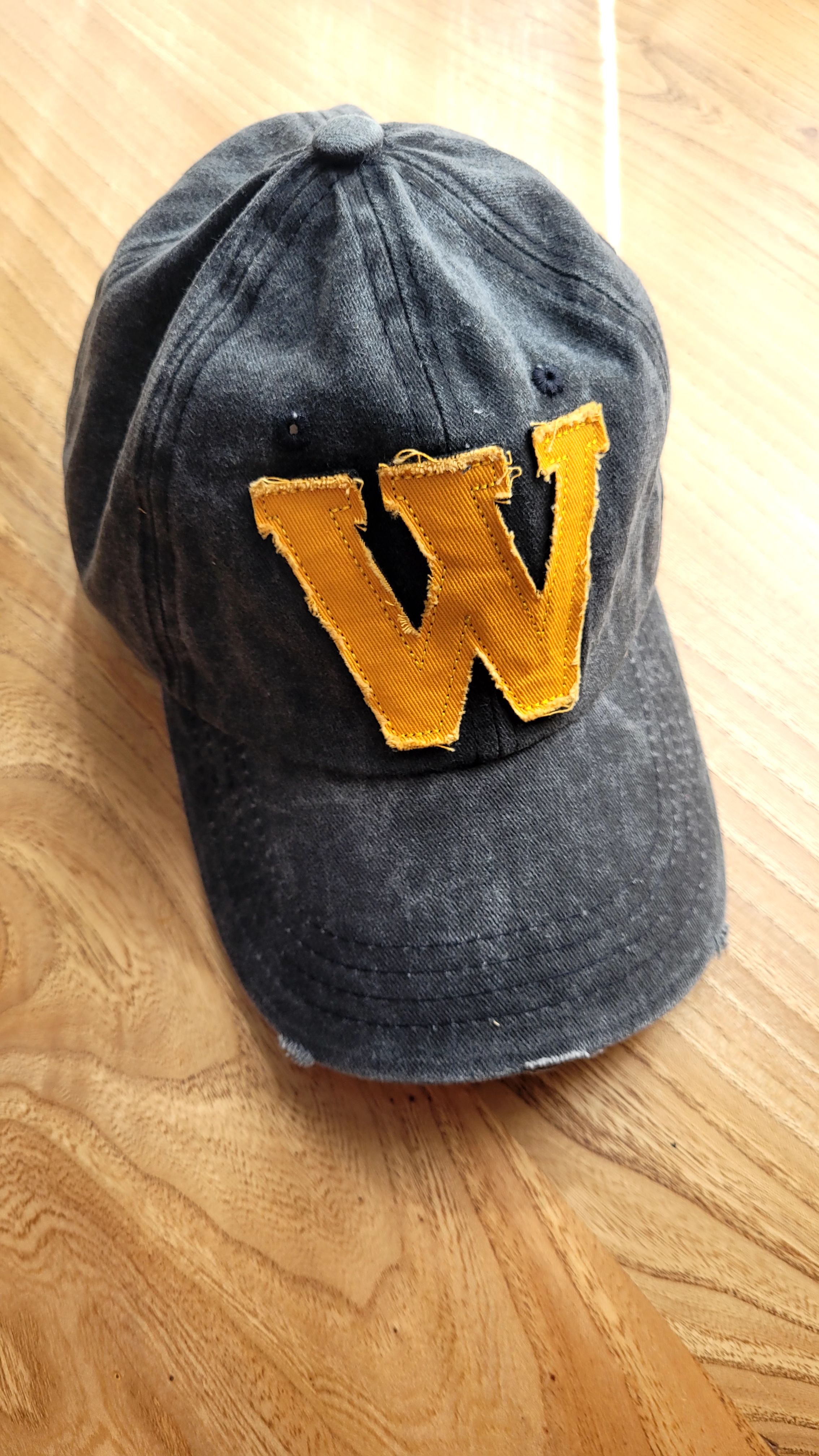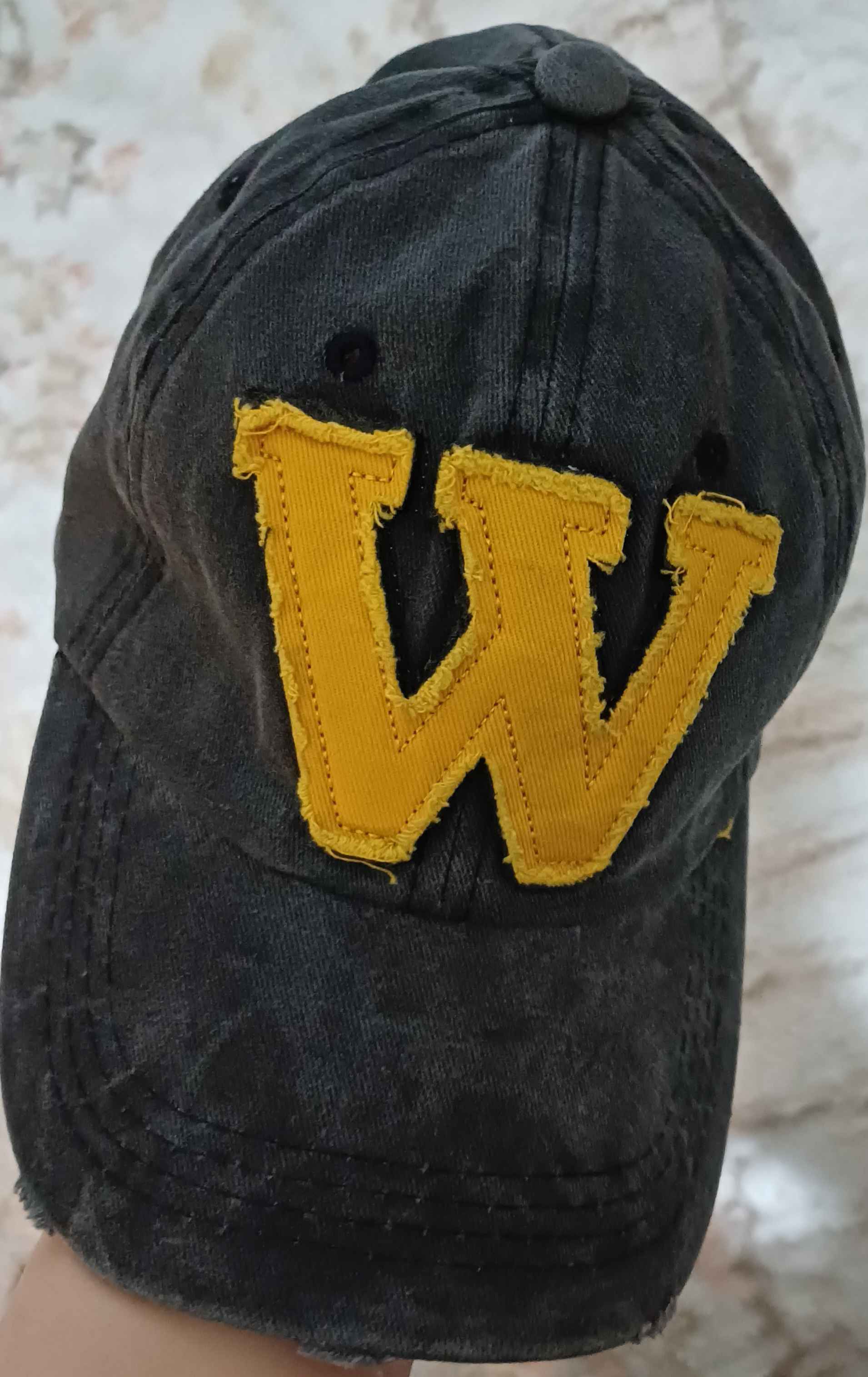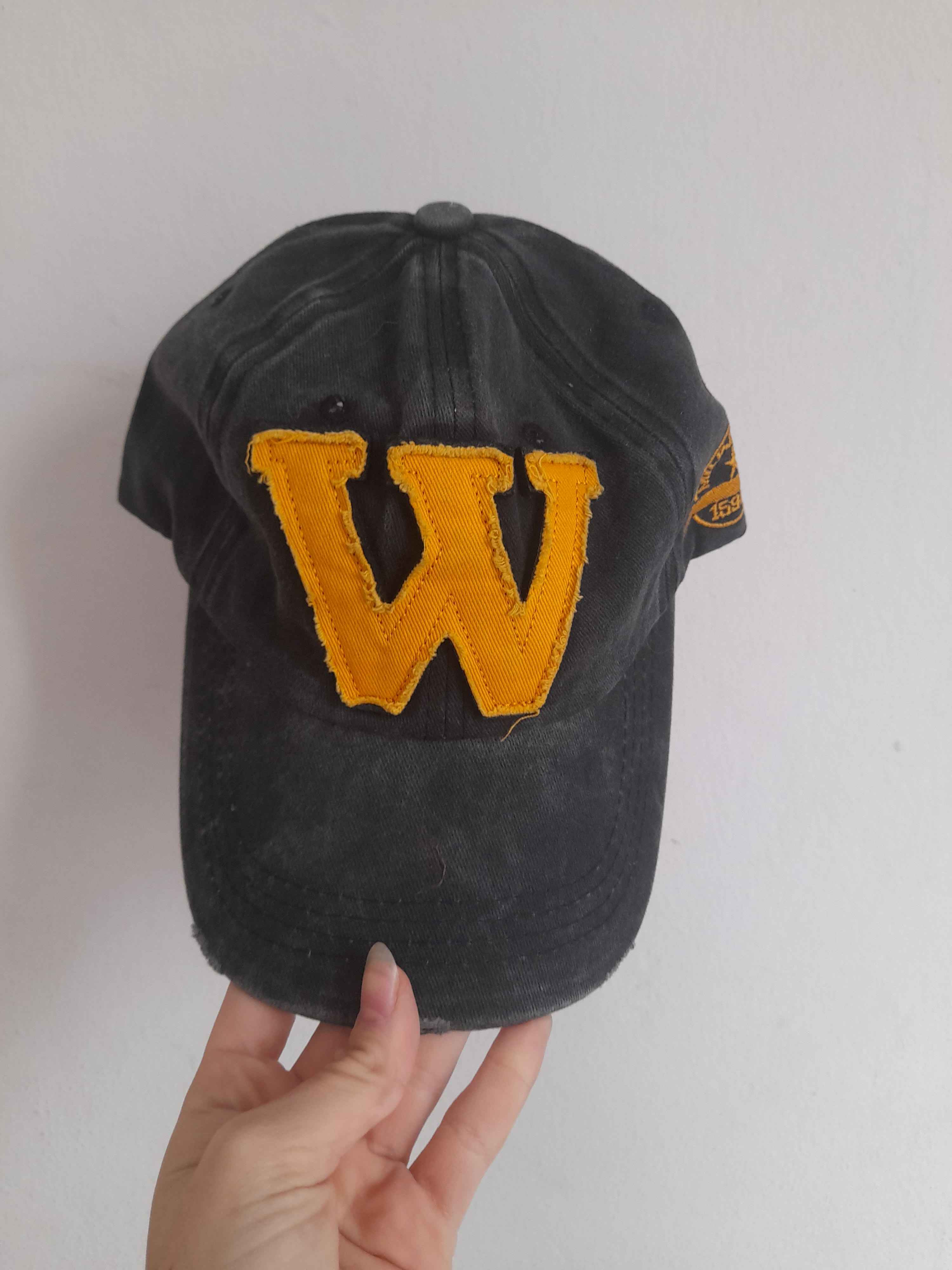 W Model Sarı Logo Eskitme Erkek Şapka Antrasit | Pamuklu, Ayarlanabilir, Vintage Beyzbol Şapkası Ürün Detayı