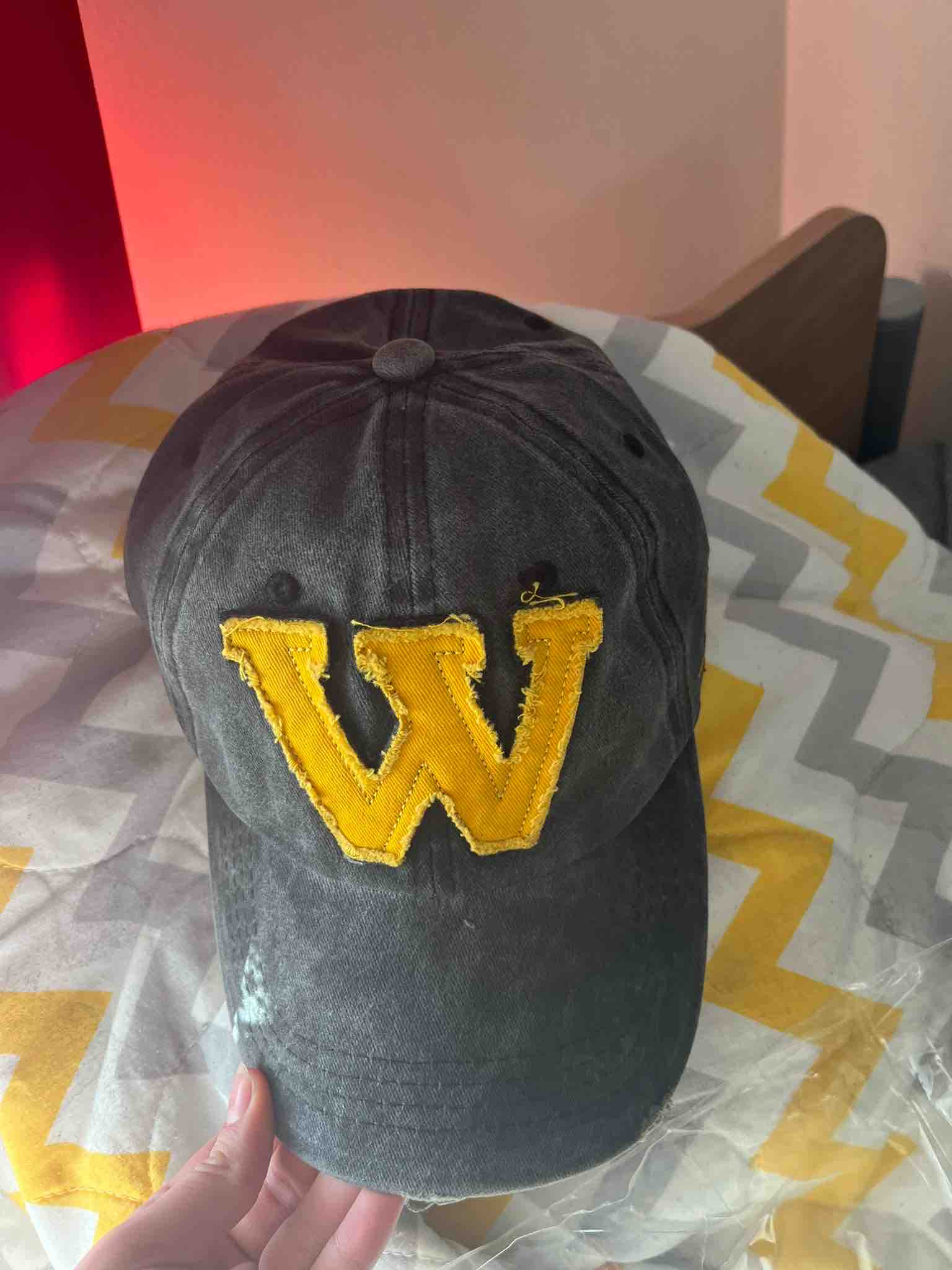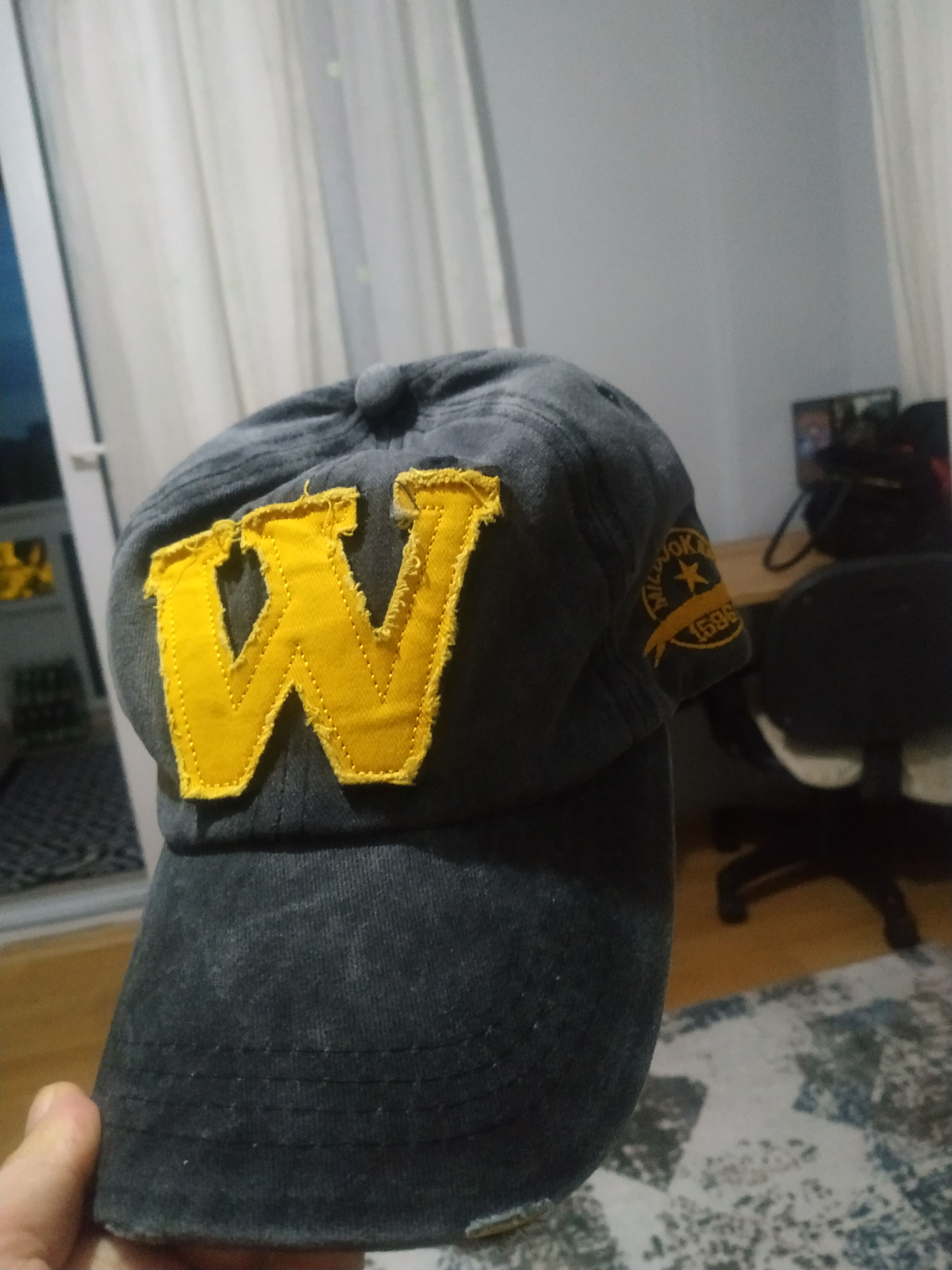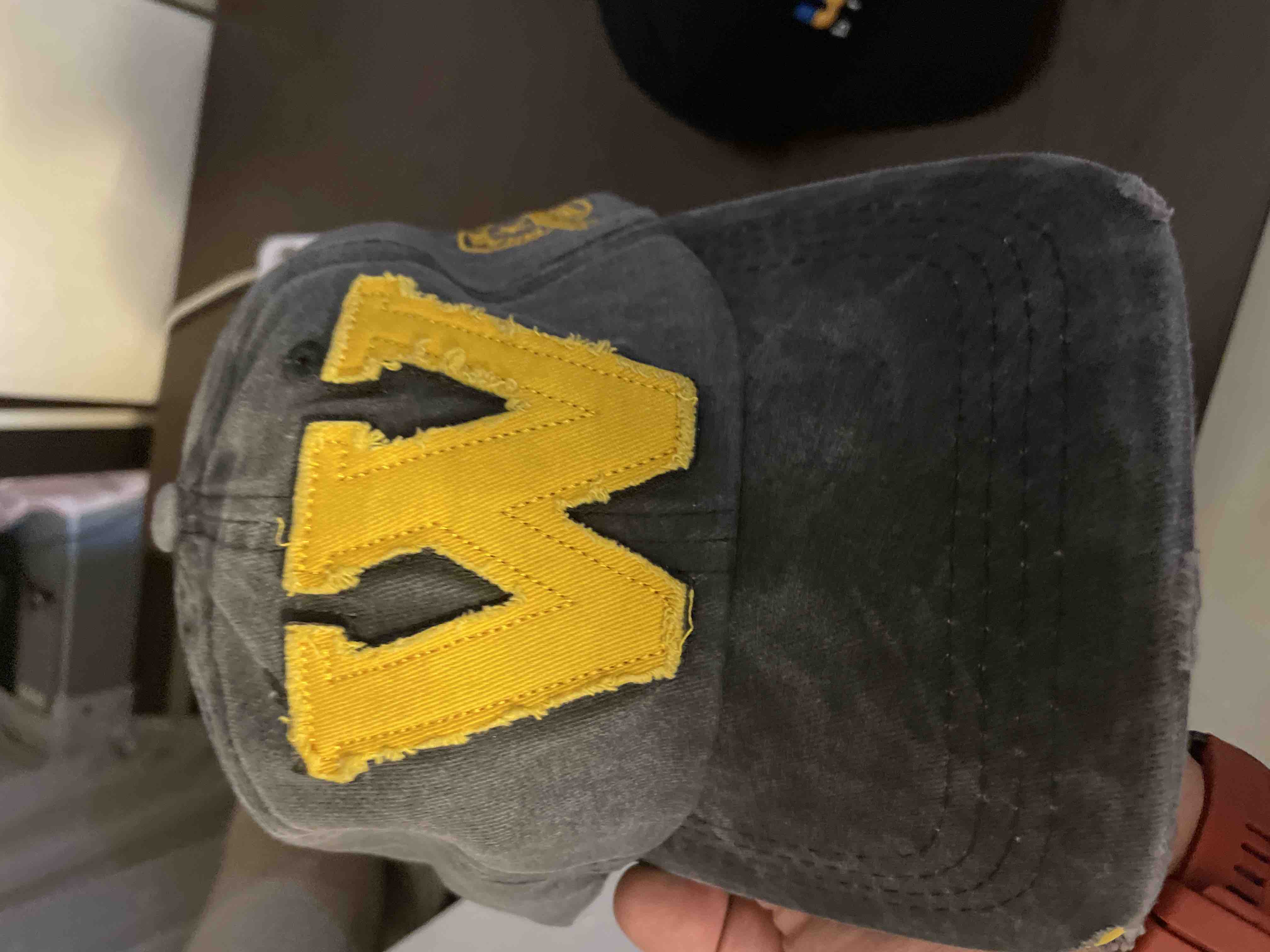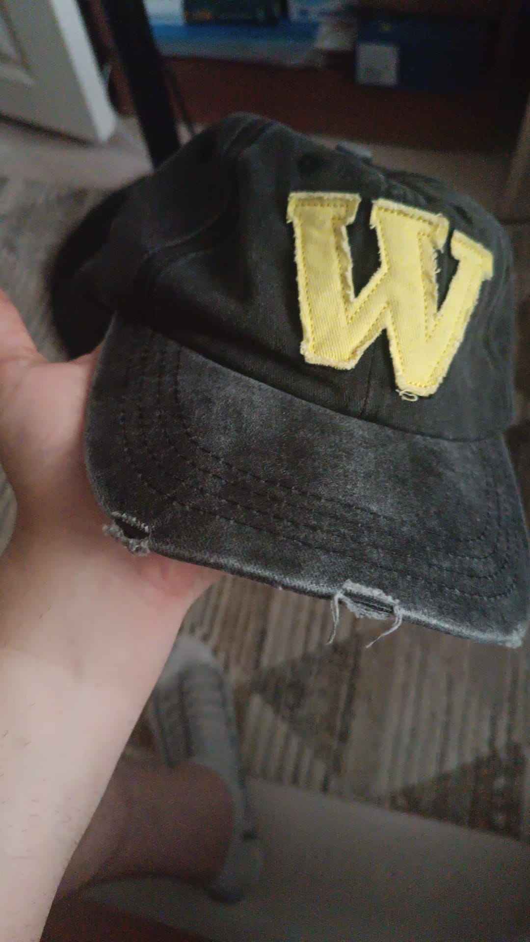 W Model Sarı Logo Eskitme Erkek Şapka Antrasit | Pamuklu, Ayarlanabilir, Vintage Beyzbol Şapkası Ürün Detayı